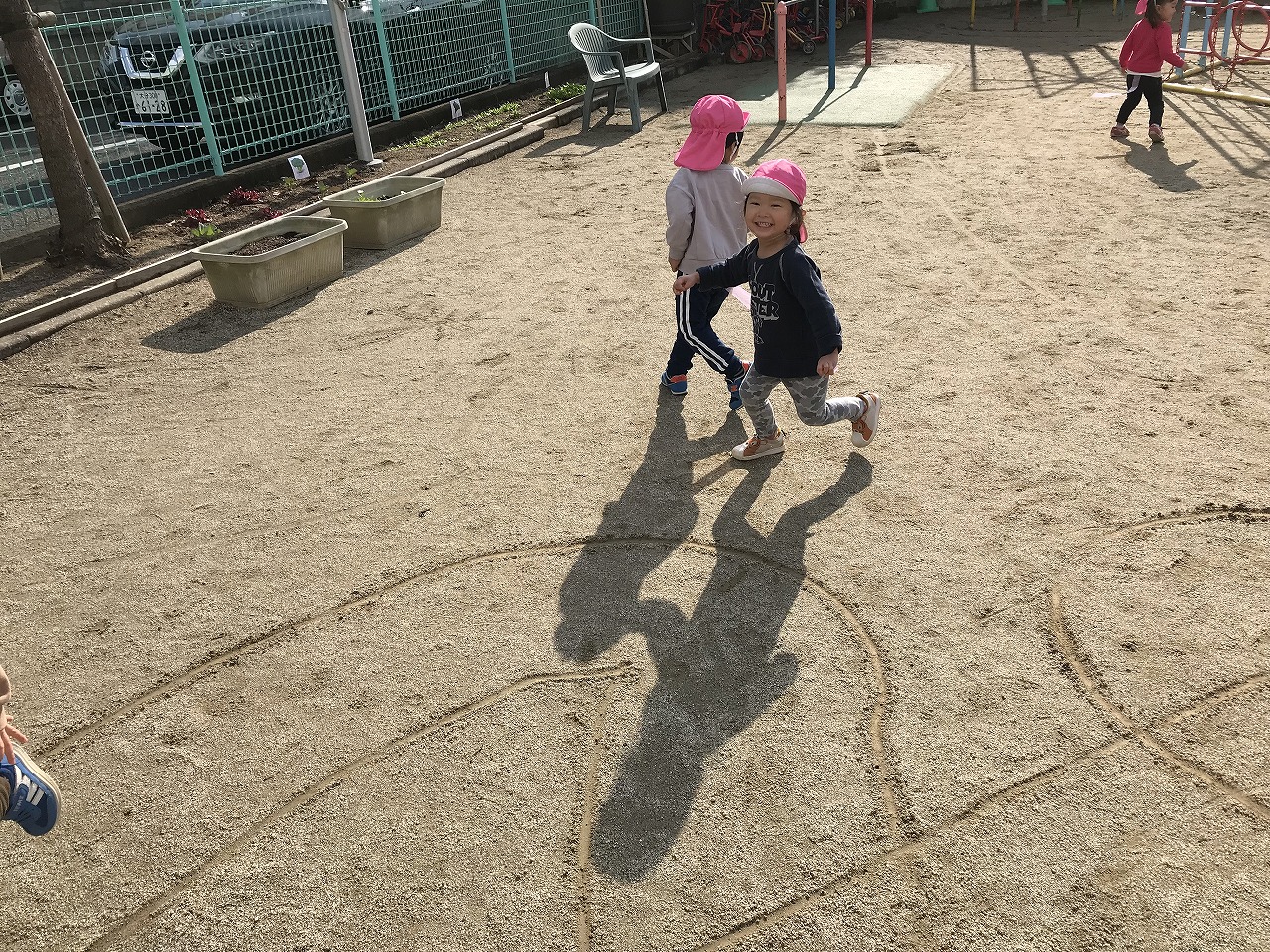 制作をした後は園庭に出て、しっぽ取りゲームをしました。ルール説明をし子どもたちと保育士等もしっぽをつけて、よーいどん!!元気よく走る子どもや、遊具に隠れてしっぽを取られないようにしている子ども、しっぽを取られて泣き出してしまう子ども…いろんな姿が見られました。遊び終わった後、「しっぽ取りたのしかった」という感想の他に「くやしかった」と言う言葉も聞かれ、ゲームを通していろんな経験をしているのだと改めて感じました。たんぽぽ組も後半になりルールのある遊びも楽しむことが出来るようになってきているので、また楽しいゲームを計画していきたいと思います。