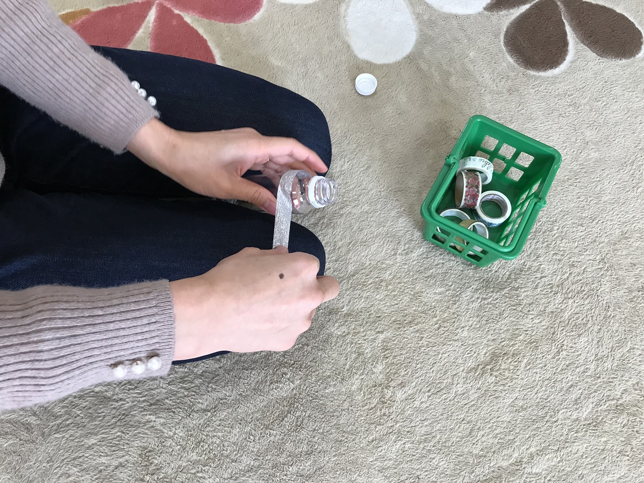 読み聞かせの後は手作りおもちゃ作り。小さいお子さんに人気の「マラカス」です