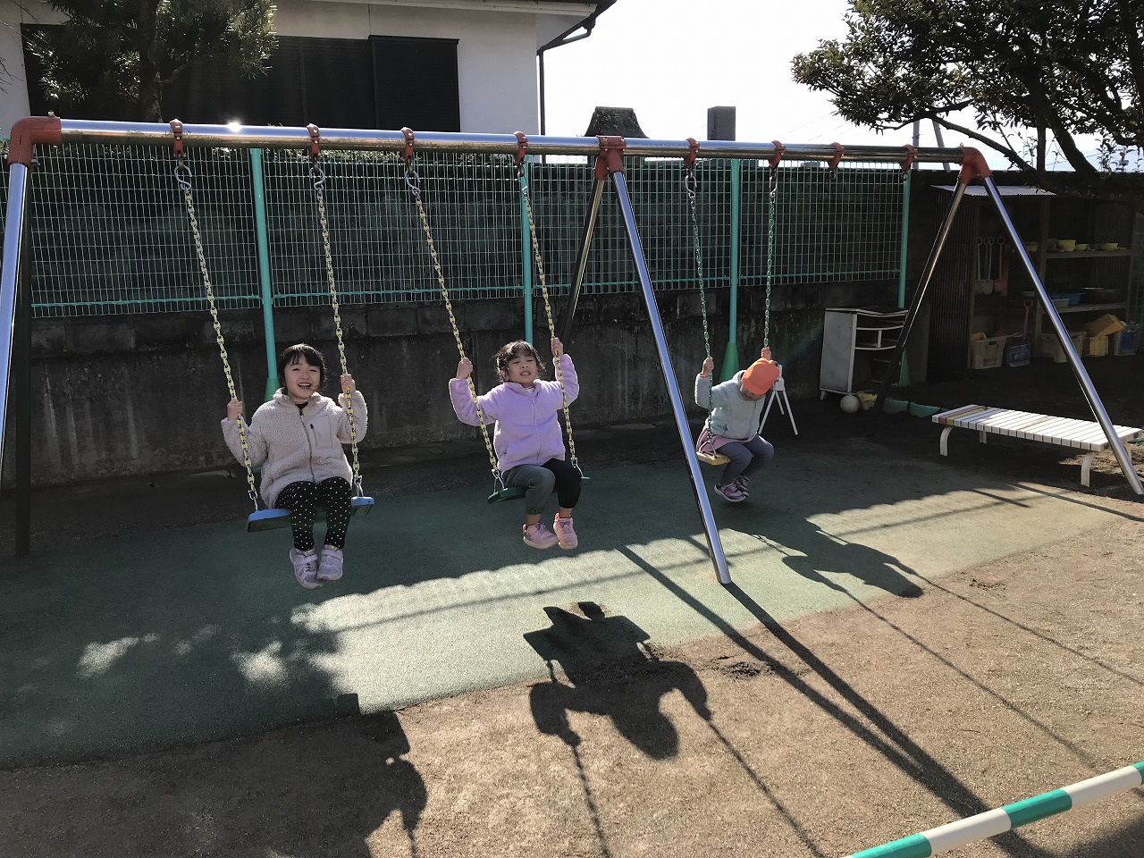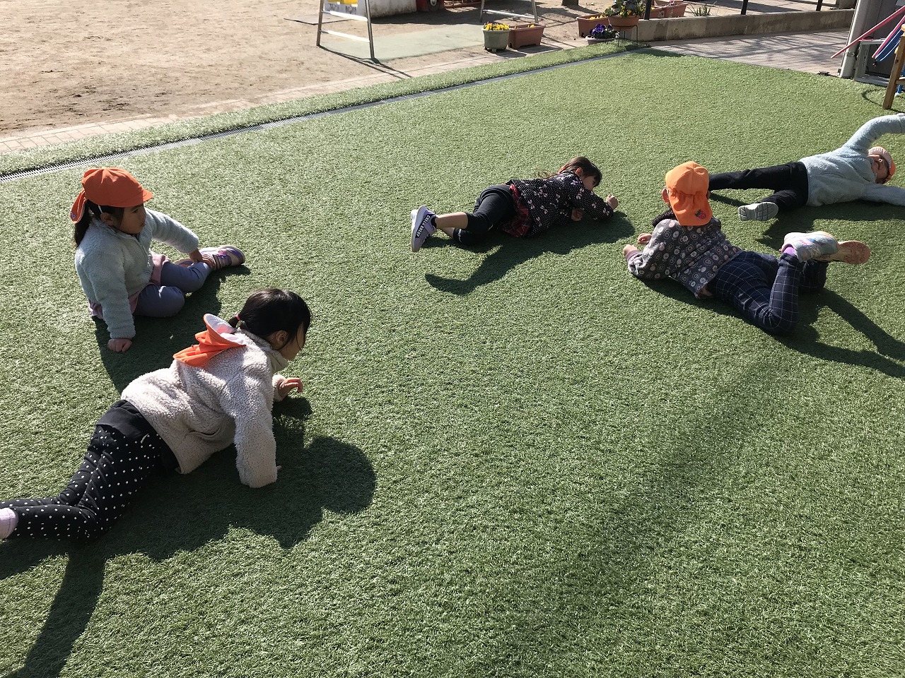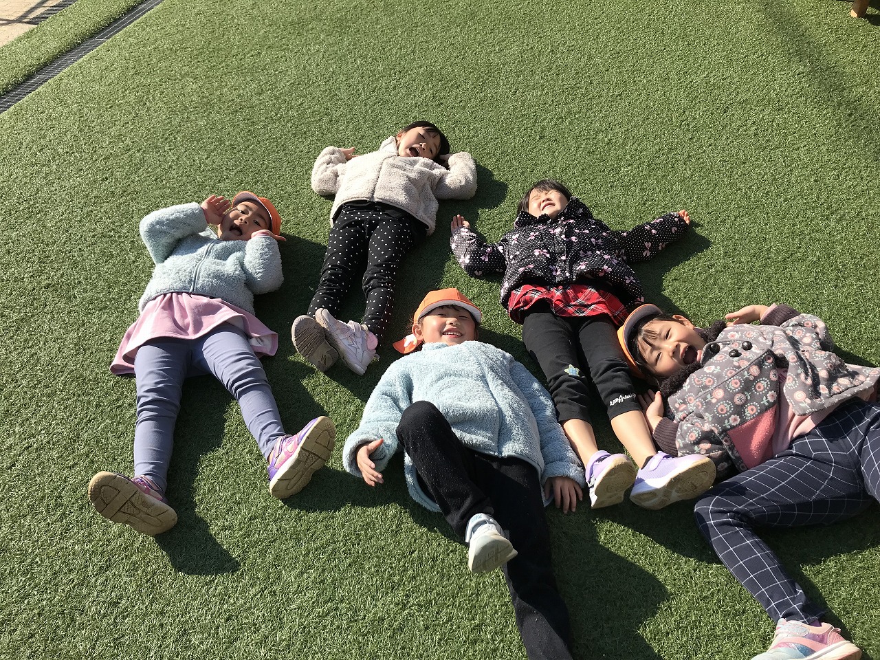 寒い朝が続いています。子ども達は「ゆきふらないかな~」と空を眺めながら元気いっぱいです。お日様も出てきてぽかぽか陽気になると、「おそとであそぼう!」と友だちを誘い合っているもも組(5歳児)です。「ジャンバーいるかな?」と窓を開けて準備をしている子もいました。「あ、さむい!ジャンバーいるよ」と友だちにも教えてあげていて、そんな様子に成長を感じています。