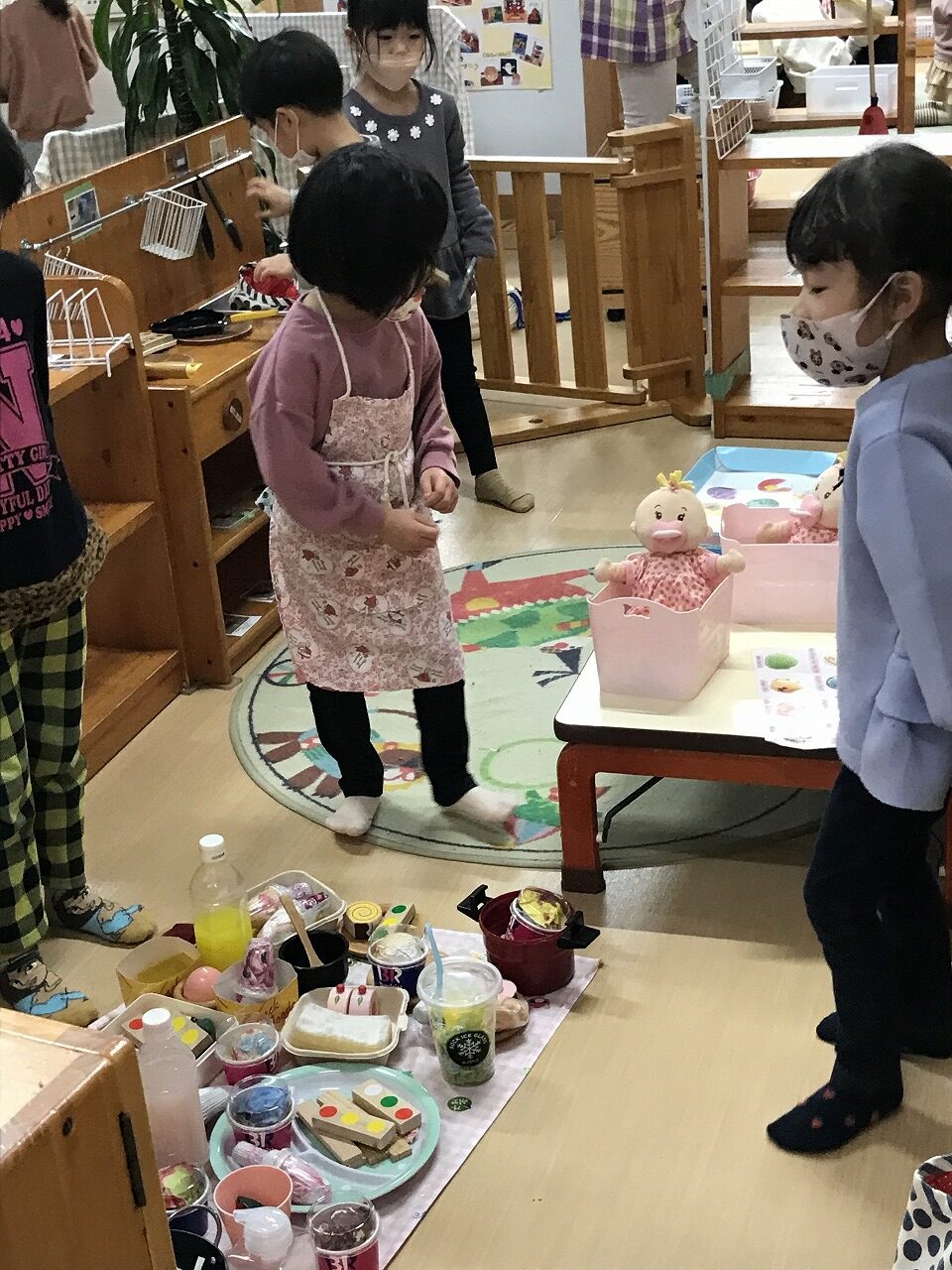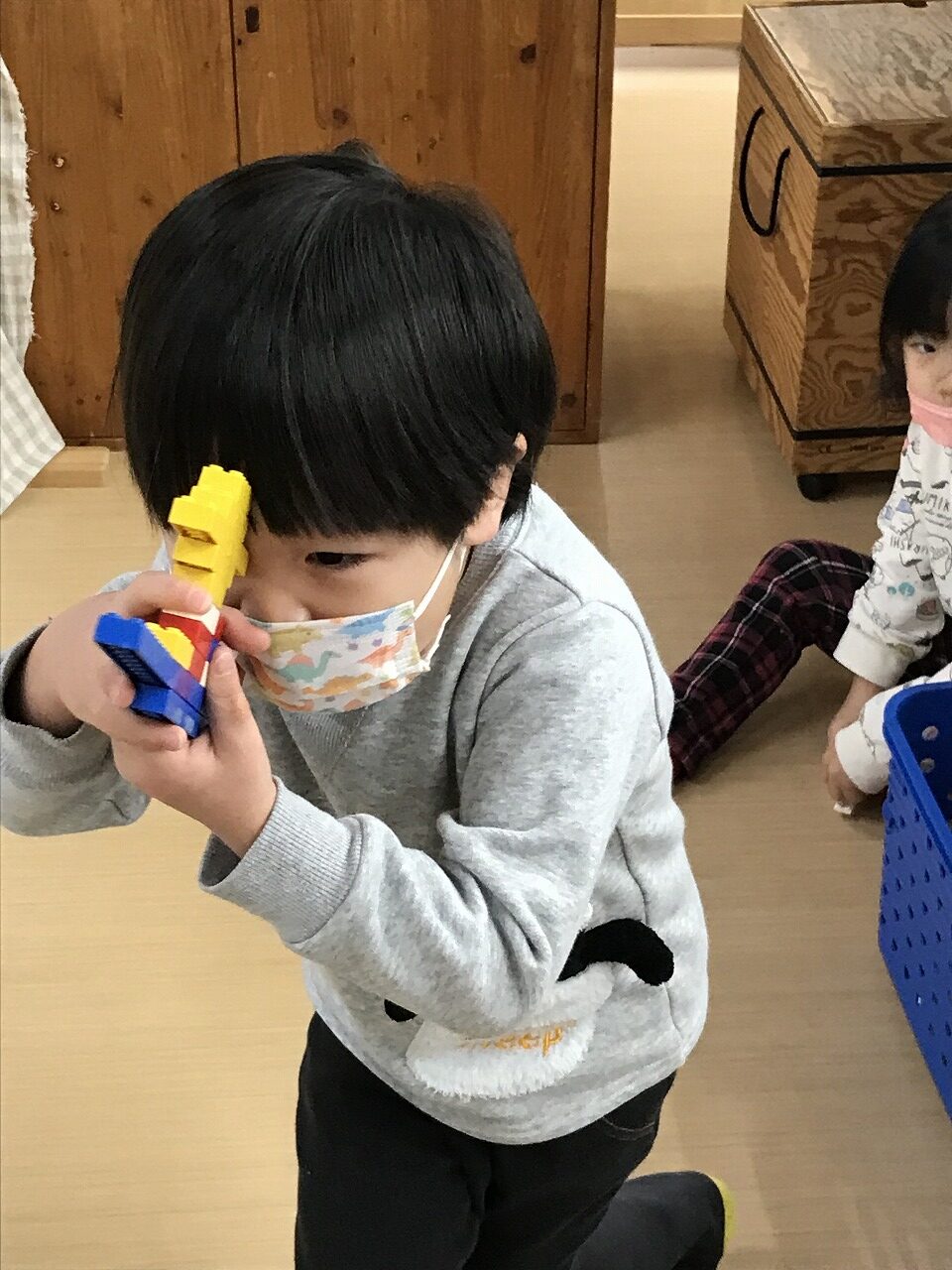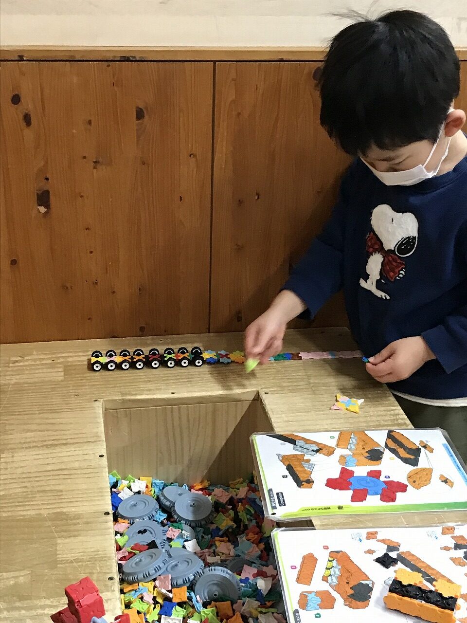わくわくらんどの遊びコーナーでは色々な玩具や教具があり自分がしたいと思う物を選んで遊んでいるうめ組(3歳児)です。