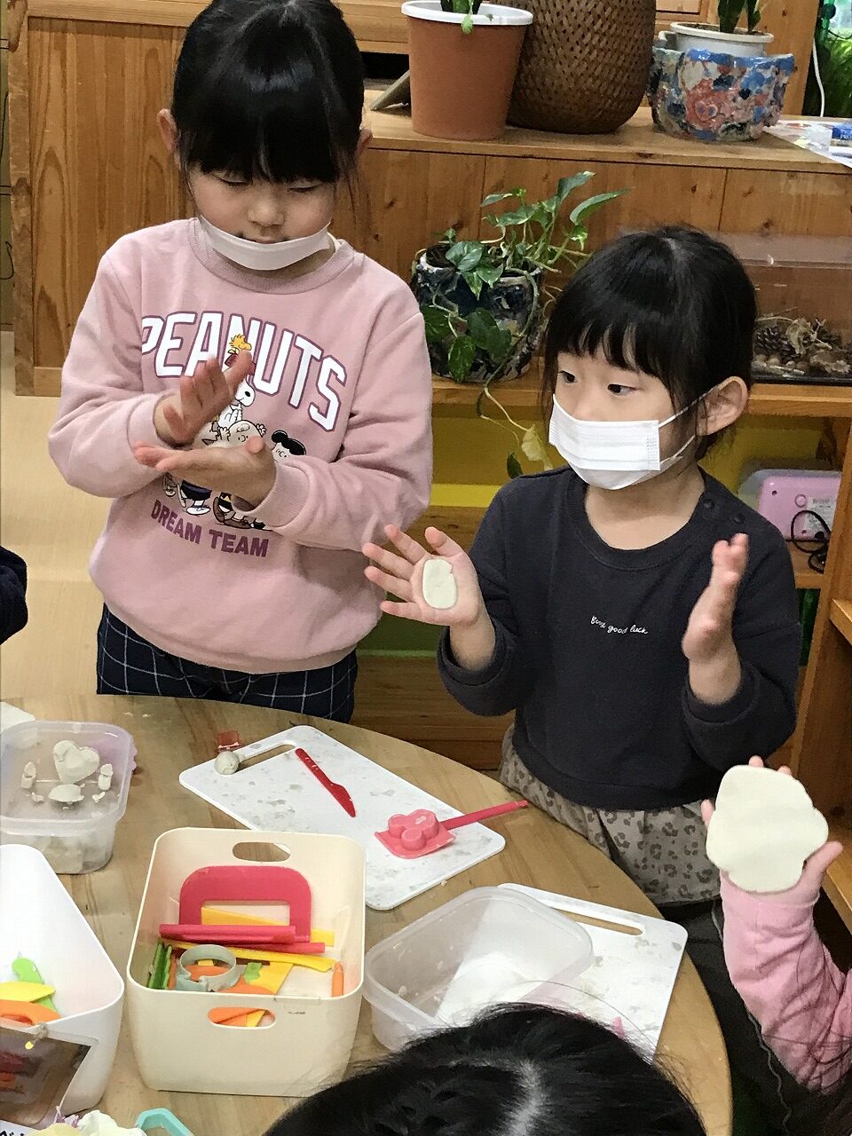 気の合う友達と一緒に遊んだり一人で遊びに夢中になる子と様々ですが、遊びのルールや教具の使い方を考えながら遊びの中で学んでいます。