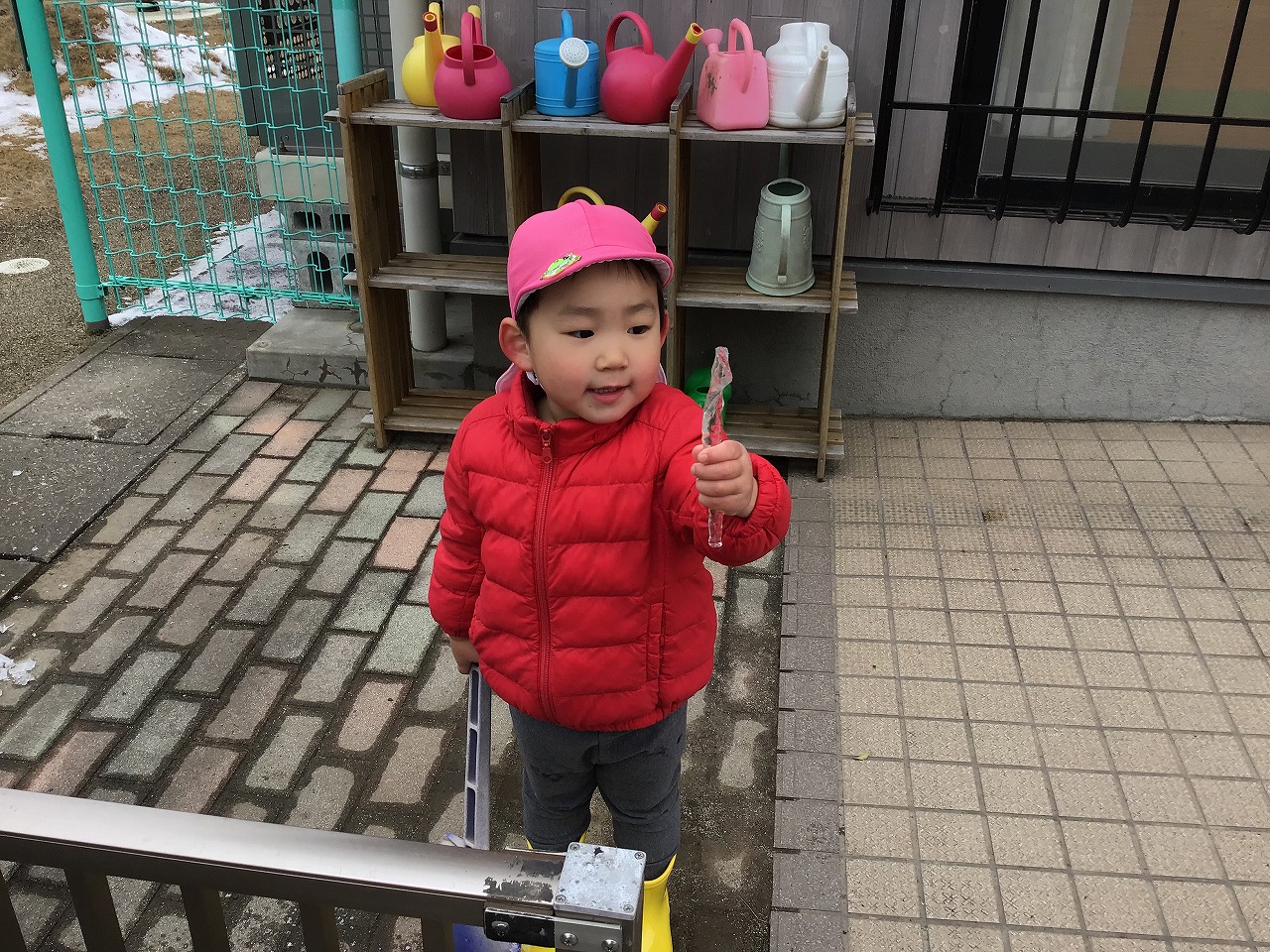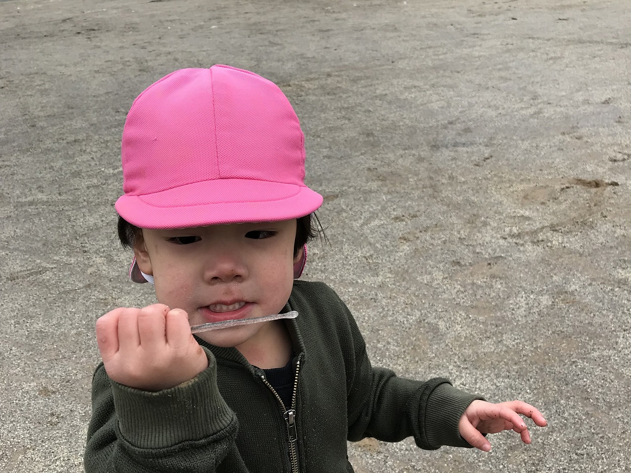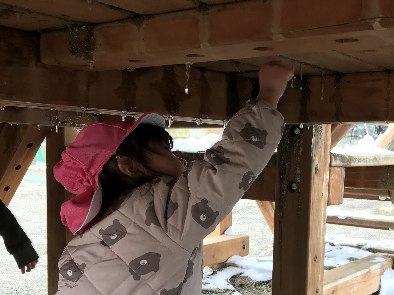 「なんだろう?」と子どもたちは目を輝かせながら氷柱を取り、観察をしていました☆