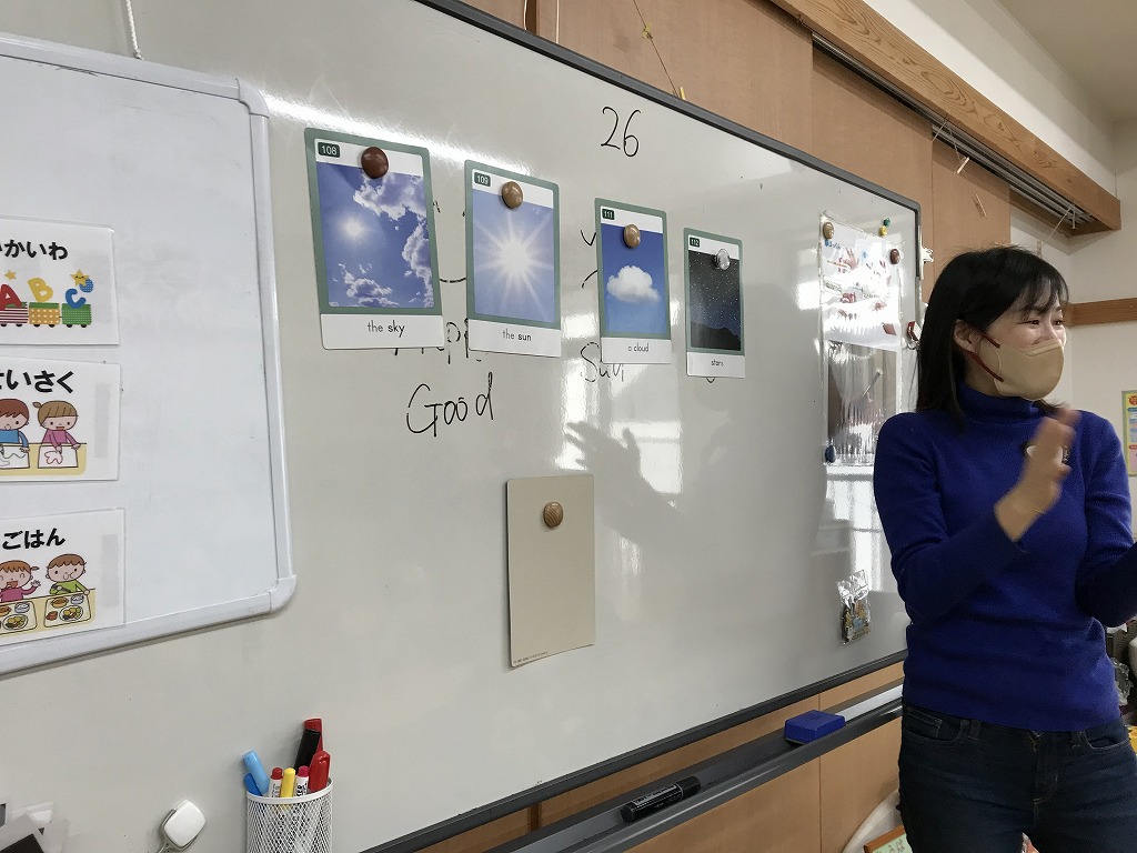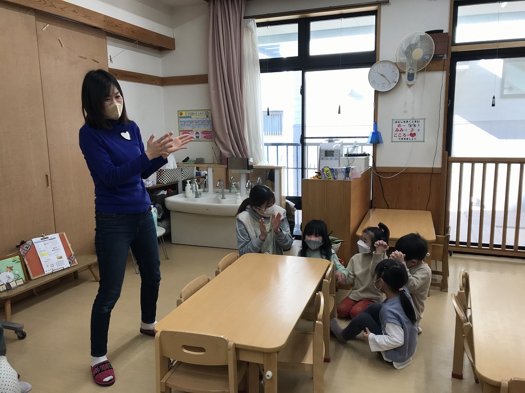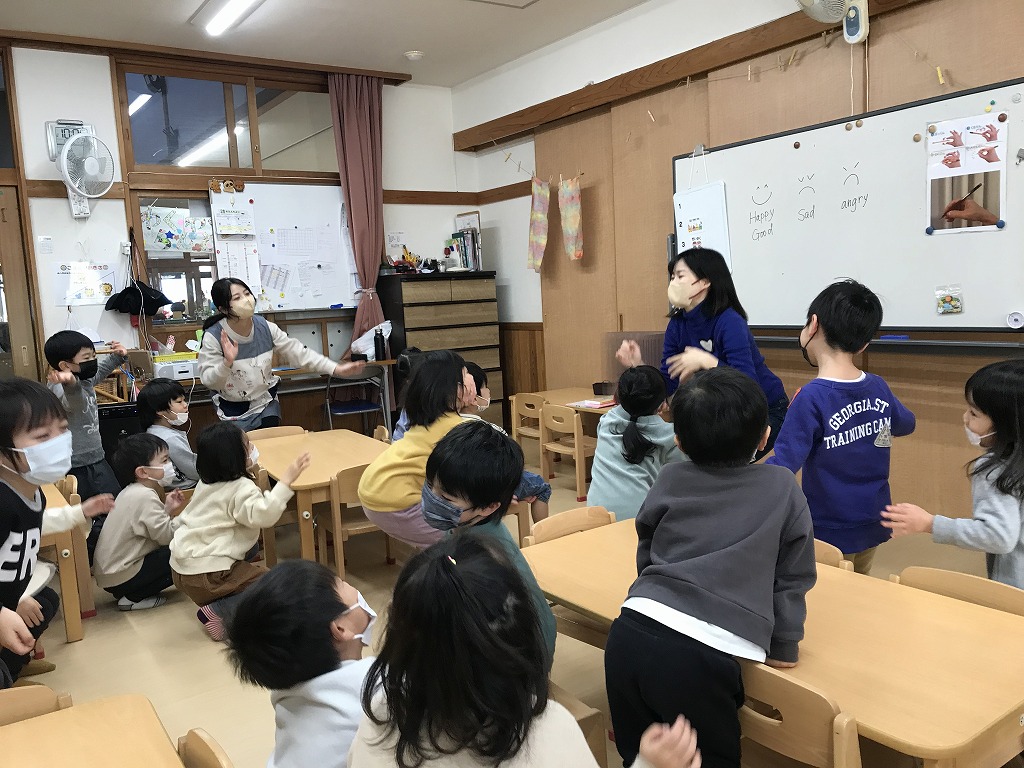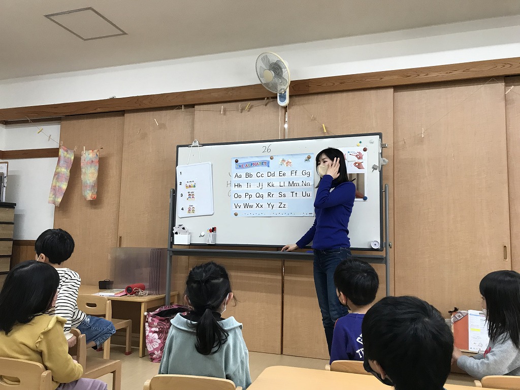 子どもたちの楽しみにしている英会話教室☆まずはじめは体を動かして遊びました。英語をよーく聞いて動作を真似していきます。「いまなんていった??」となりながらもしっかり聞くことができました!今日は英語の数字の数え方やアルファベットを教えてもらいました。アルファベットはABCの歌をよく知っていたので、「これしってる!」とすぐに口ずさんでいた子どもたちでした♩