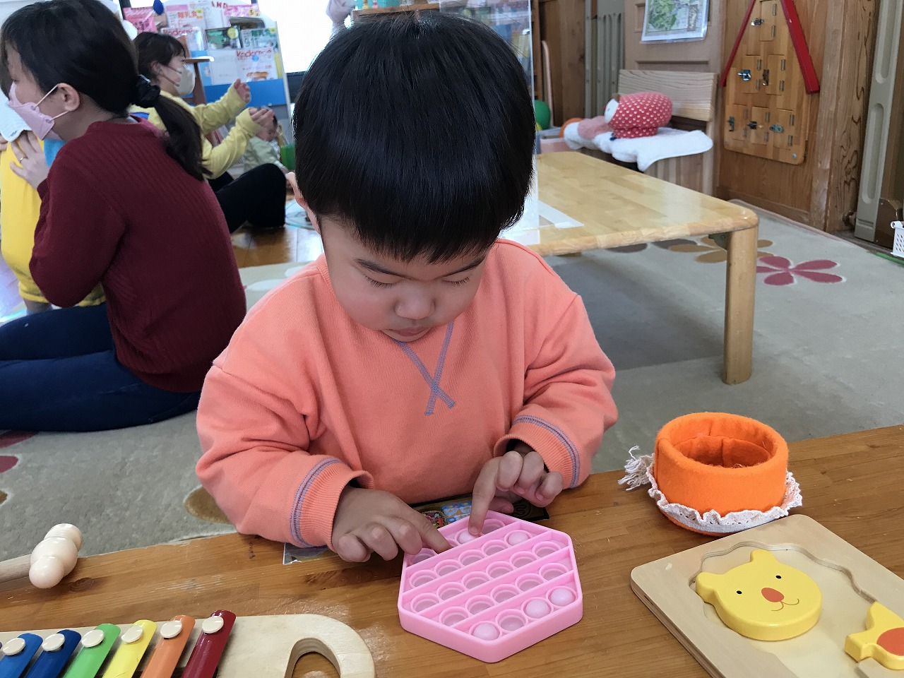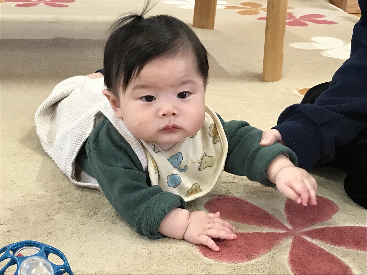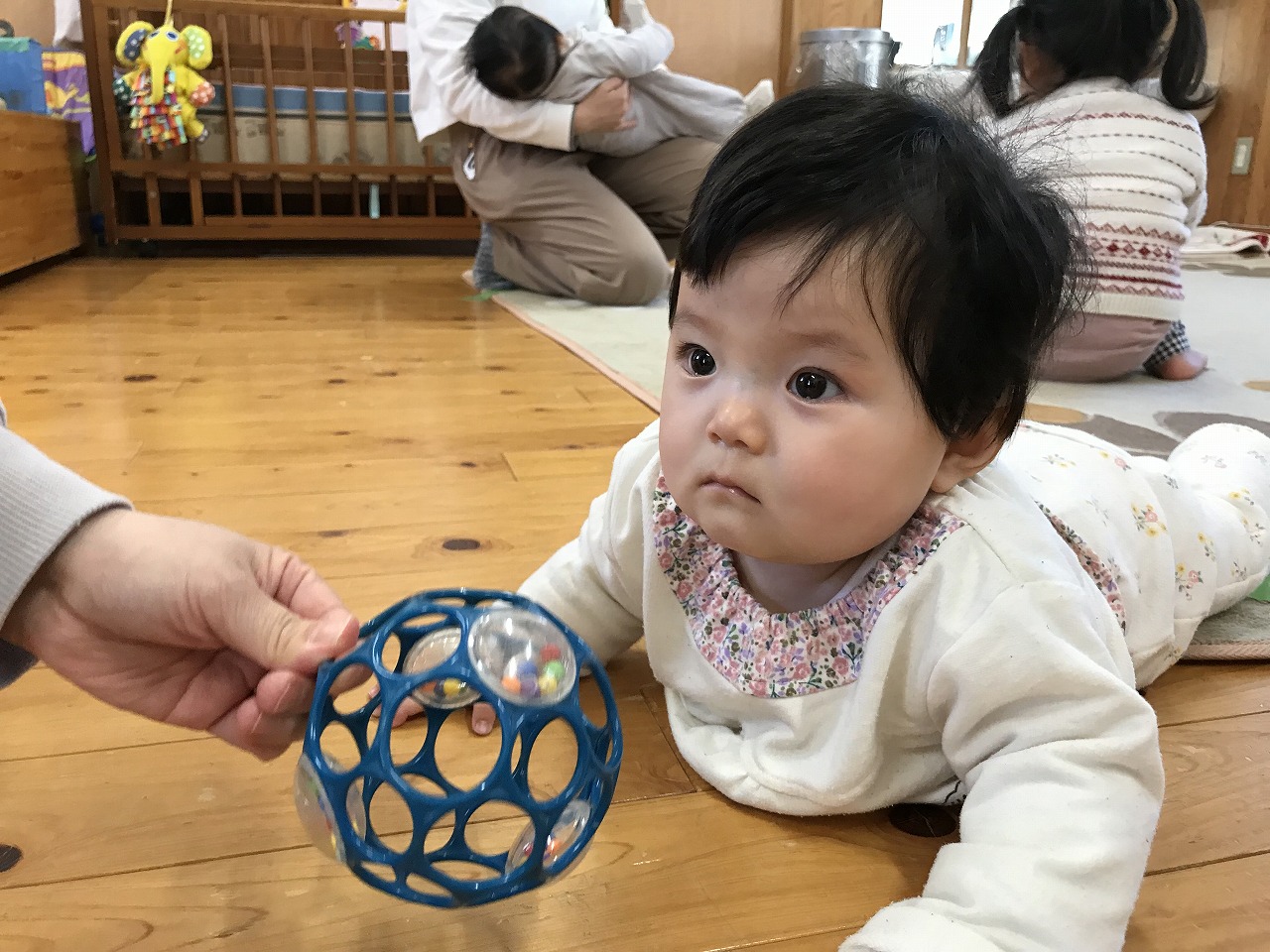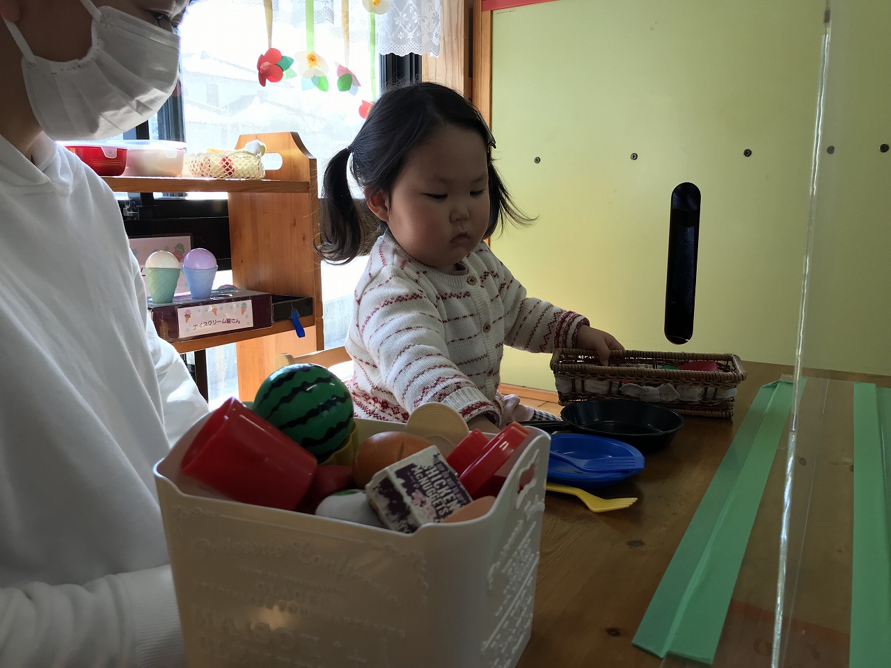 お姉ちゃんがママと遊んでいる間スタッフとお利口さんに待ってます