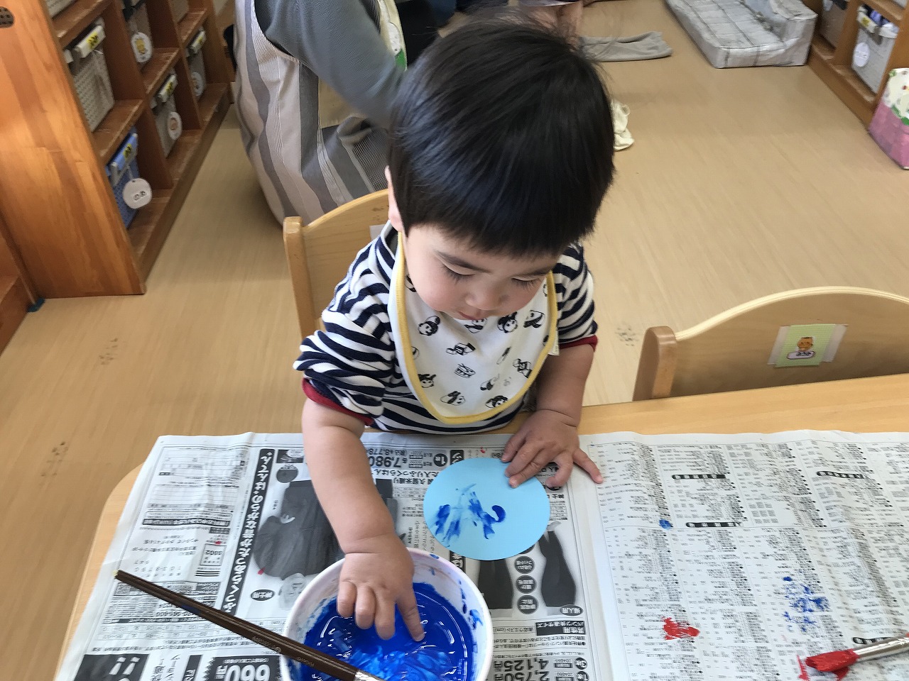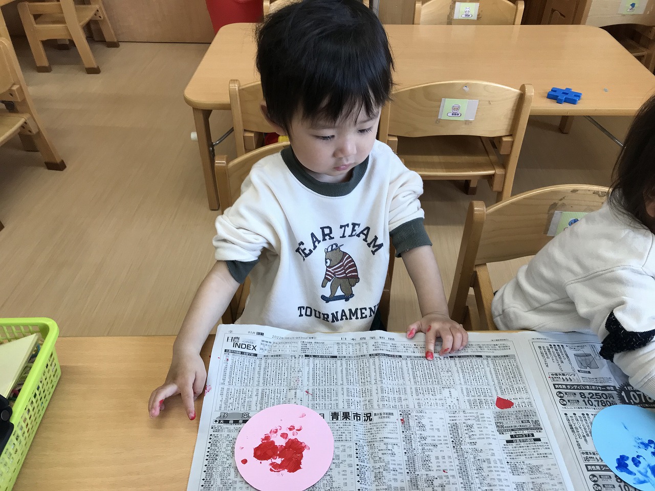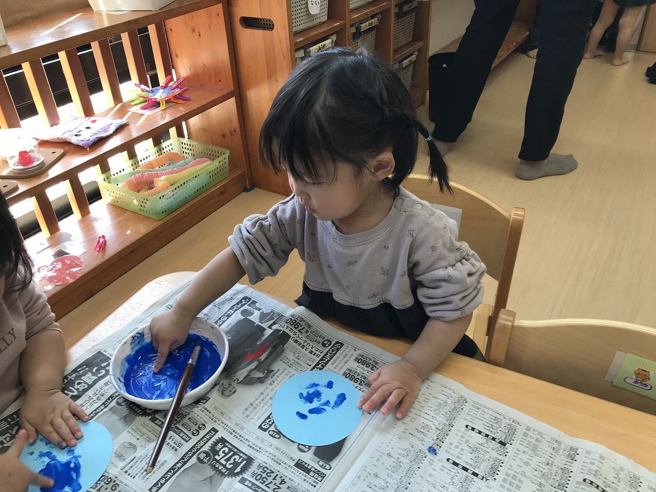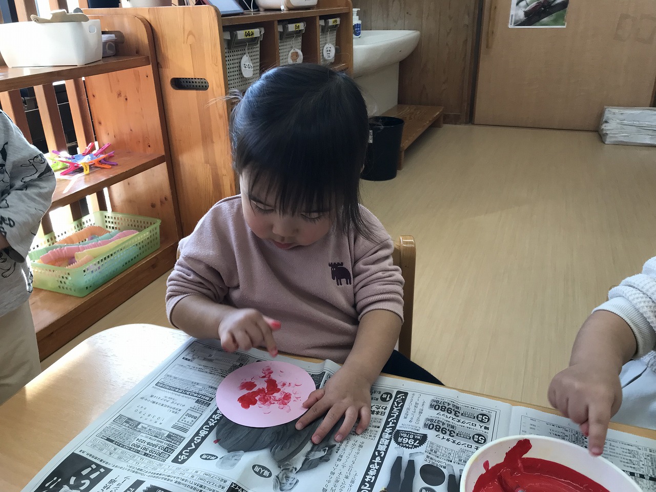 指でポンポン(おひなさま制作)☆ぽかぽか・おそと ~すみれ組~
