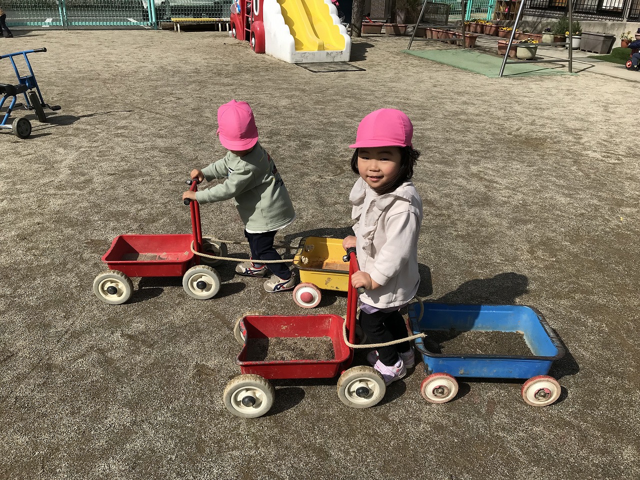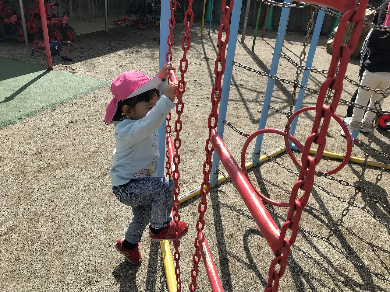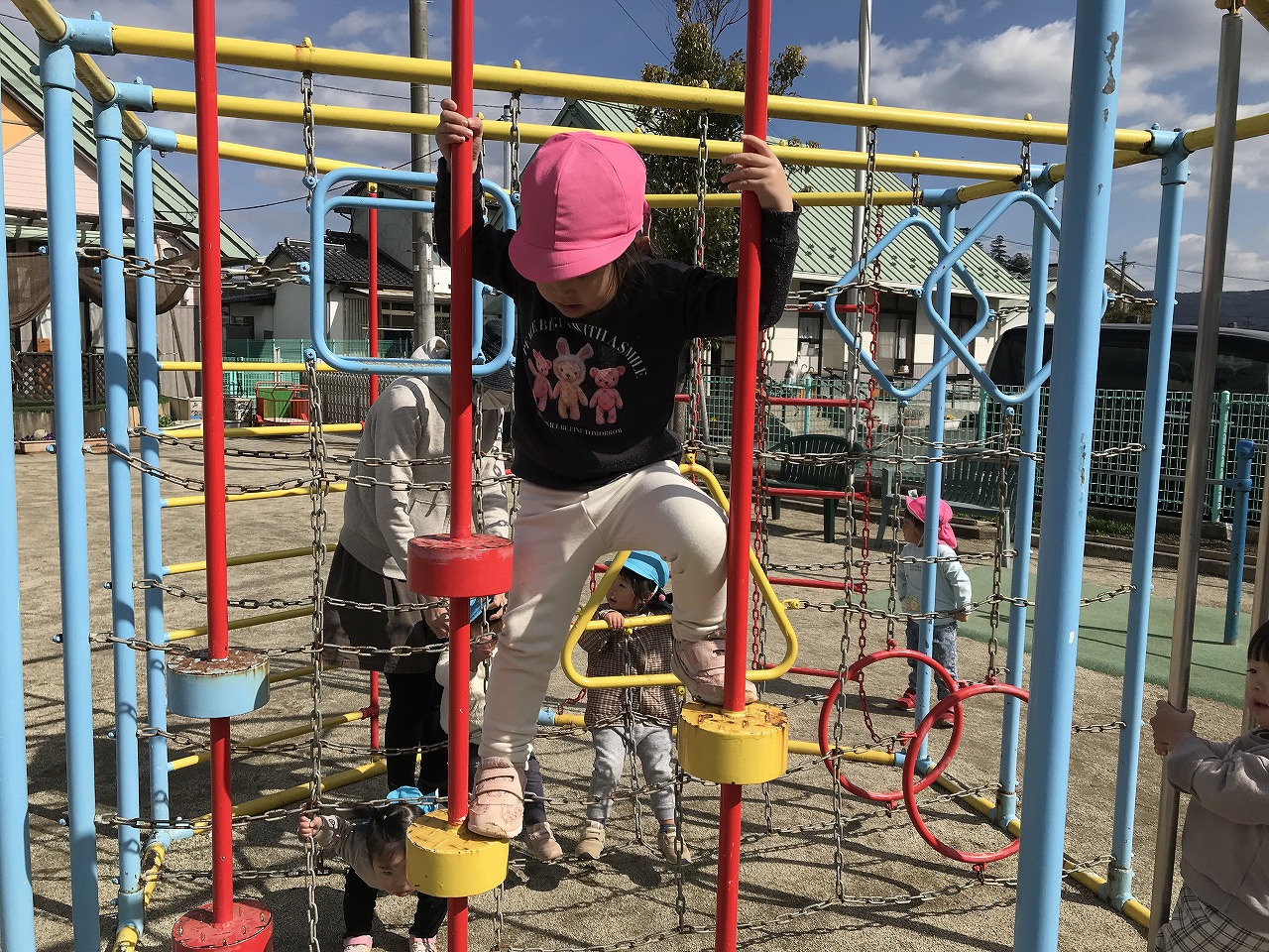 寒さも和らいできて戸外遊びにピッタリの気候になってきました。これからも、みんなで戸外遊びを楽しんでいきたいと思います!