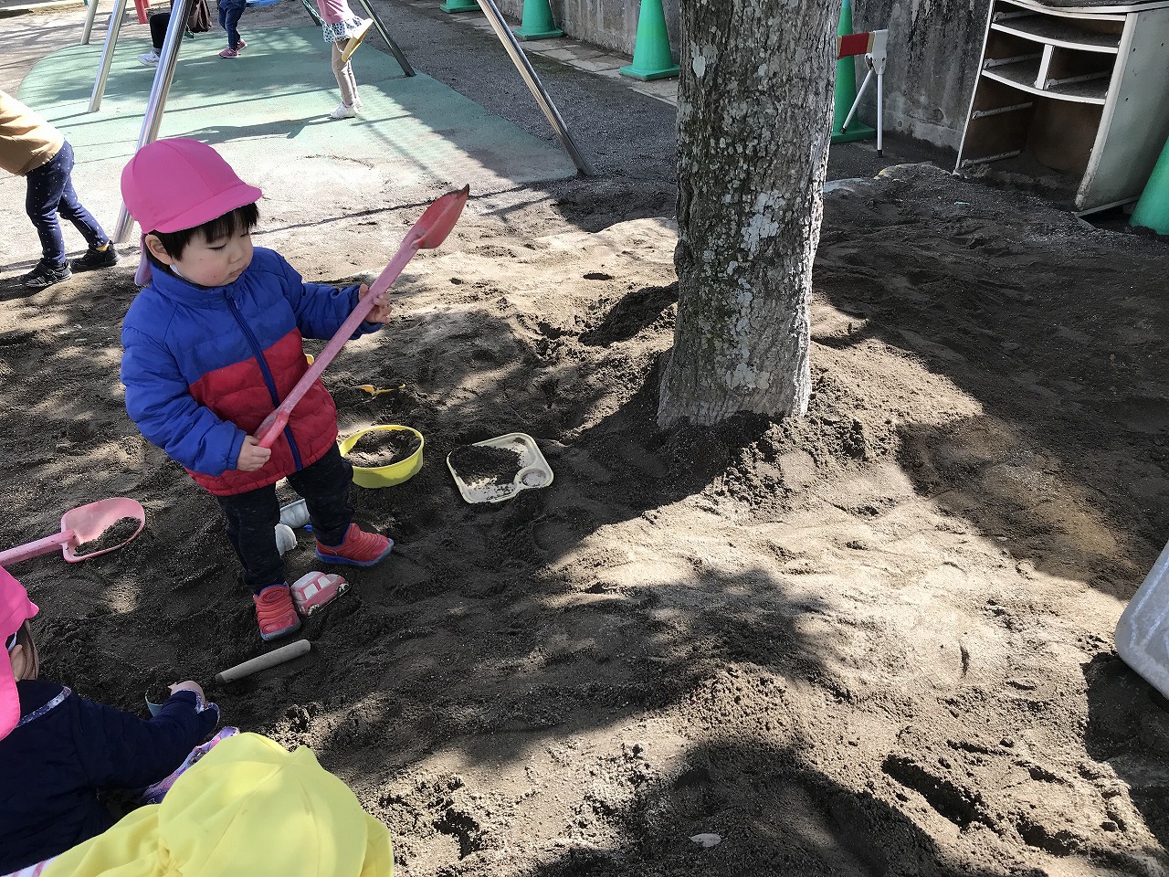 たんぽぽ組(2歳児)の子どもたちは戸外で遊ぶことが大好き!!