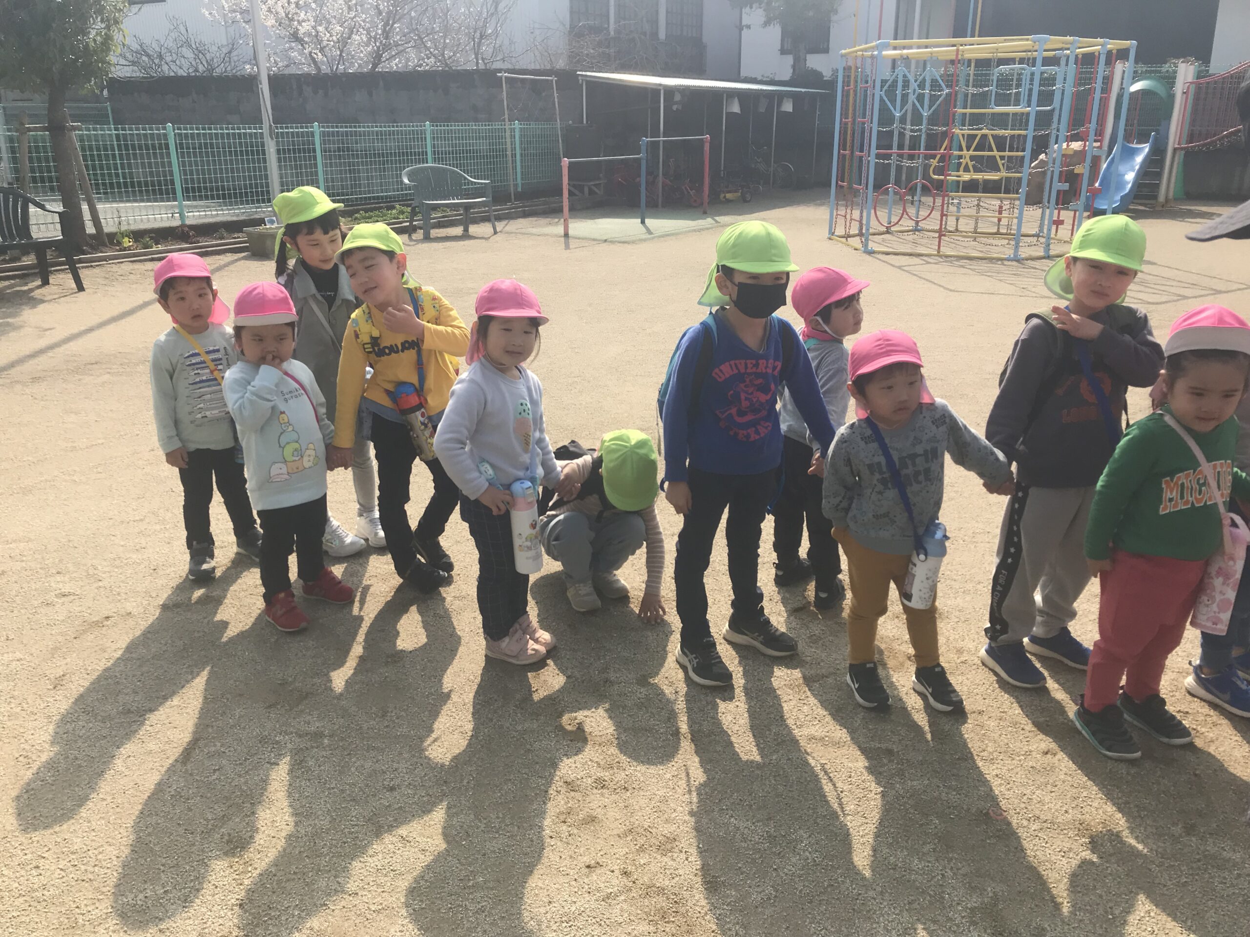 今日はお別れ遠足で丸の内公園まで行ってきました。