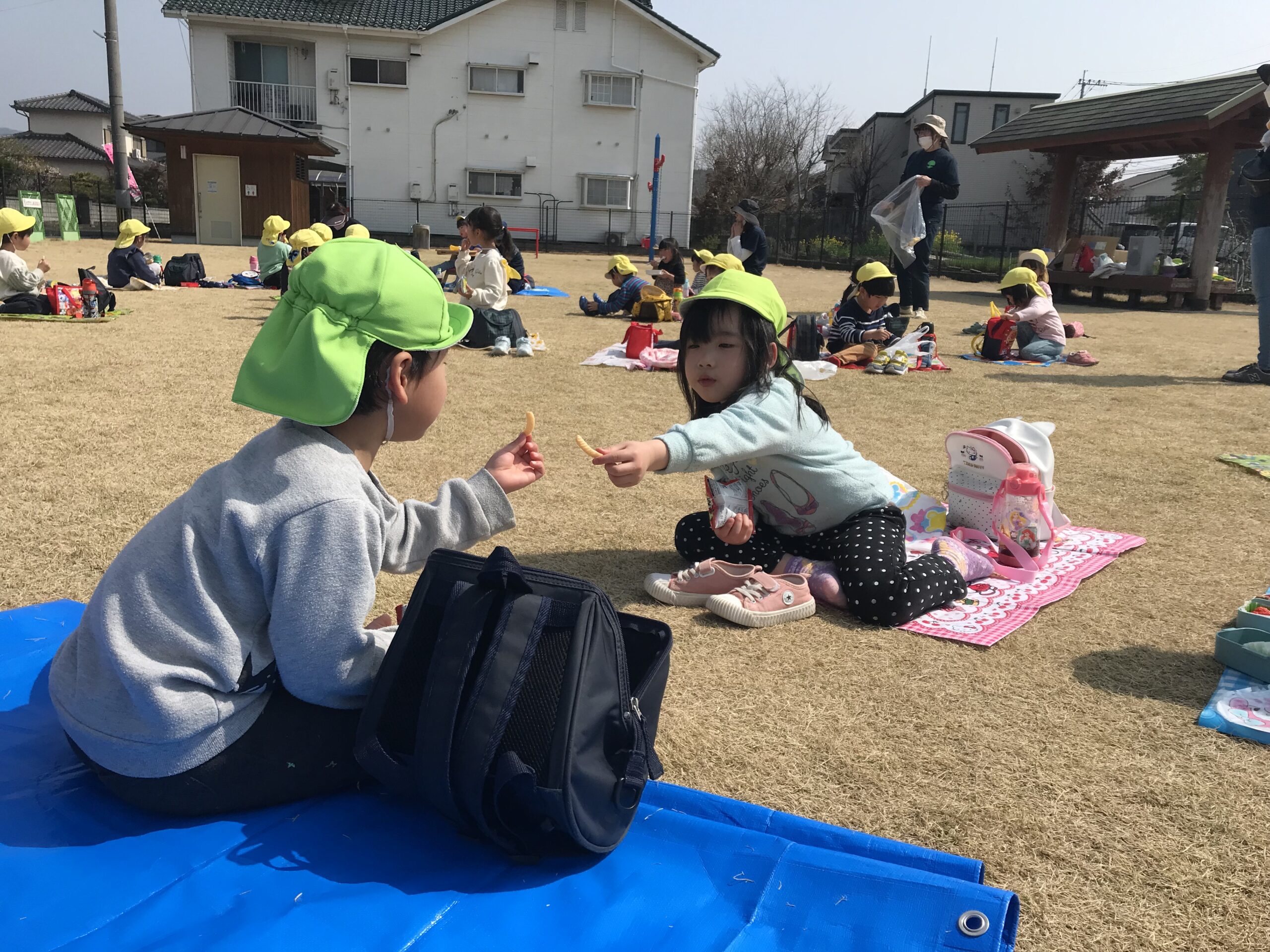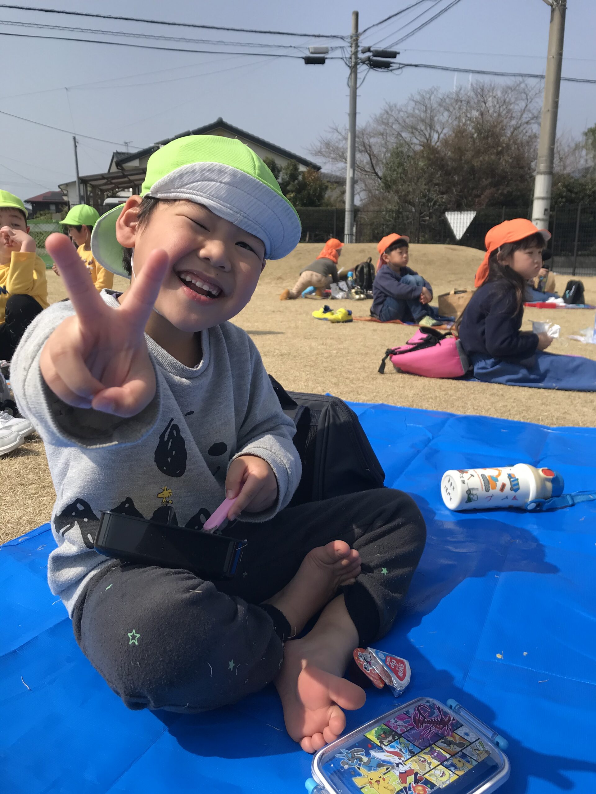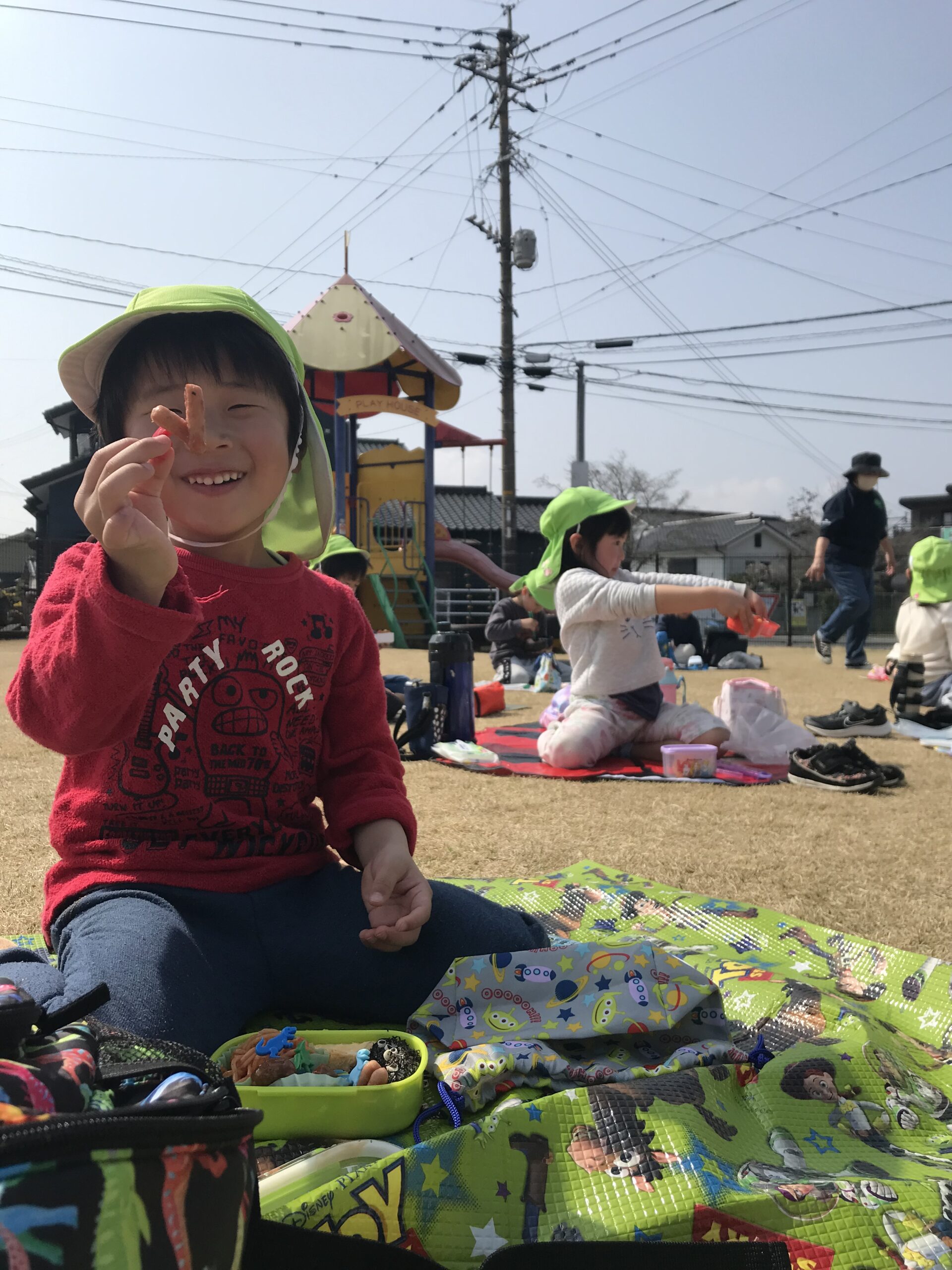 楽しみにしていたお弁当、おやつを食べて、たくさん遊んでまた一つもも組さんとの楽しい思い出ができました。卒園まであと少し。寂しい気持ちもありますが、残りの日々を楽しく過ごしていきたいです。