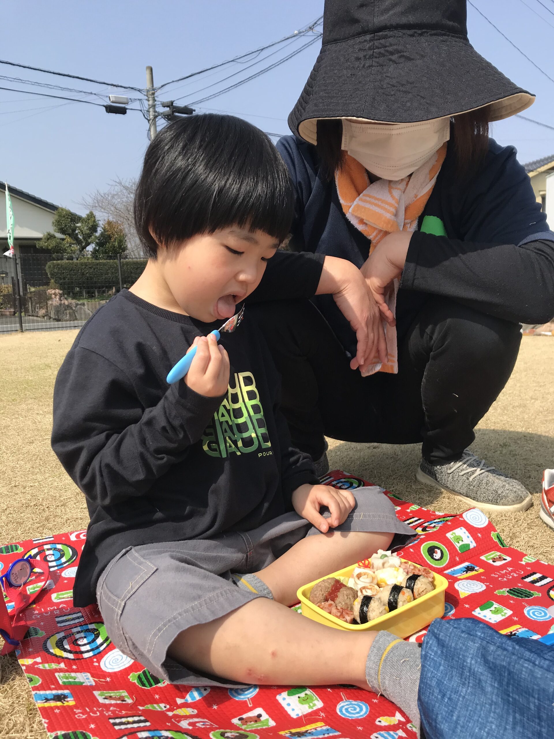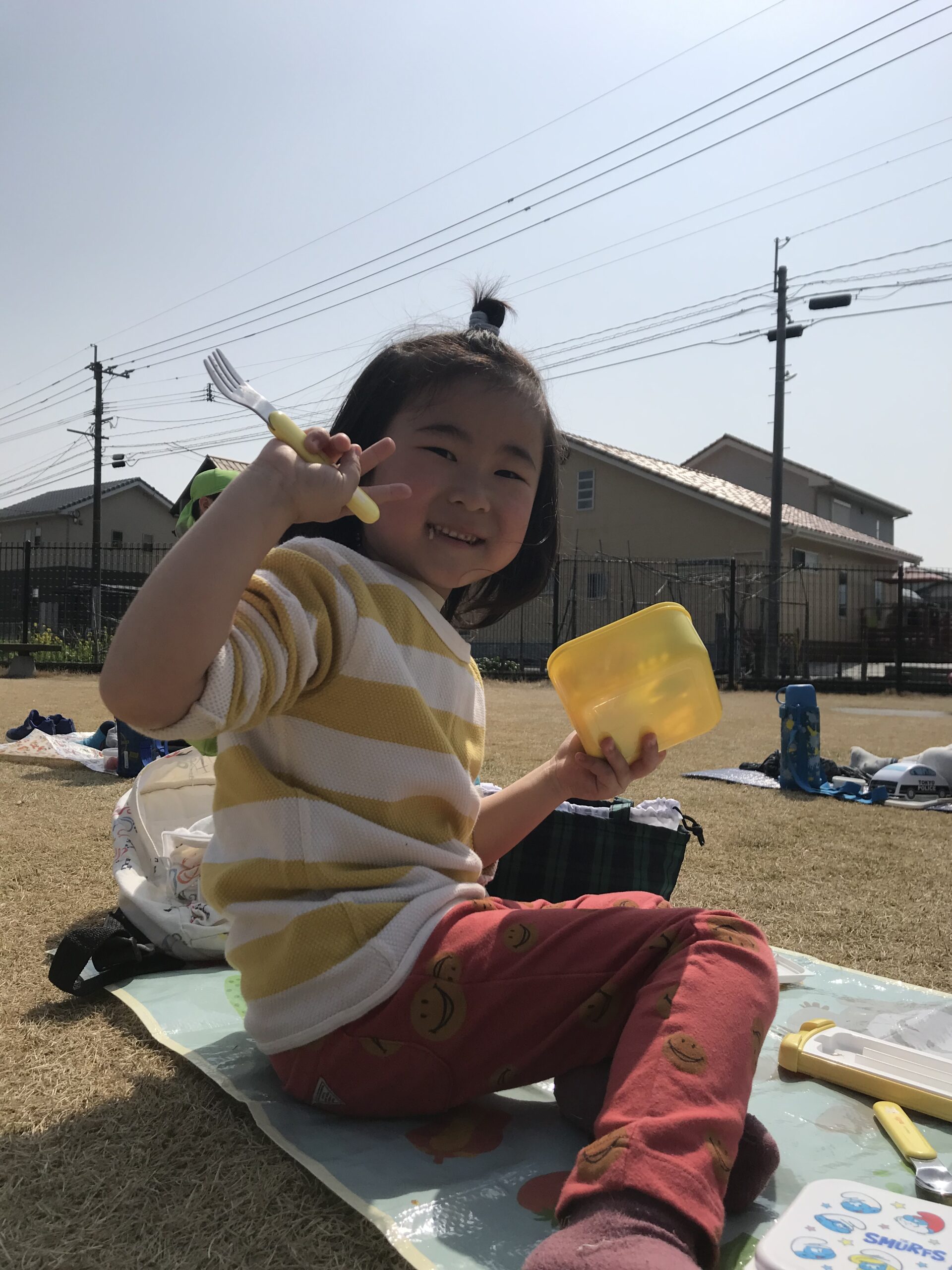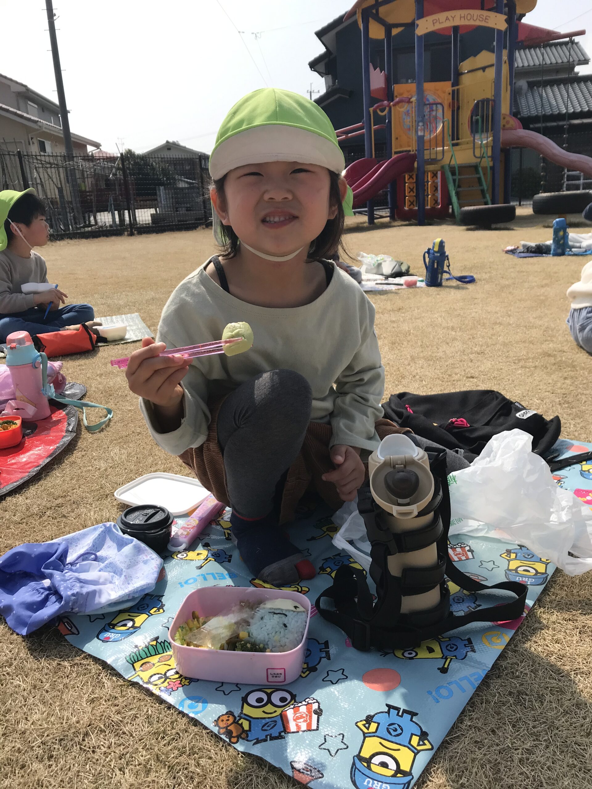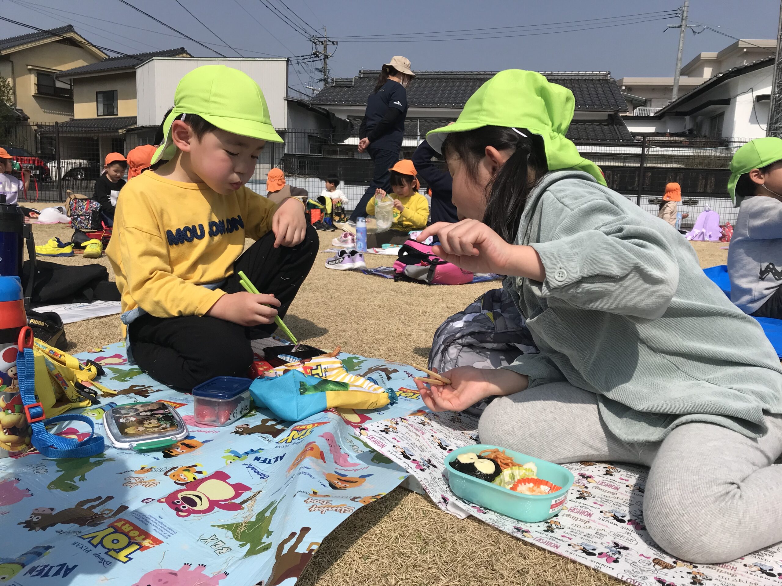 楽しみにしていたお弁当、おやつを食べて、たくさん遊んでまた一つもも組さんとの楽しい思い出ができました。卒園まであと少し。寂しい気持ちもありますが、残りの日々を楽しく過ごしていきたいです。