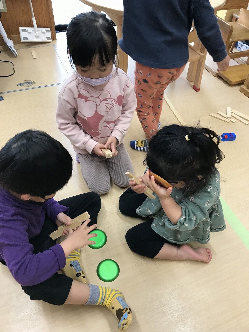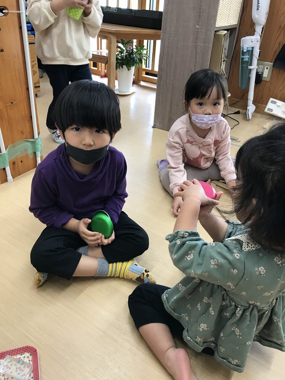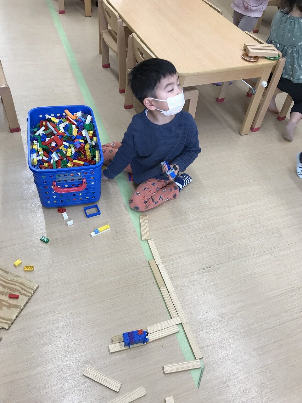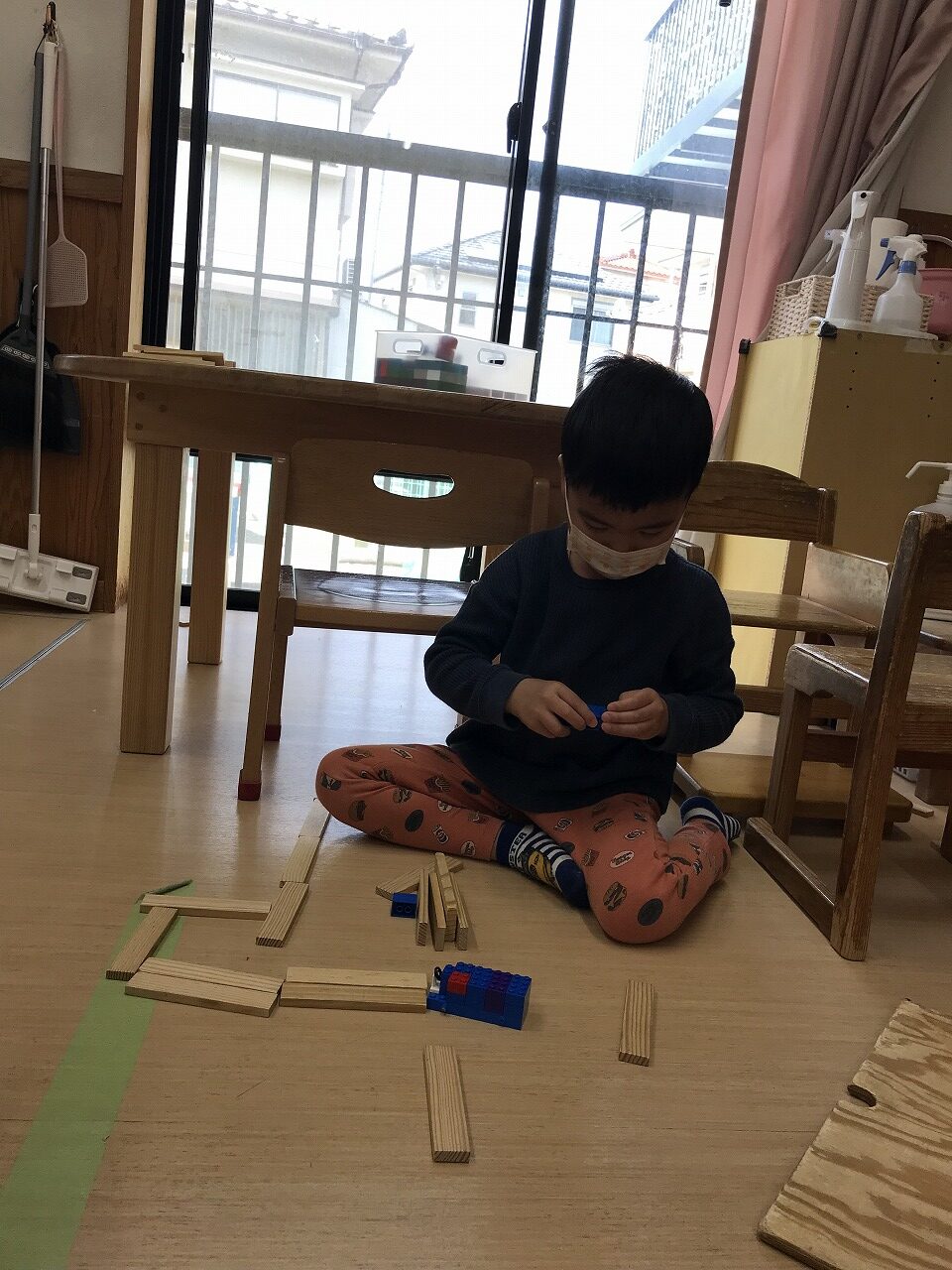 気の合う友達や一人遊びと遊び方は様々ですが、自分の好きな遊びを楽しんでいるうめ組(3歳児)です。
