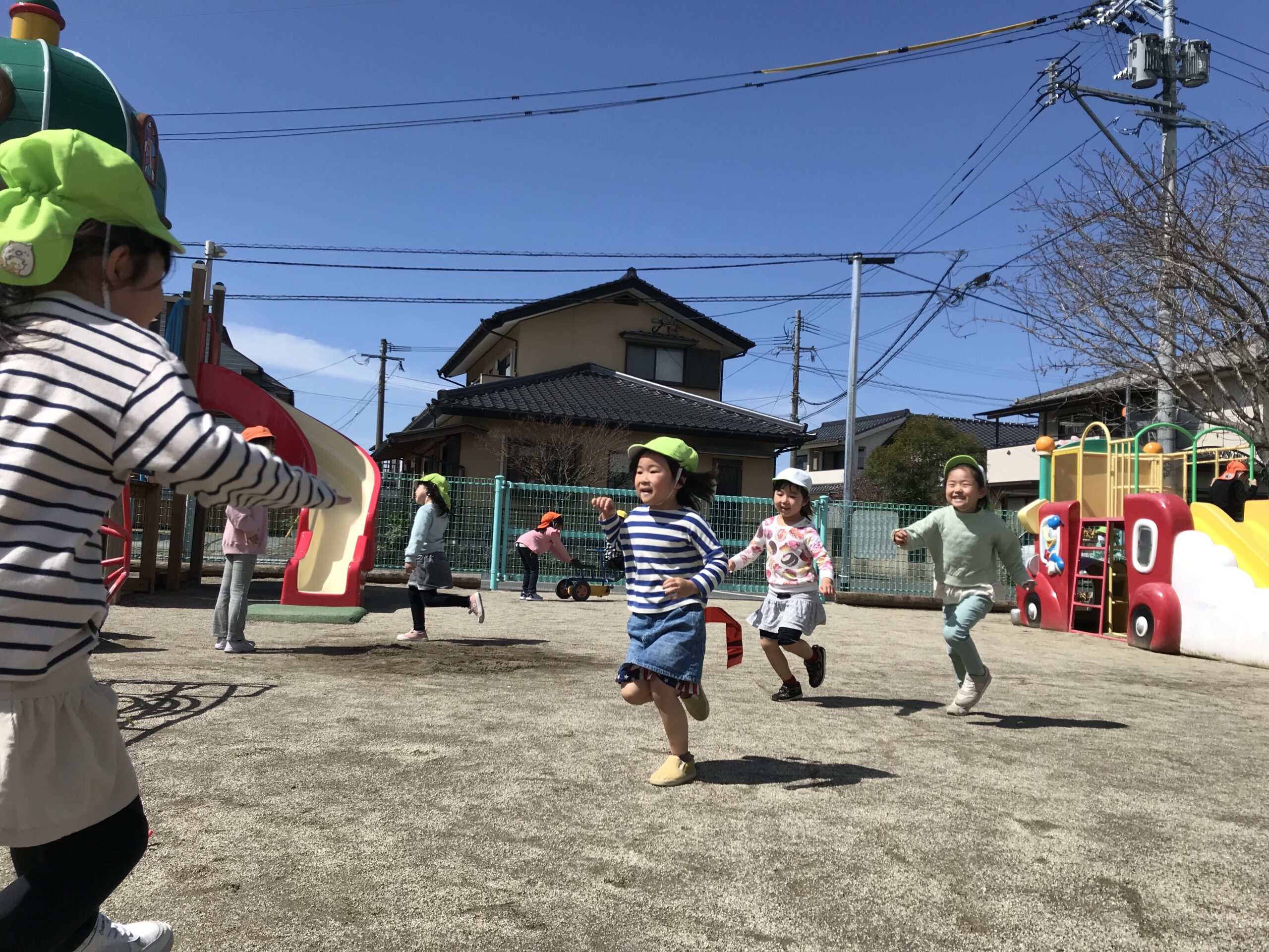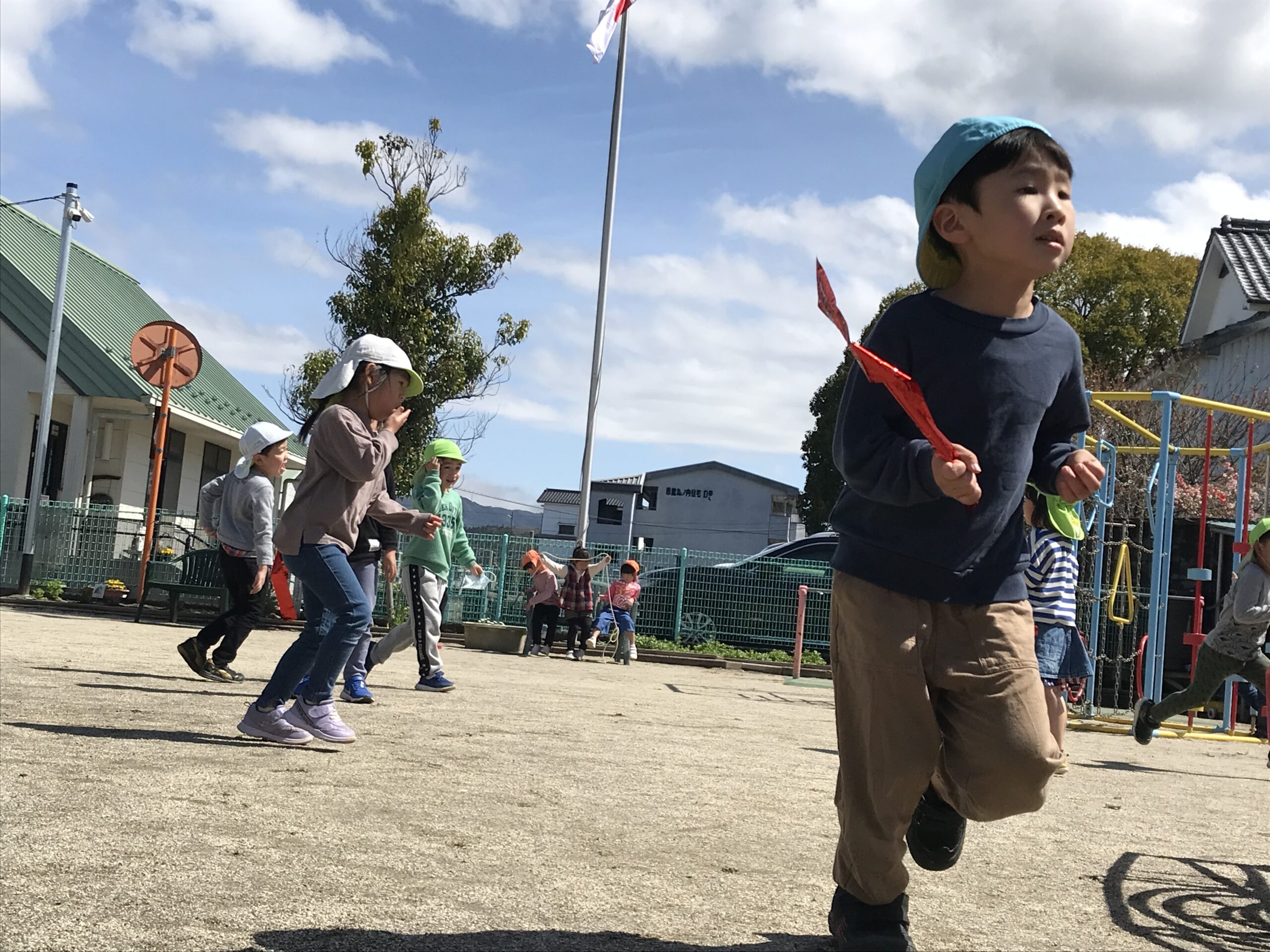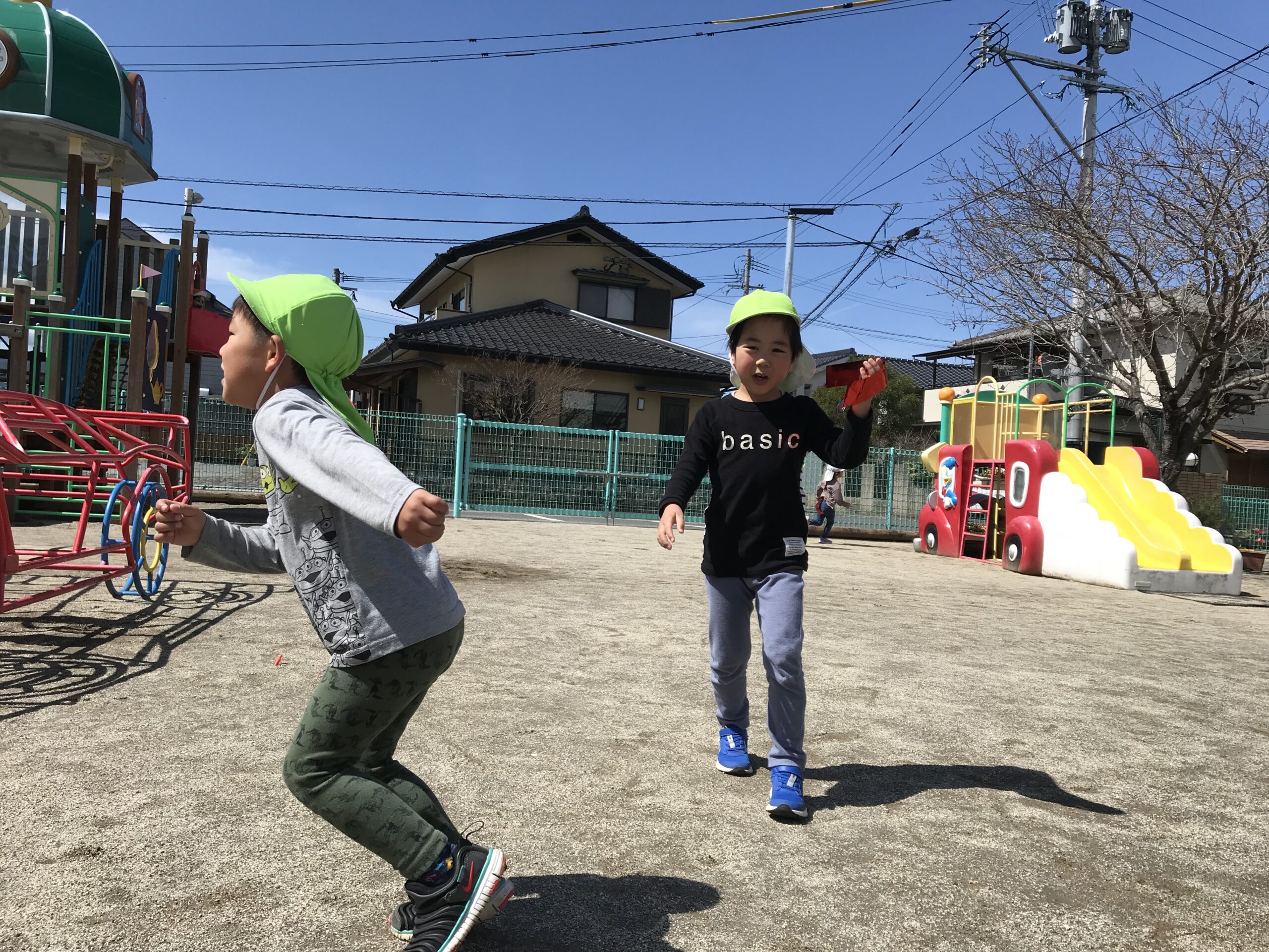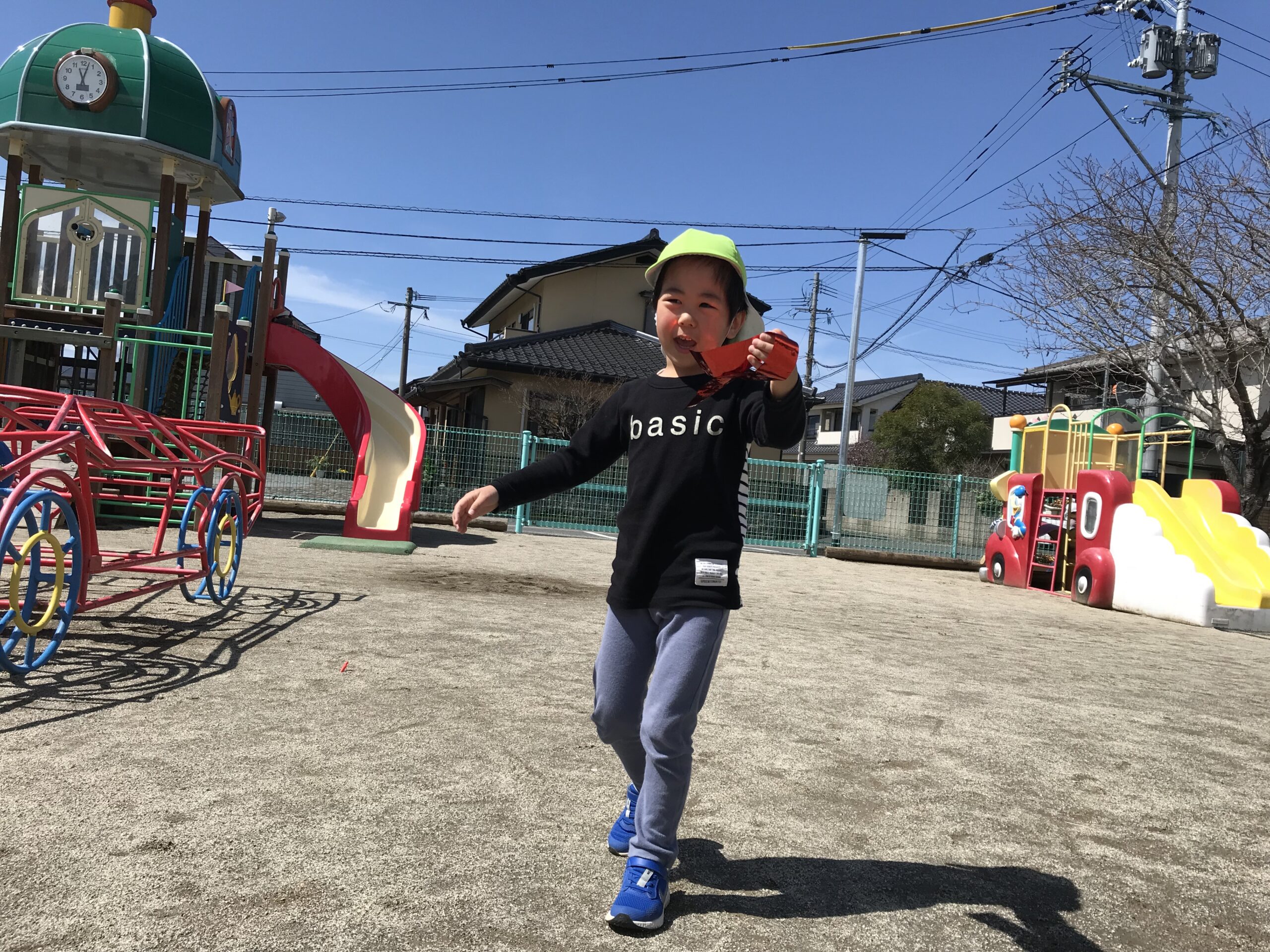気持ちの良いお天気だったので、今日はお外遊びを思い切り楽しみました!