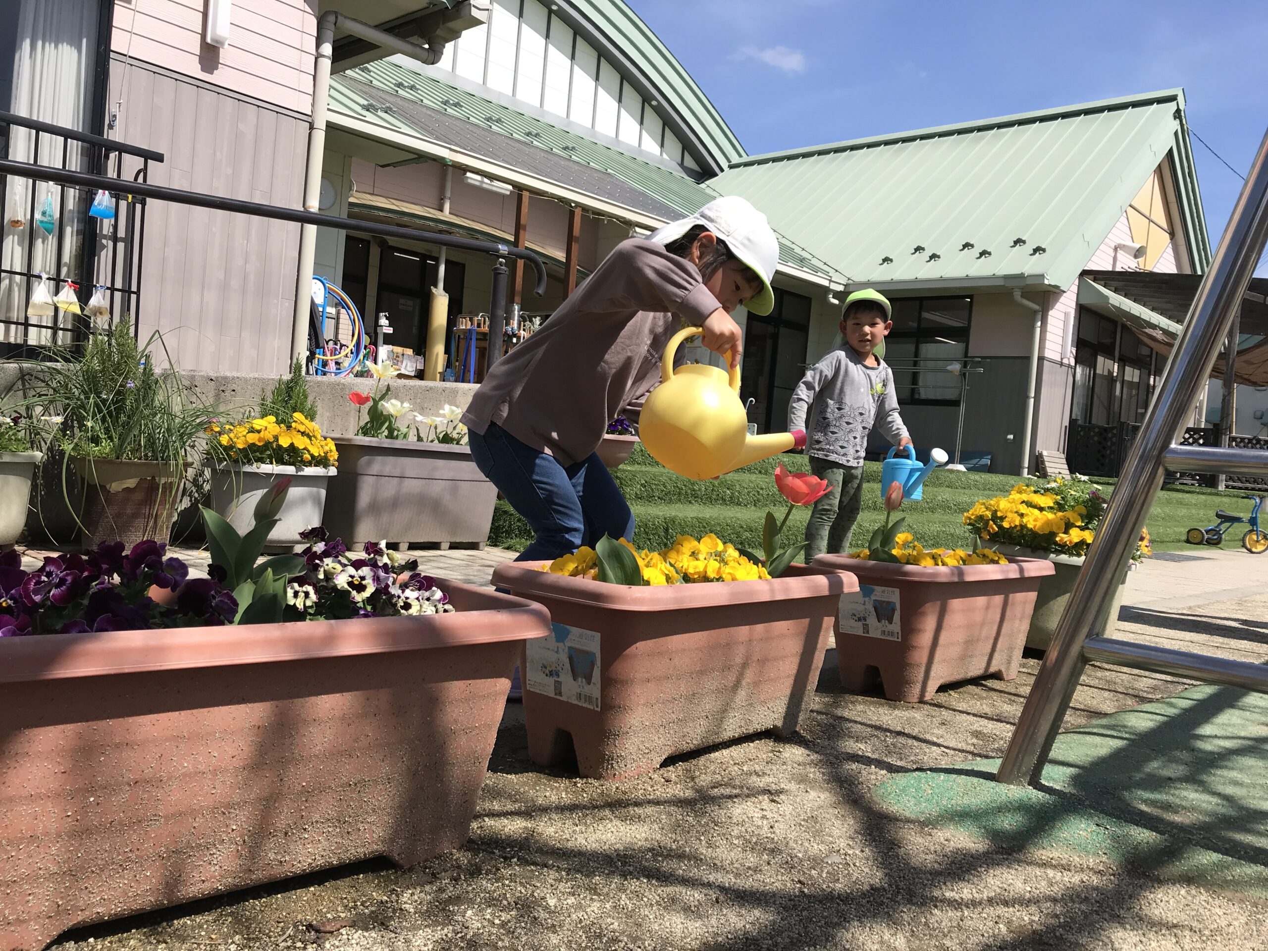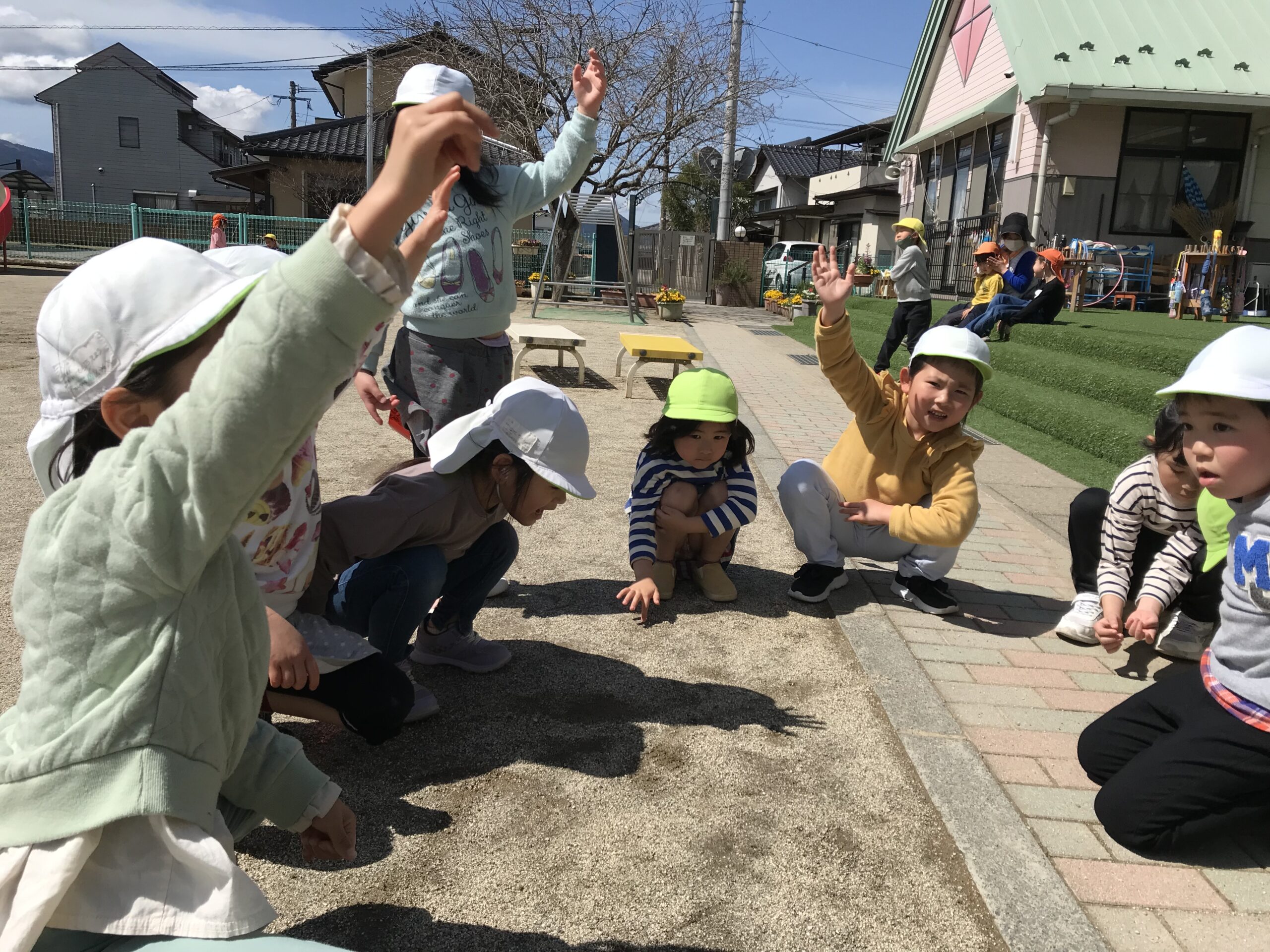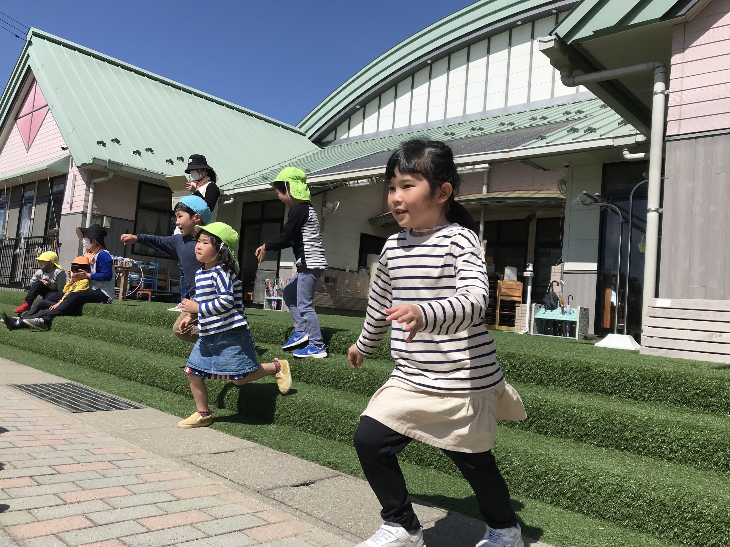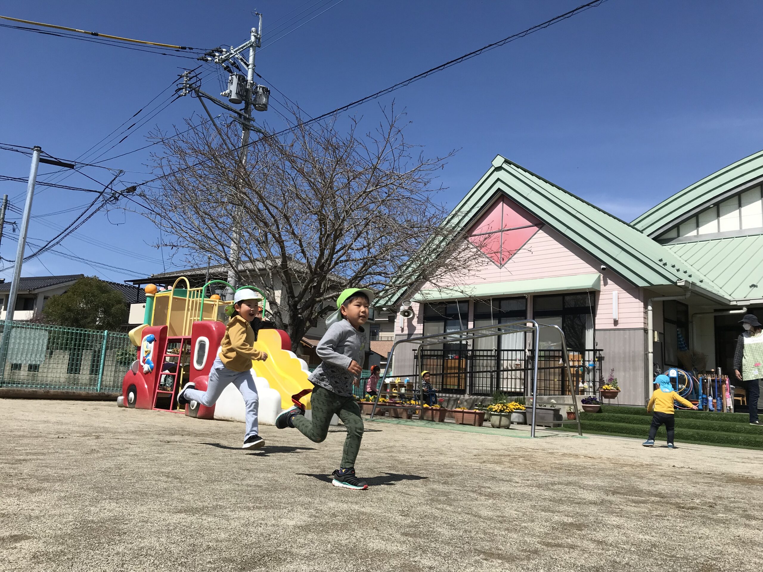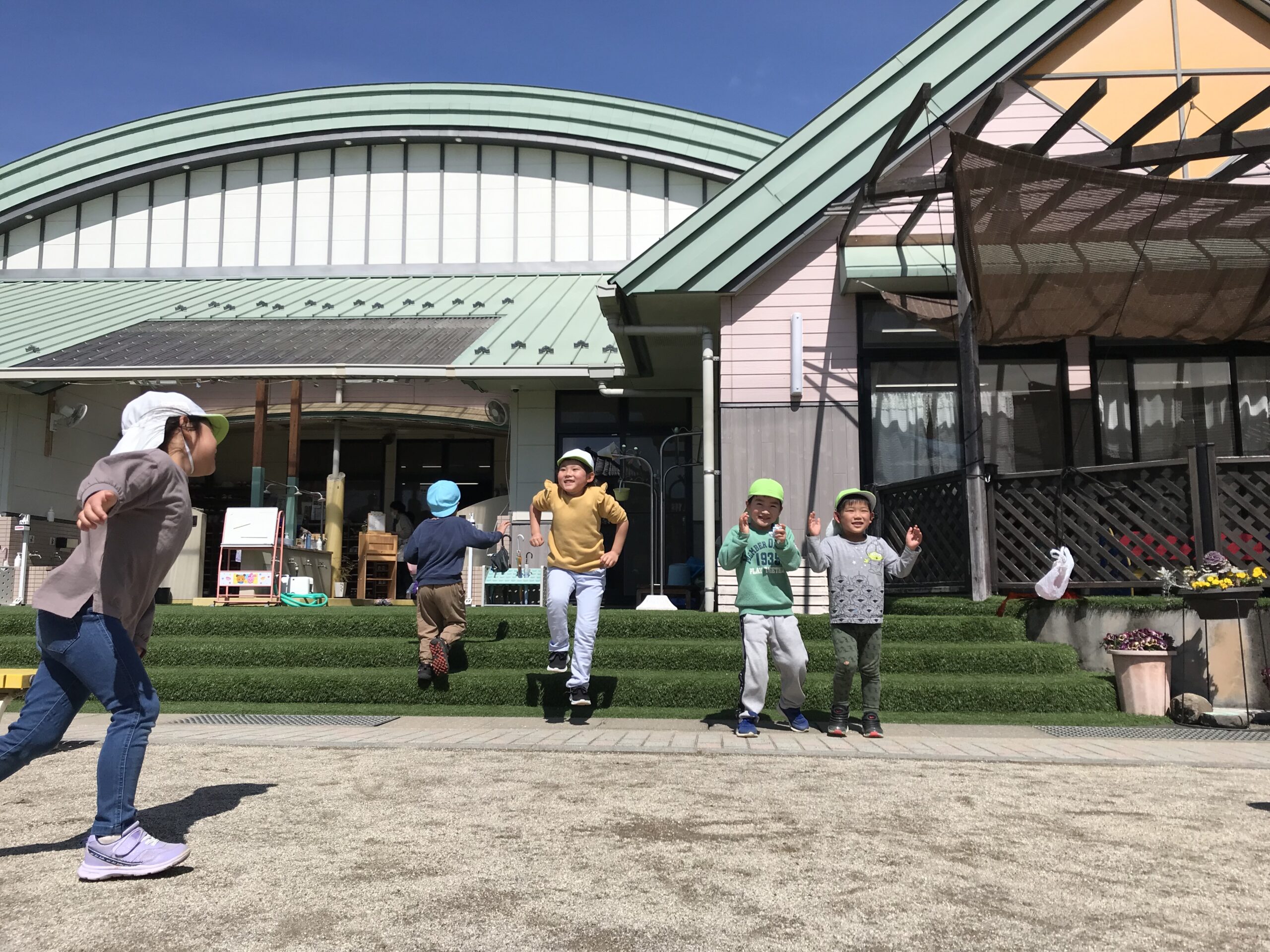 気持ちの良いお天気だったので、今日はお外遊びを思い切り楽しみました!