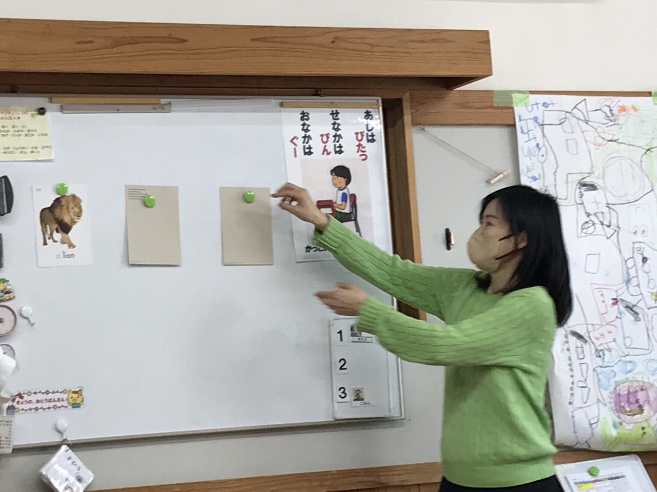 初めての英語に戸惑いながら真似しながら動かしていくと、慣れて来たようで楽しんでいました。
