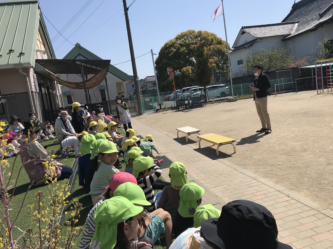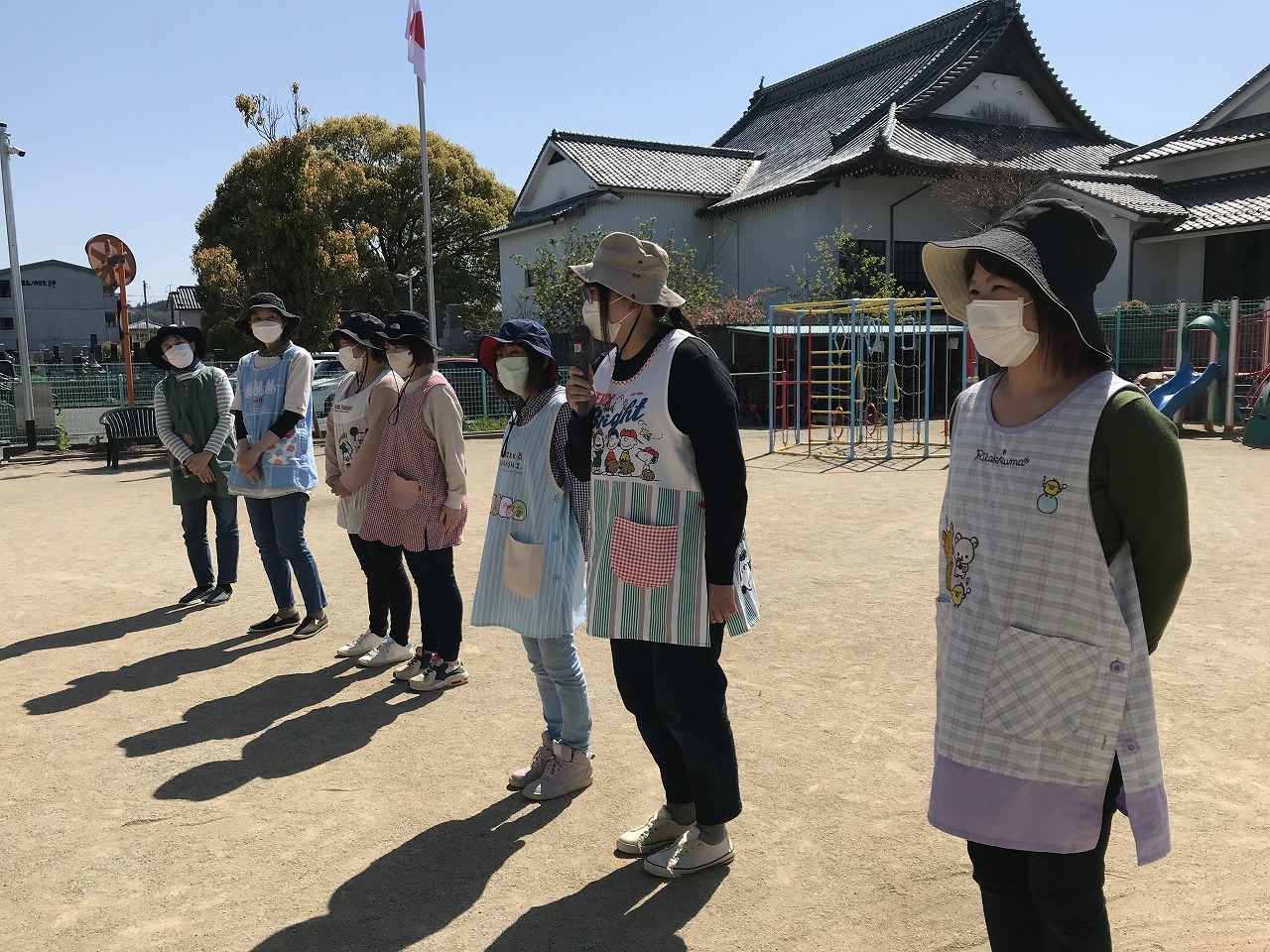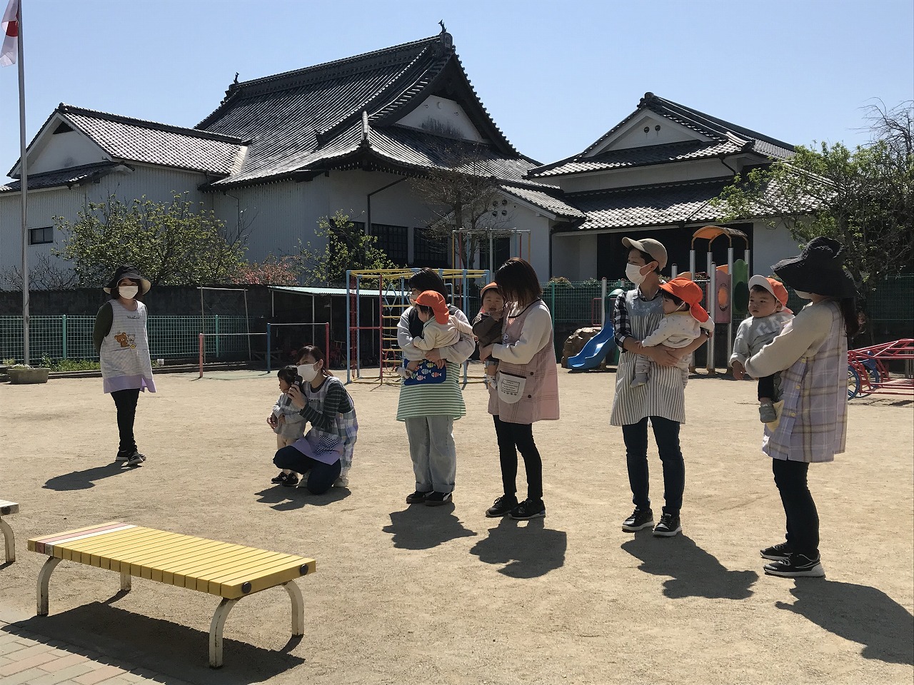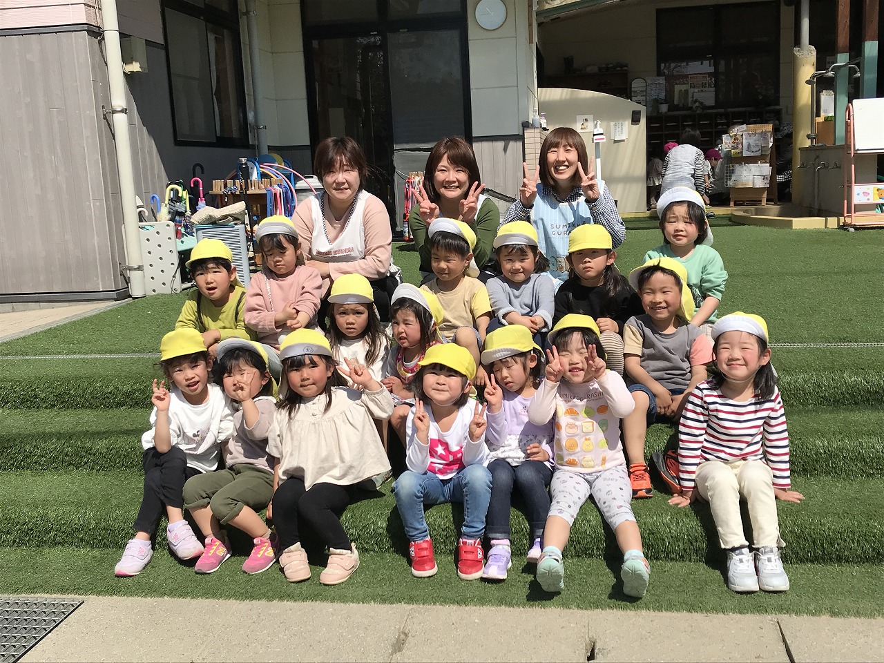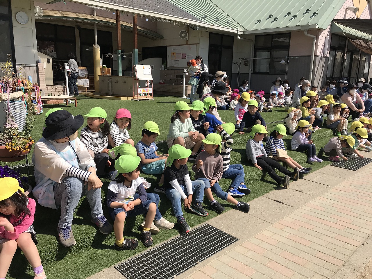 ご入園、ご進級おめでとうございます!新しい環境になり、一つお兄ちゃん、お姉ちゃんになったことにワクワクしている子どもたち。今日はみんなで青空の下で進級式を行いました。園長先生のお話を聞いたり、新しい先生たちやお友達の紹介をしてもらったり、担任の先生も誰になったかをドキドキしながら聞いていました!