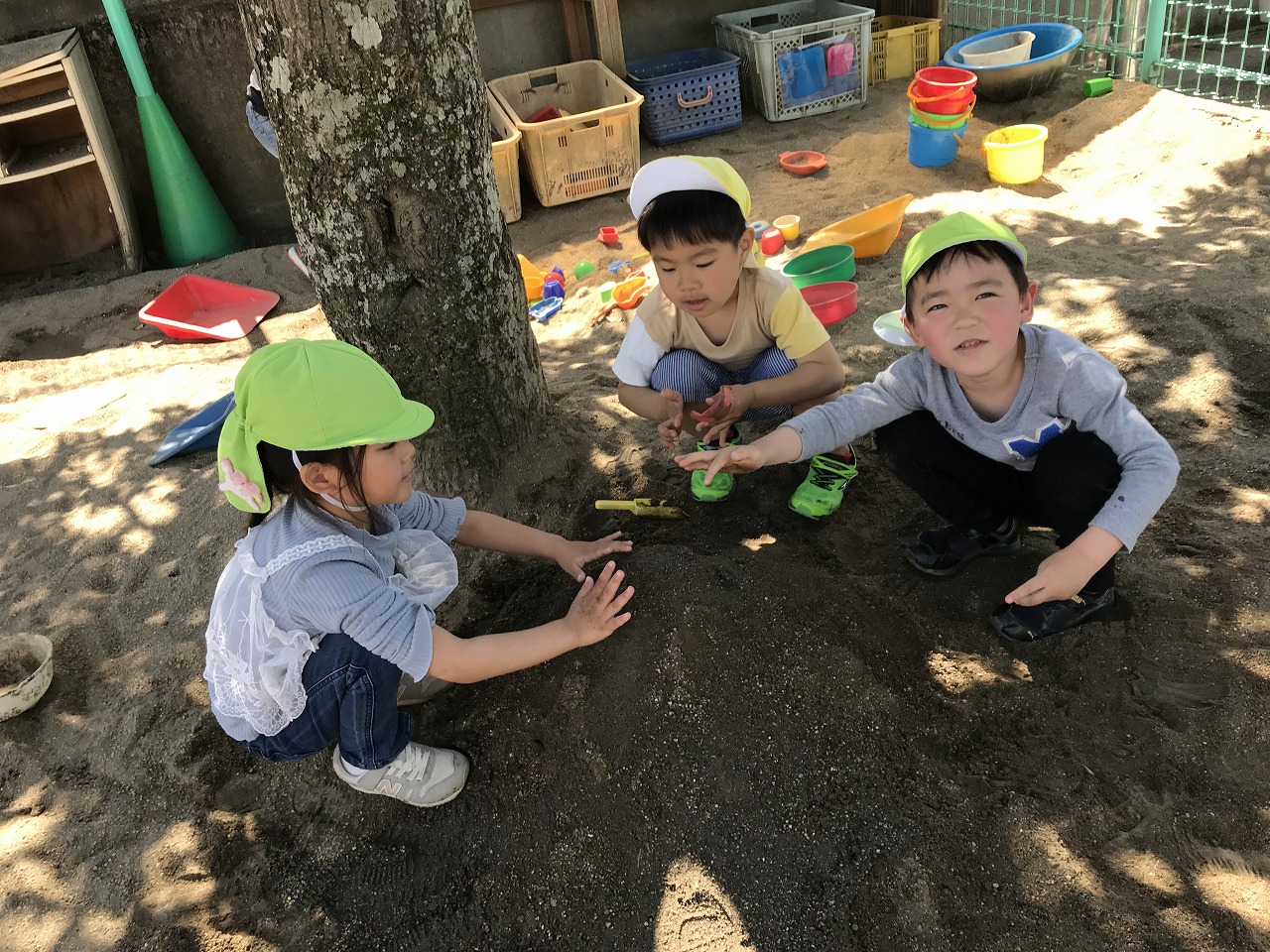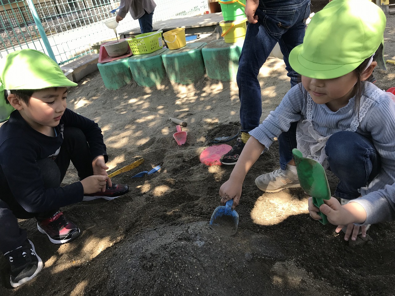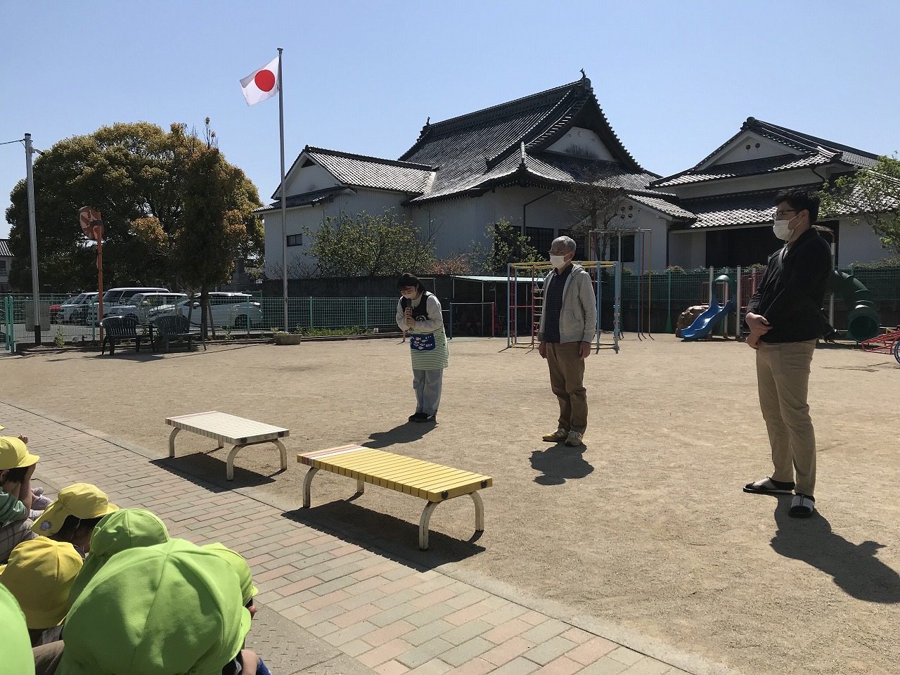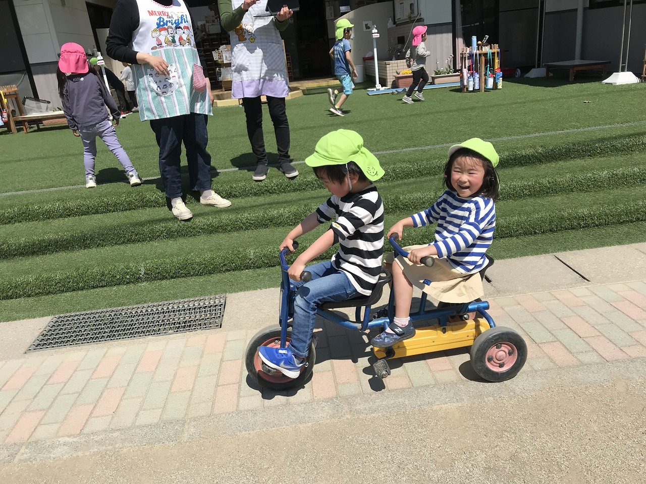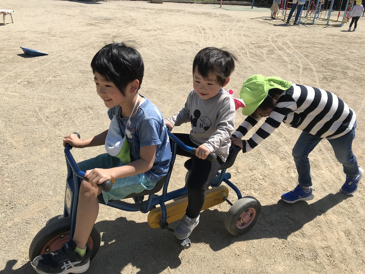 ご入園、ご進級おめでとうございます!新しい環境になり、一つお兄ちゃん、お姉ちゃんになったことにワクワクしている子どもたち。今日はみんなで青空の下で進級式を行いました。園長先生のお話を聞いたり、新しい先生たちやお友達の紹介をしてもらったり、担任の先生も誰になったかをドキドキしながら聞いていました!