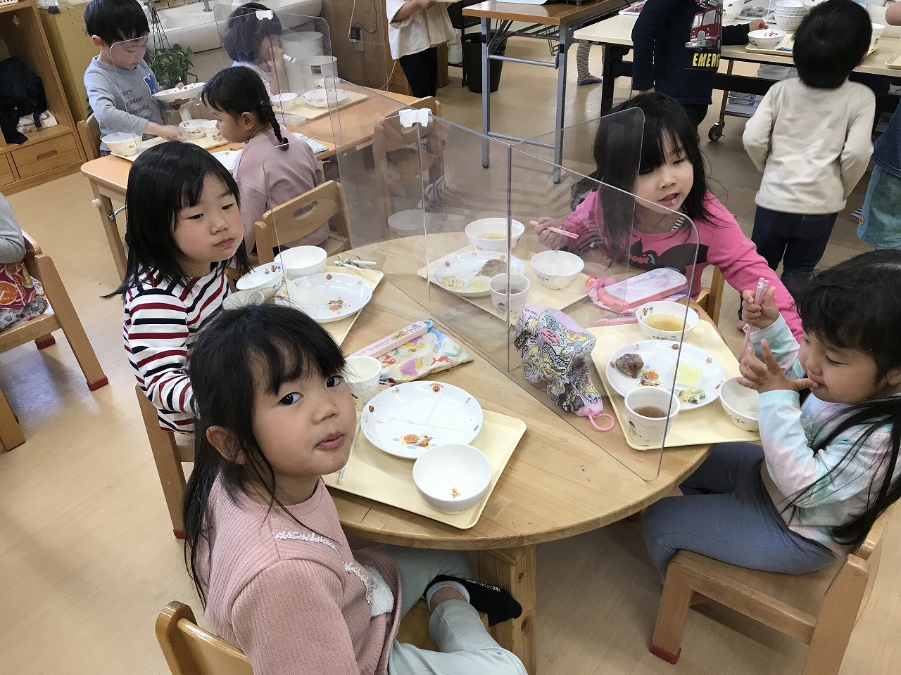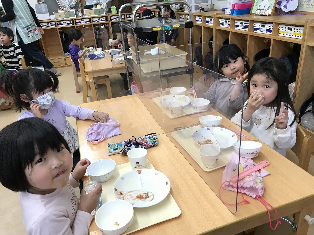 その後は以上児さん(3,4,5歳児は)それぞれ好きな遊びを楽しみました。年下の友達のお世話をしてあげていたり、異年齢での関わりもよく見られました★食事ではお部屋を広げランチルームとして好きなお友達との食事を楽しんでいました。新しい1年にワクワクがいっぱいです。沢山の楽しい!や不思議だな?をたくさん子どもたちと見つけていきながら、楽しく過ごしていきたいと思います。