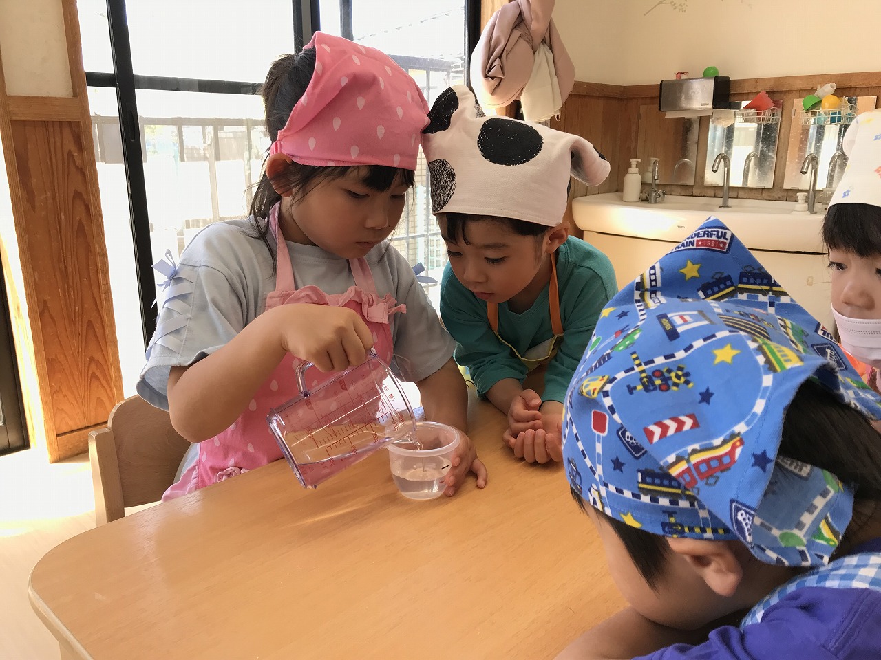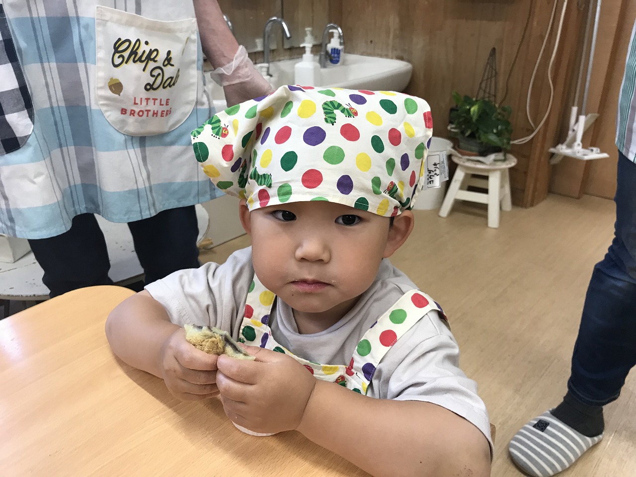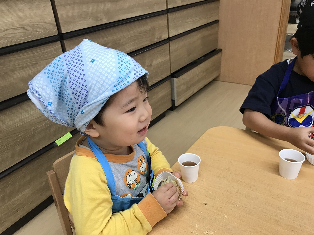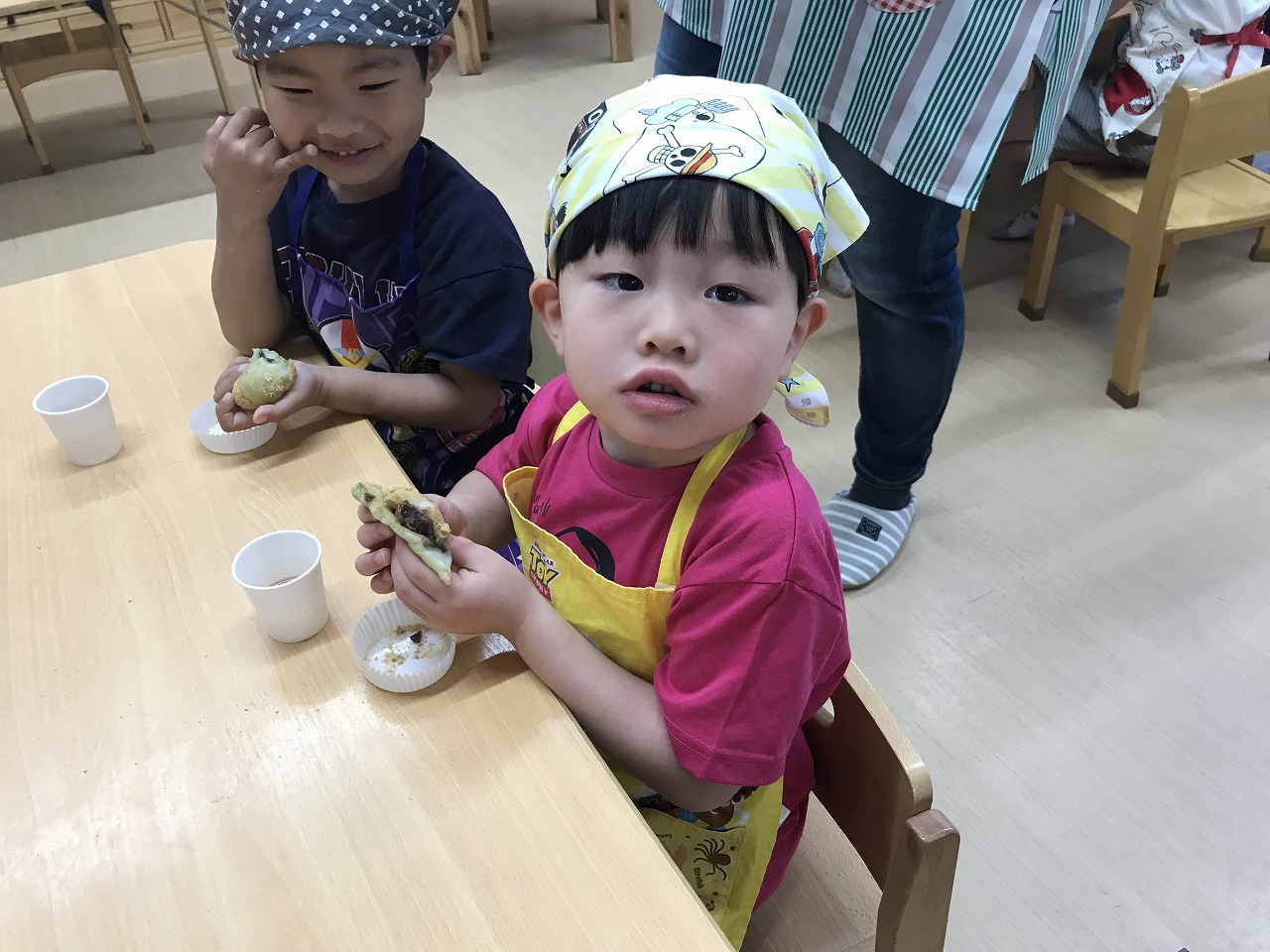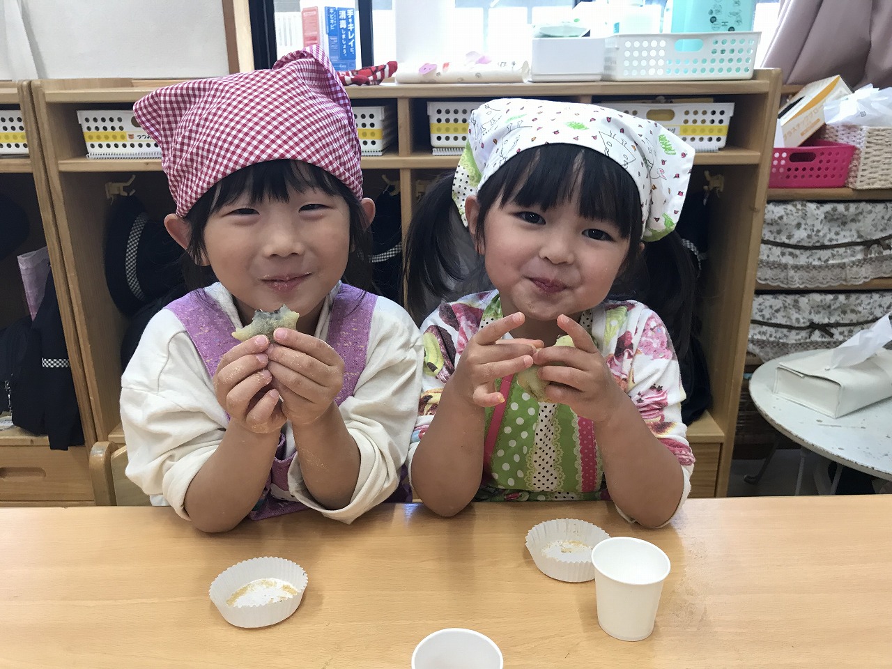 クッキングは異年齢児(3歳じ、4歳児、5歳児)のグループで行いました。