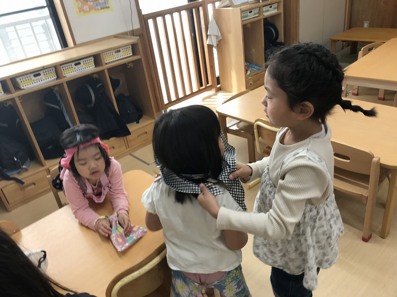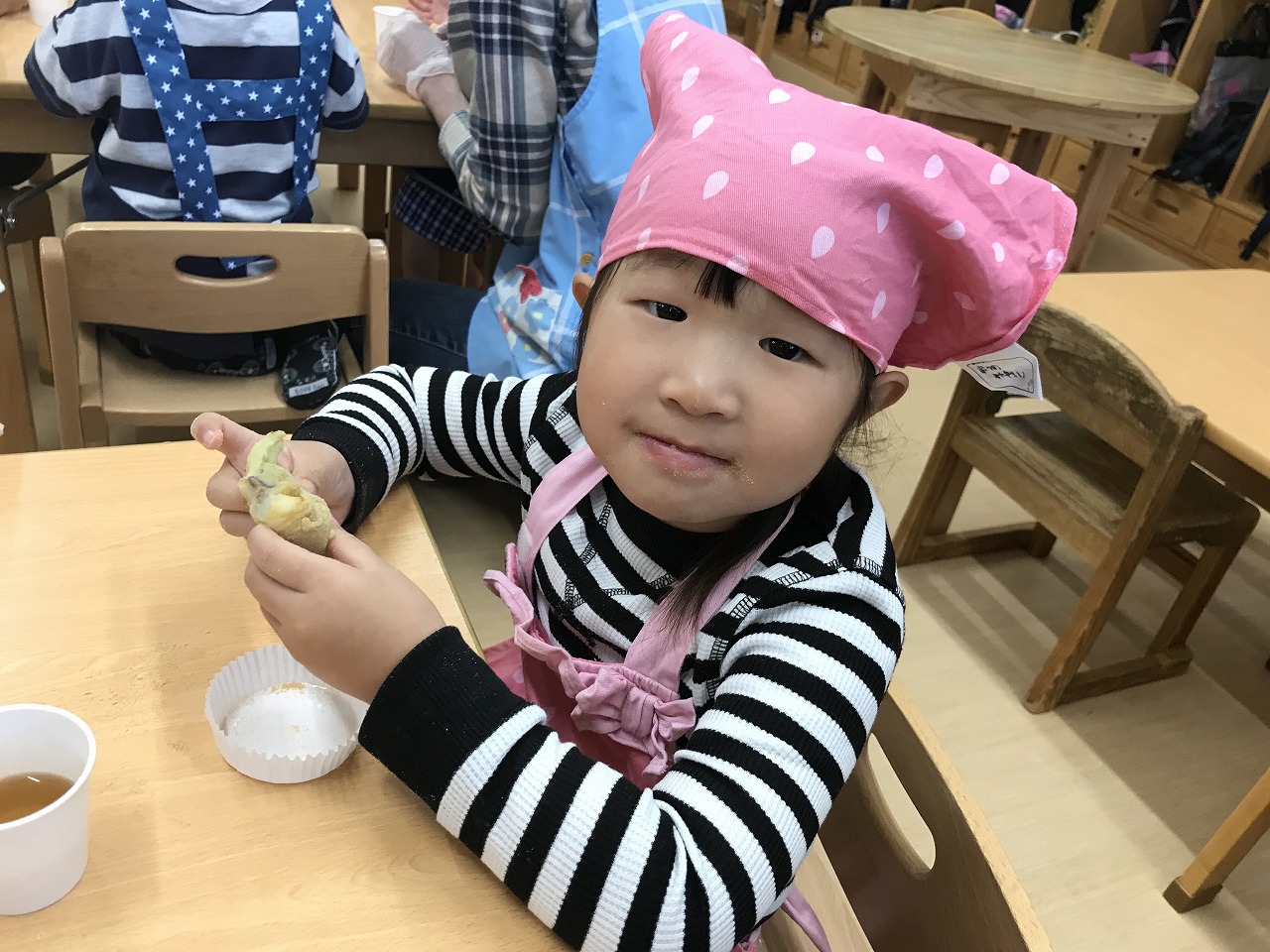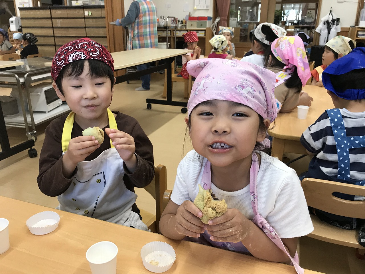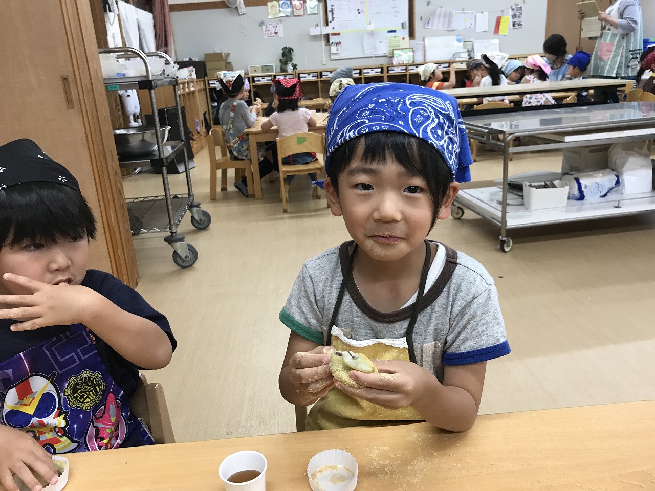 クッキングは異年齢児(3歳じ、4歳児、5歳児)のグループで行いました。
