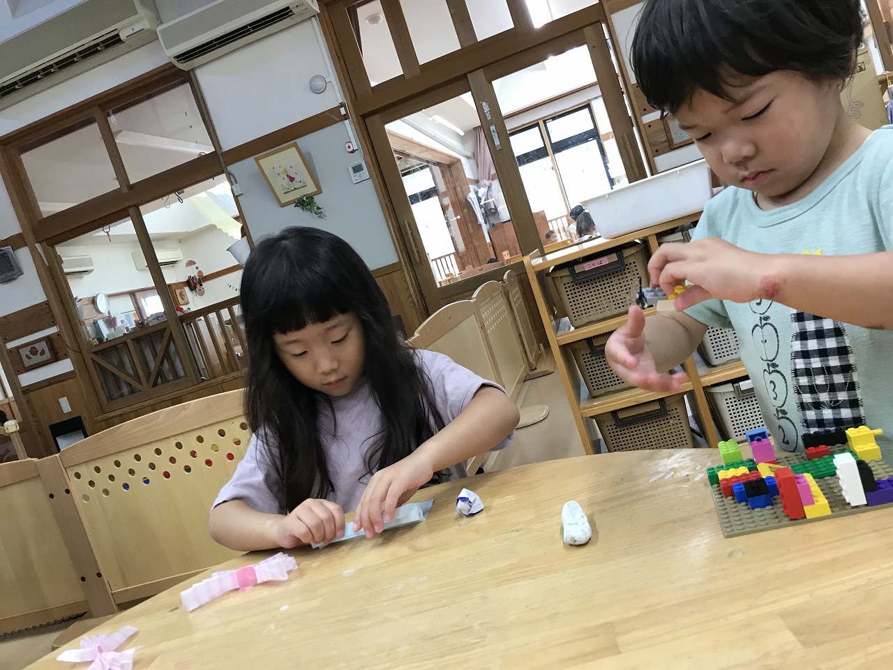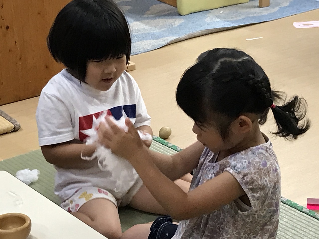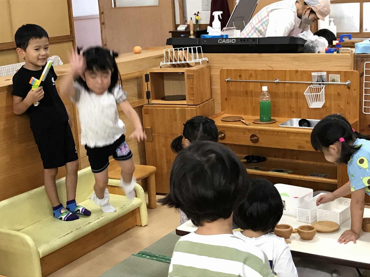 友達がしてる遊びを見ながら意欲的に参加したり、一人で夢中になって活動に参加する子と様々です。