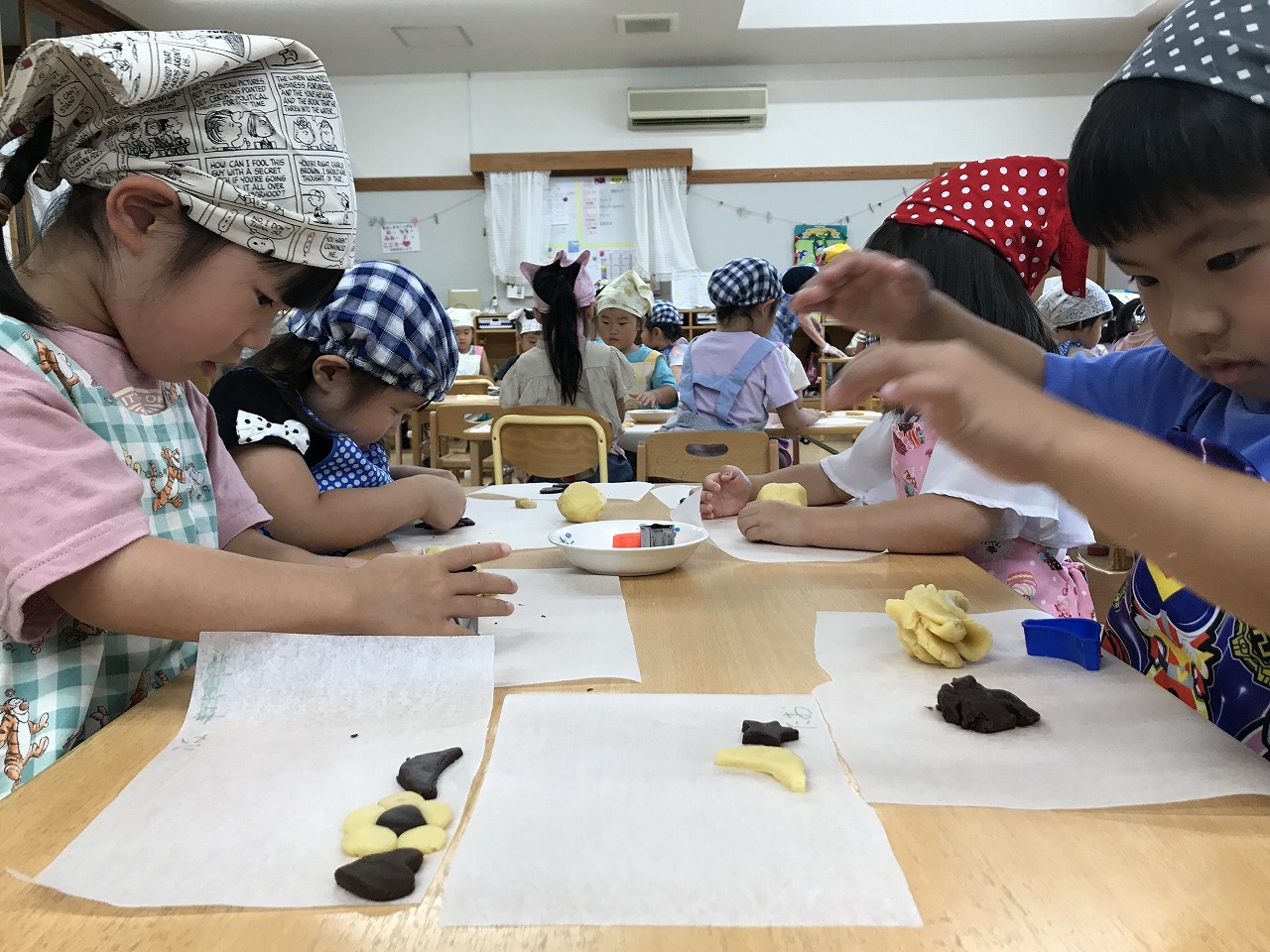 「お母さんはこの形が好き!」 「これは妹にあげる」 「これは家族みんなの顔!」等、一人ひとりが大好きな家族を思いながら作っていました。焼きあがり、持って帰ってプレゼントする事を楽しみにしています。きっと喜んでもらえるでしょうね!明日、こども達がどんなお話をしてくれるか楽しみです。