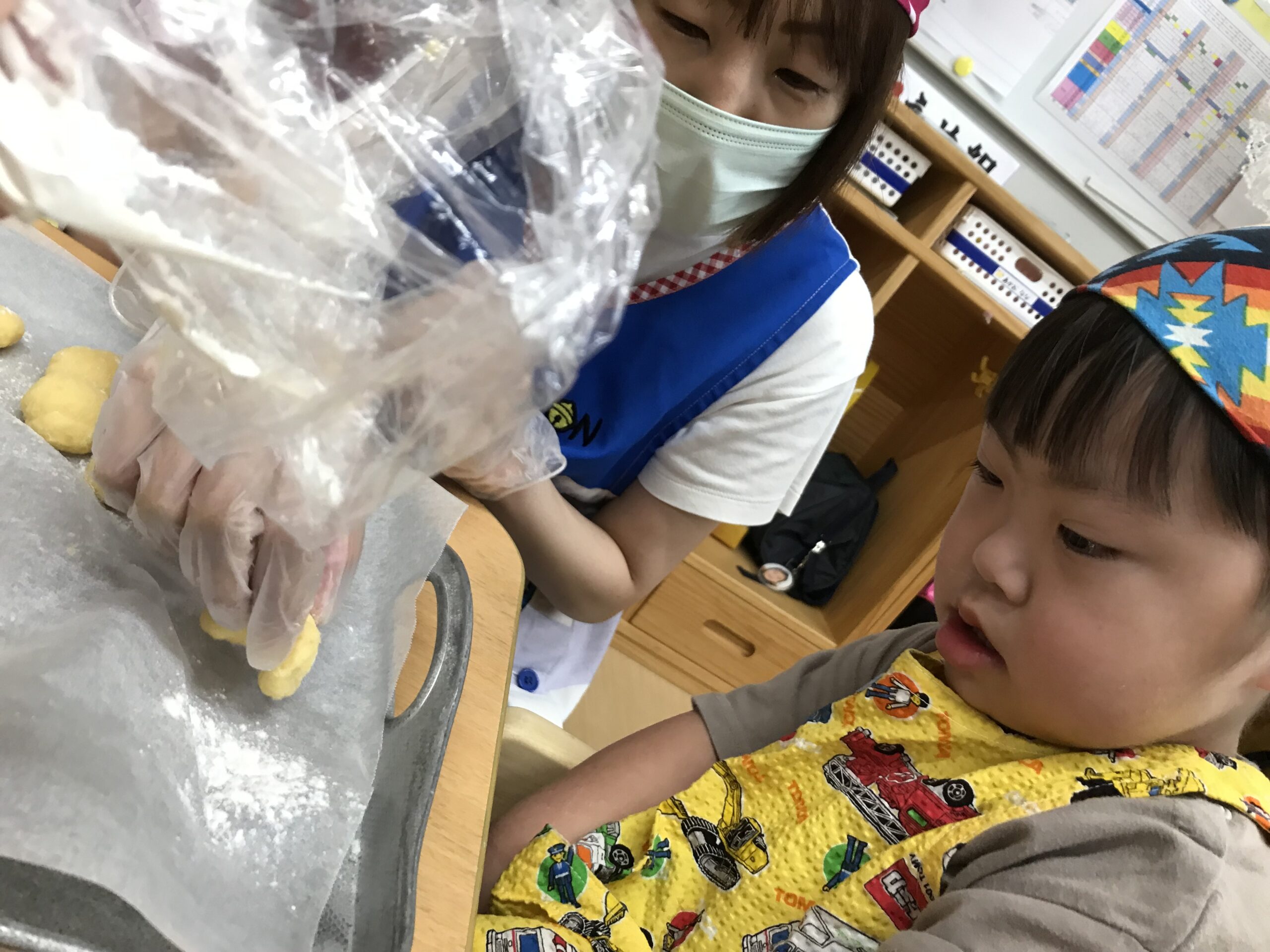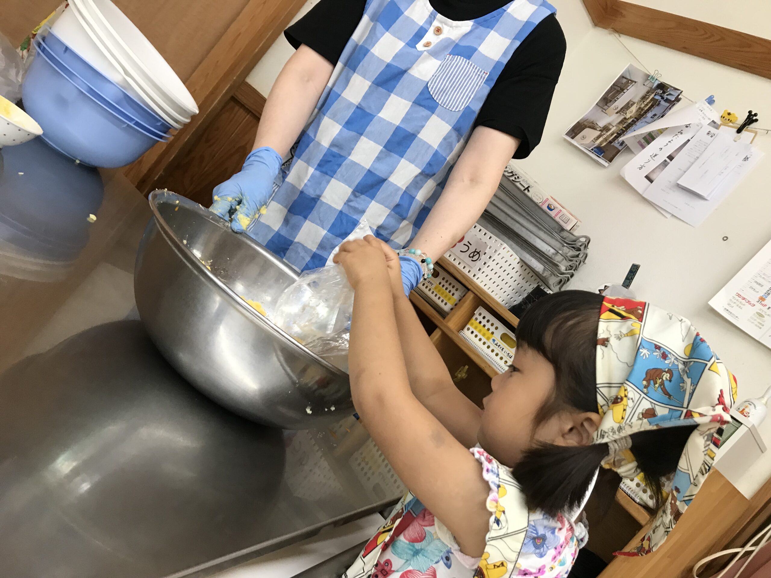 今日は子ども達が楽しみにしていたクッキングの日です♪「エプロン持ってきたよ!」とみんな楽しみにしているようです!