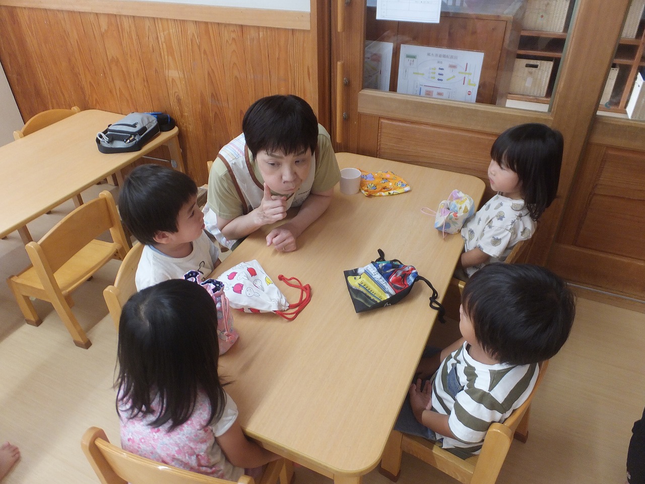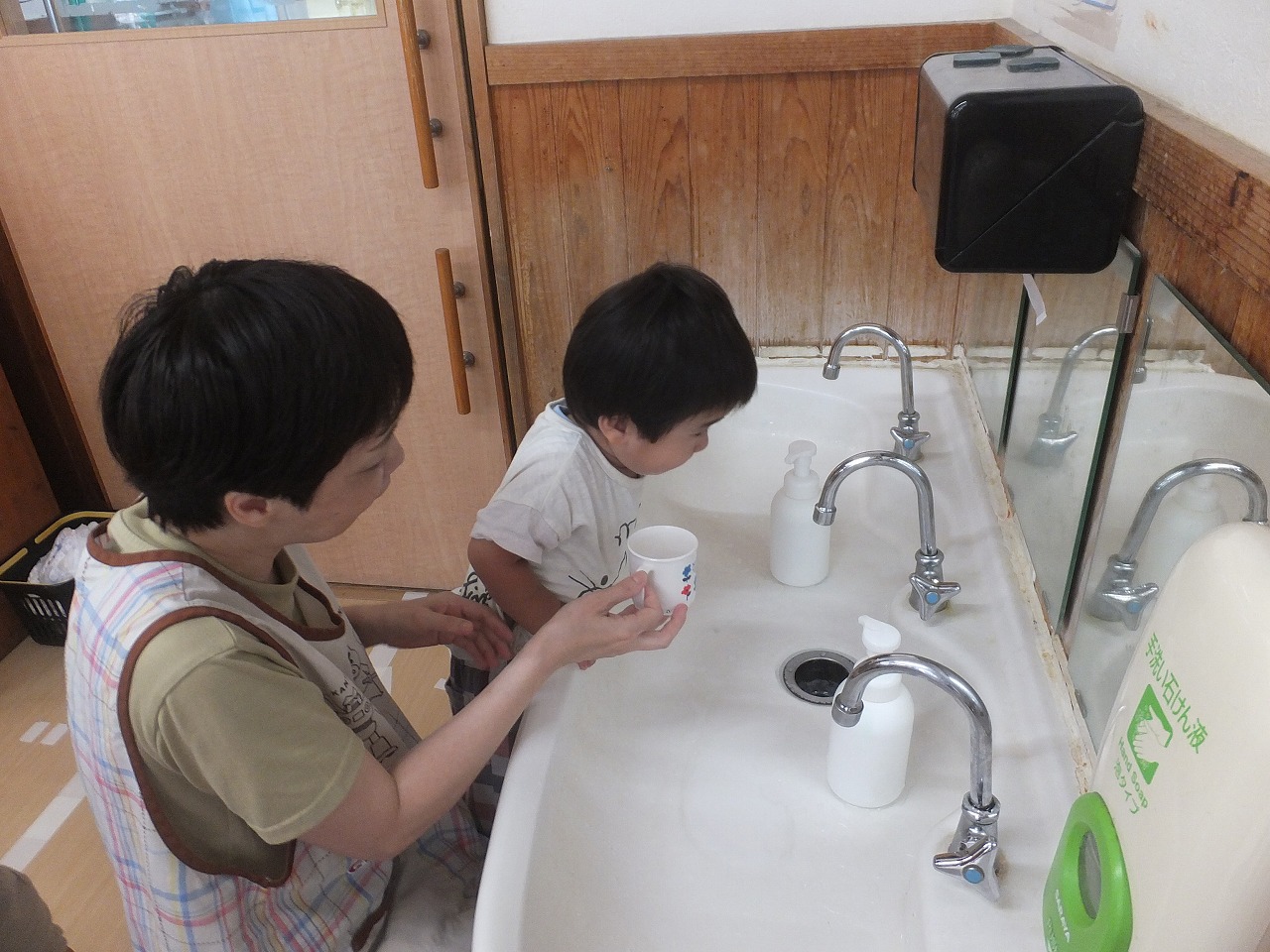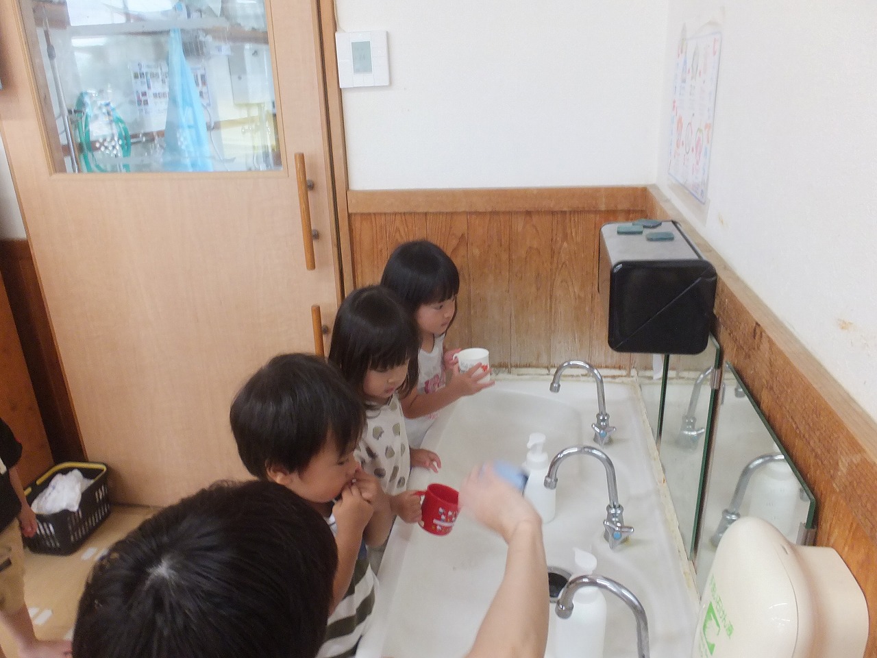 2023年7月19日 2023・7・19 うがい指導③ たんぽぽ組 本日、うがい指導の三回目がありました。少し緊張していた4人でしたがエアーブクブクをしていくうちに楽しくなってきて大きな口を開けたり、閉じたり上を向いたりしてうがいの練習が上手に出来ていました。ぜひおうちでもたくさん練習してみて下さい。 Follow me! FacebookXBlueskyHatenaPocketCopy