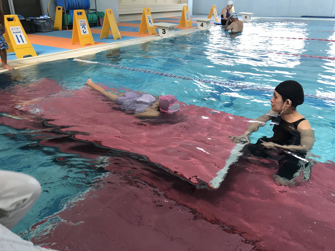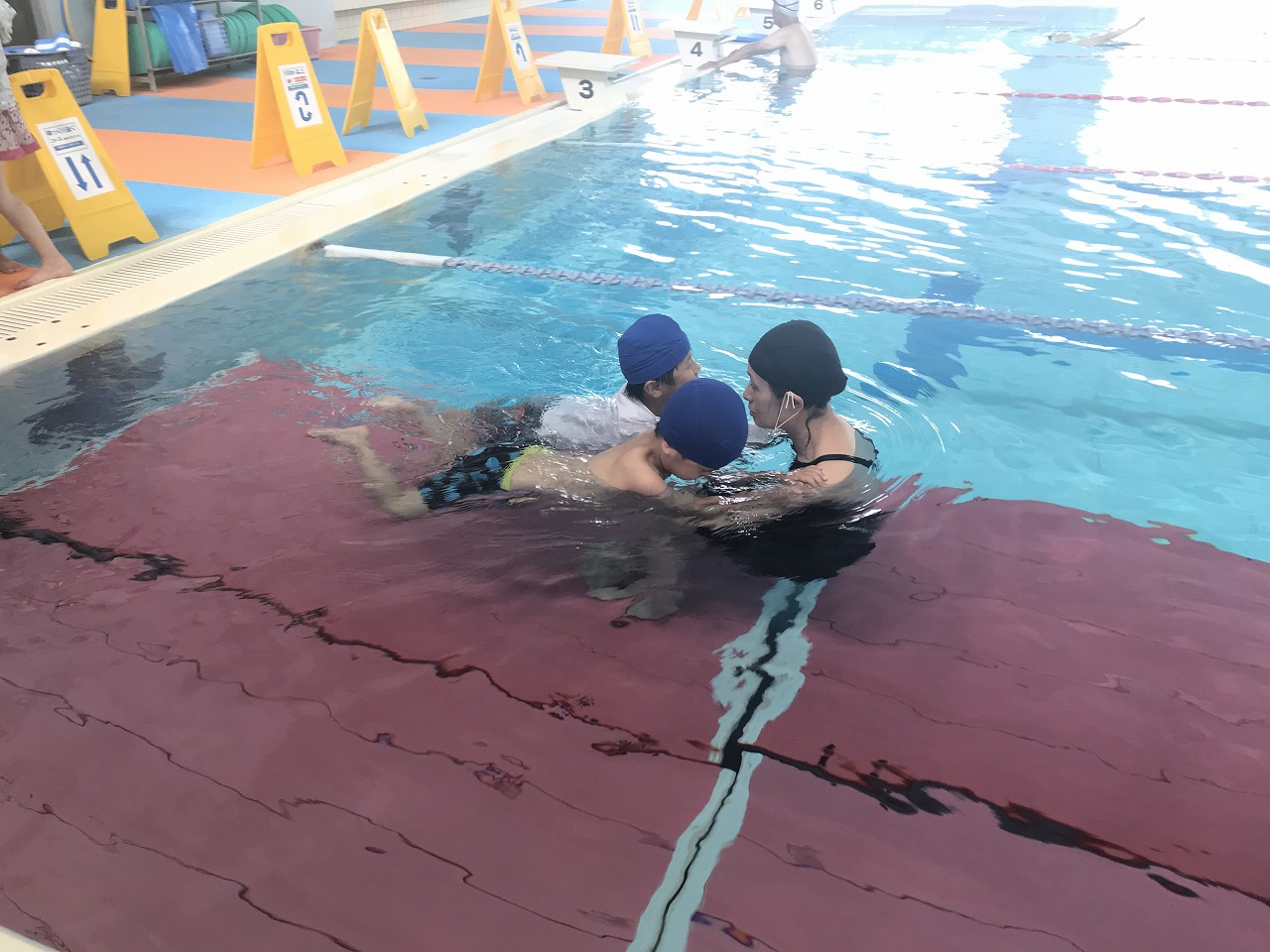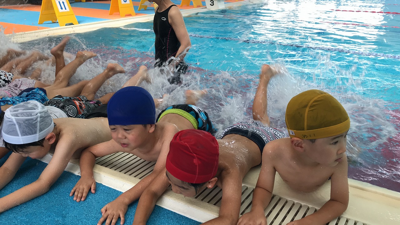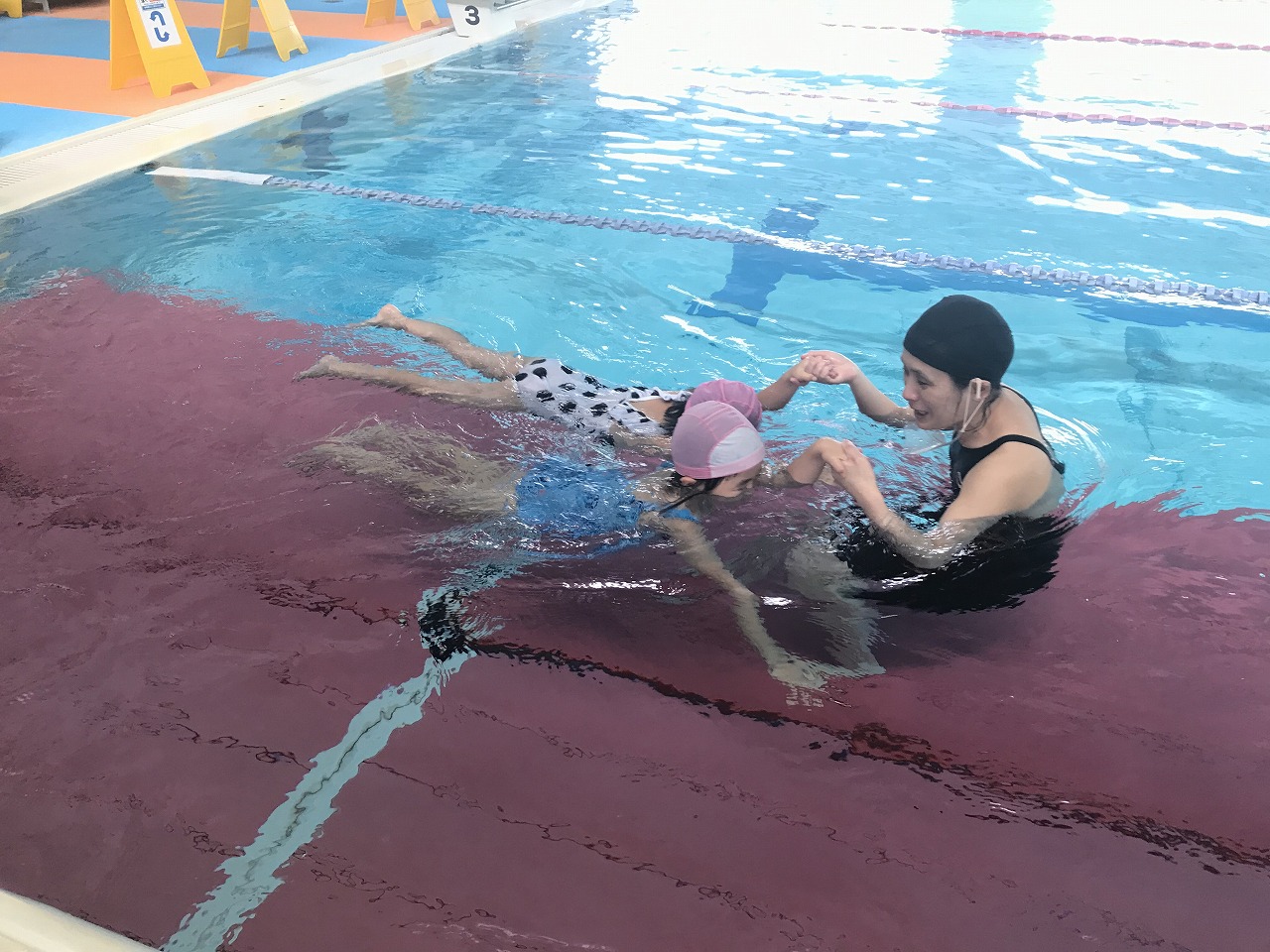 もも組(5歳児)さんはスイミングに行ってきました!月に一回のスイミングをとっても楽しみにしている子ども達です。コーチのお話を聞いて早速プールに入ります。こども園のプールよりも深いですが、へっちゃらで潜ったり、泳いだり、楽しみながら取り組むことができました。今日はワニさん歩きをしてみました。その中で顔をつけてワニさん歩きをすることにも挑戦したり、コーチに手を持ってもらって、スイ~っと足を伸ばして泳いだりしました。日頃のプールで元気いっぱい泳いでるおかげか、顔をつけれるようになった子も増えてきました☆