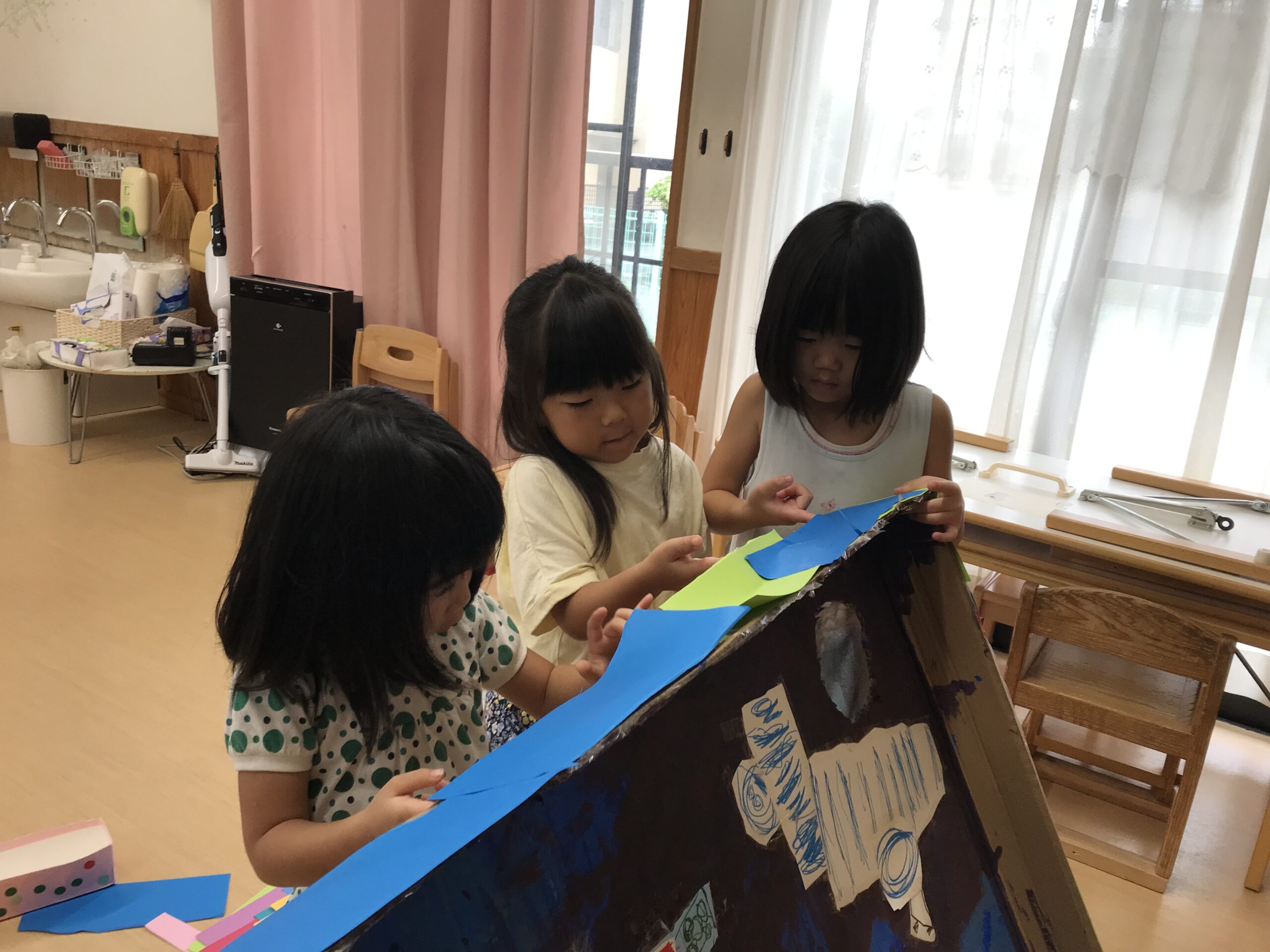 完成が近づいて来て「早くおまつりしたいね」と子どもたちの楽しみにしている声も聞こえてきました。