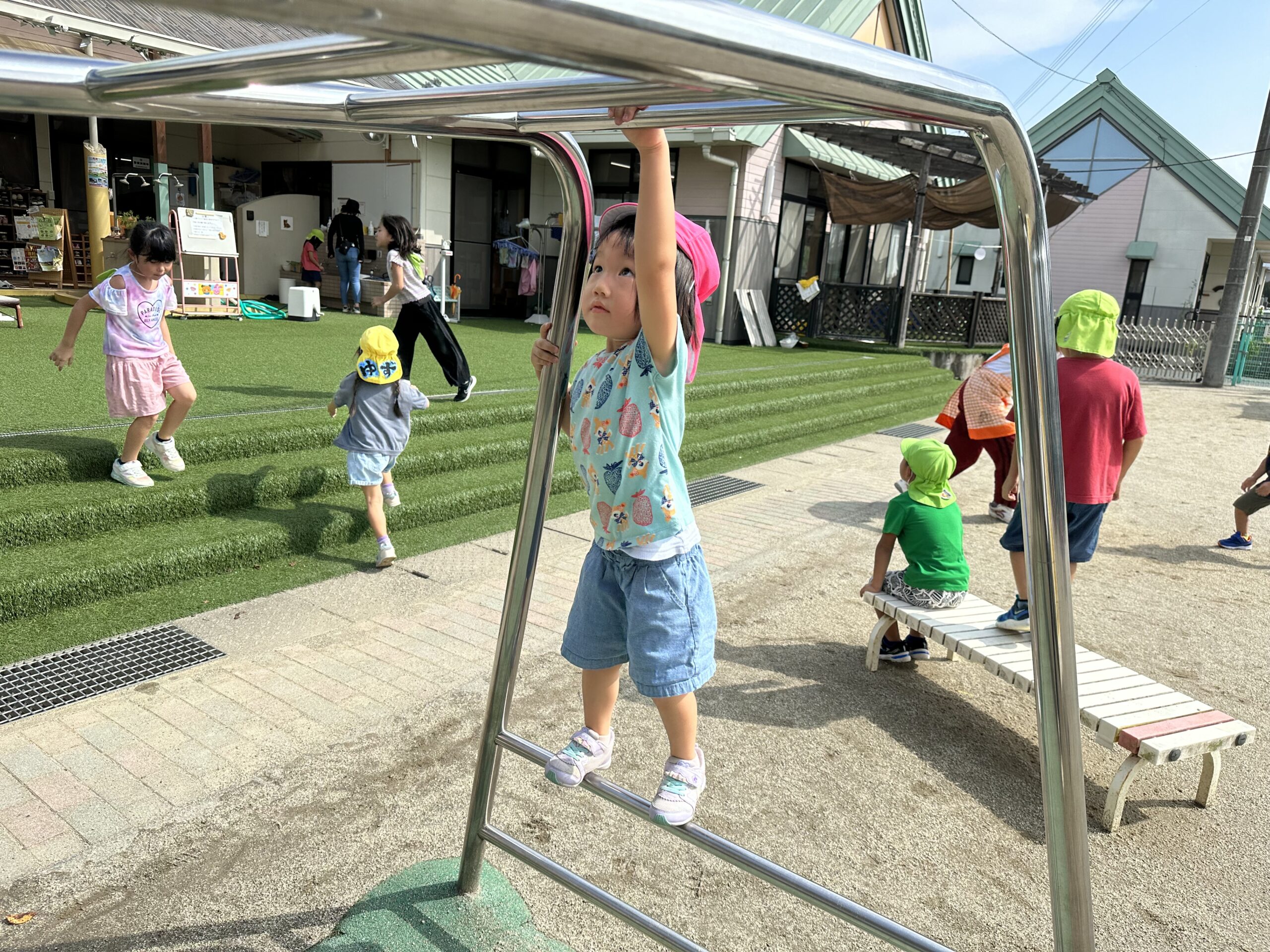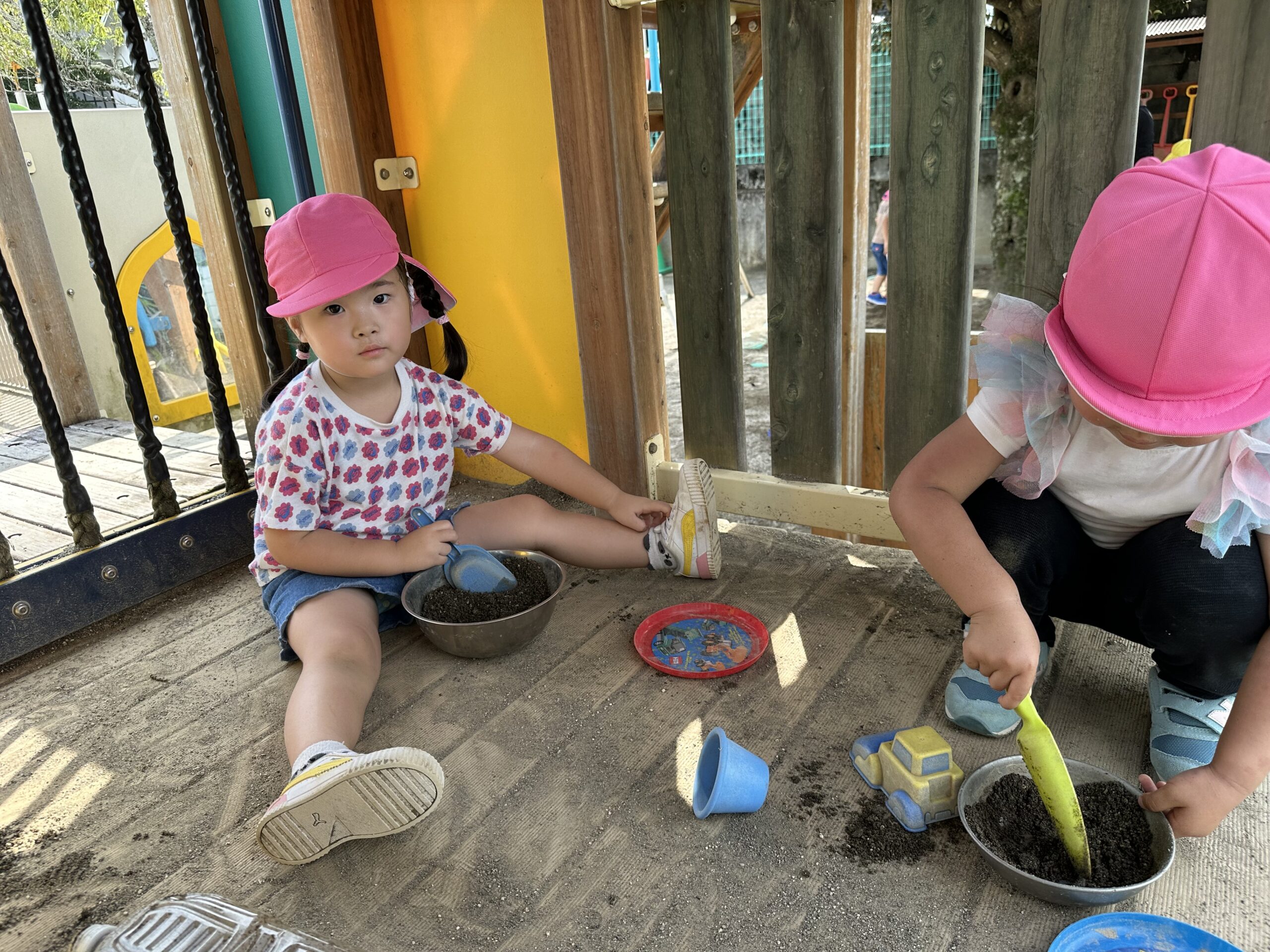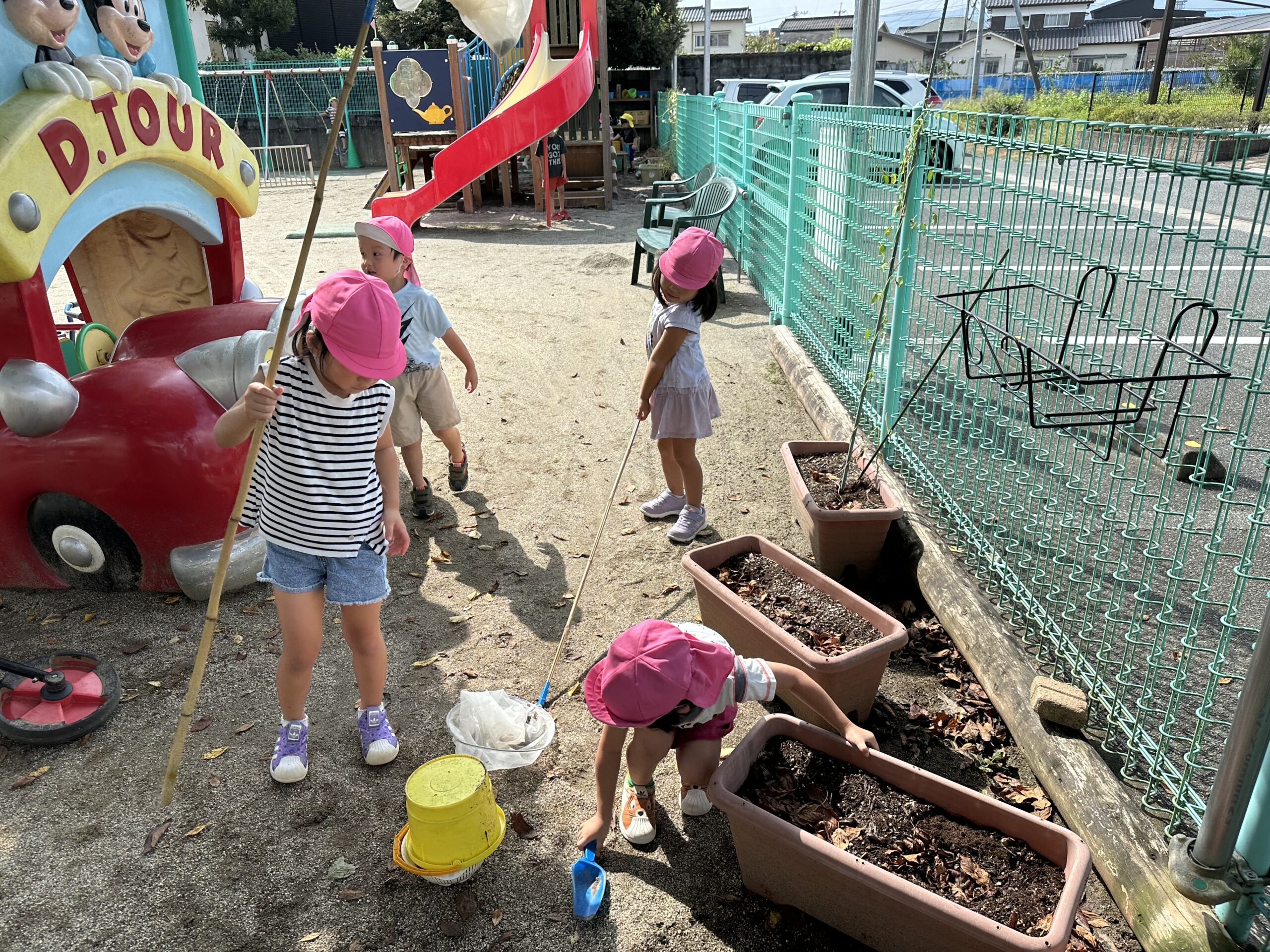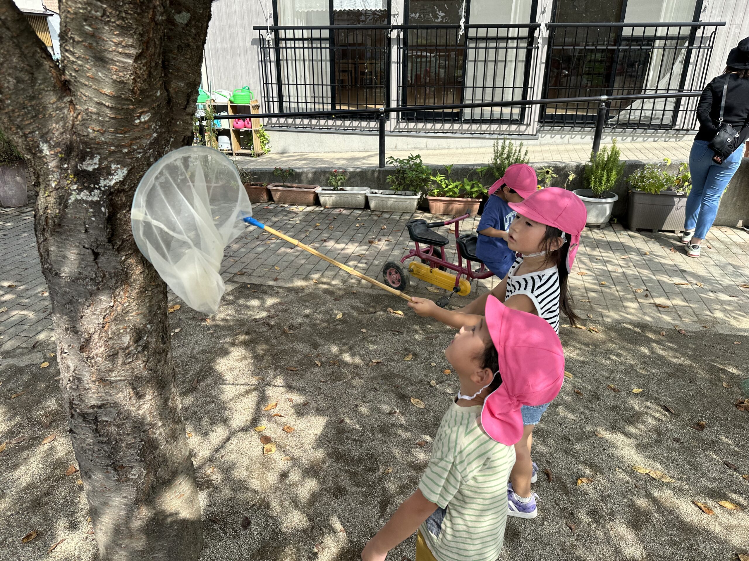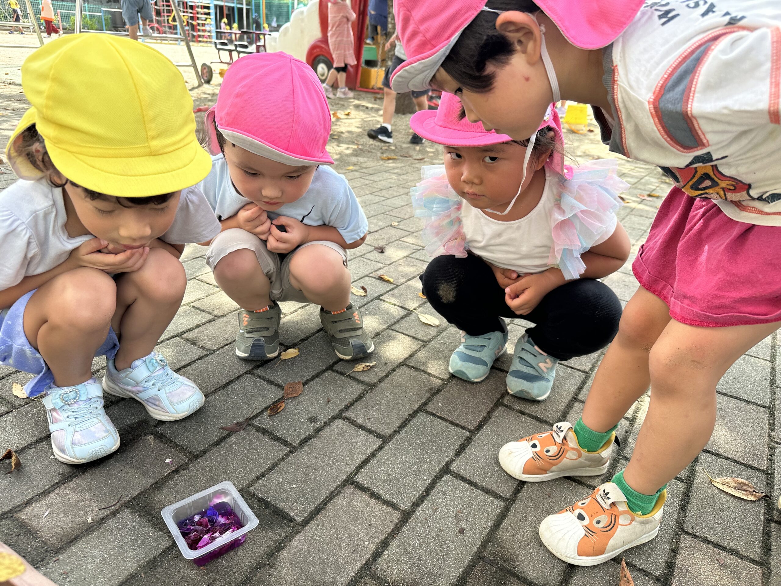 「〇〇ちゃん(くん)一緒に虫を探そう」と誘い合って遊ぶこともあれば、お友だちの楽しい声につられて遊びがどんどんと広がっていくこともあります。