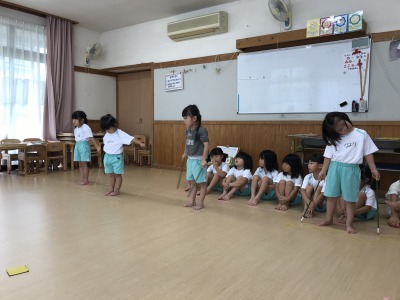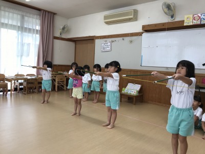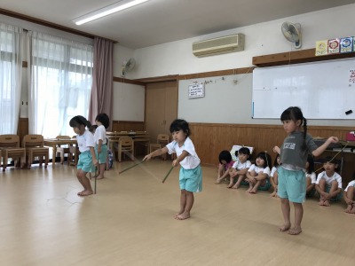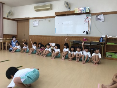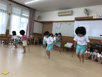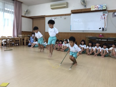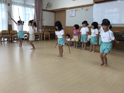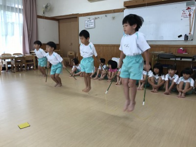 最後は「10回跳んでみたい人?」の問いに「はーい」とたくさん手が挙がり諦めずに挑戦してみようと頑張る姿が見られました。