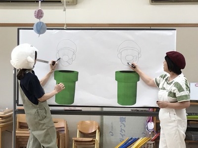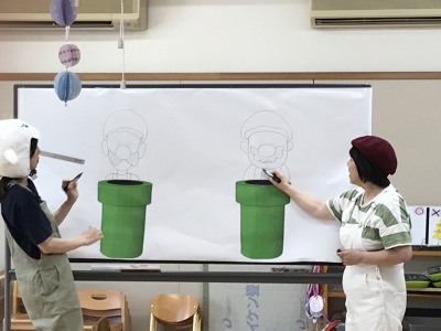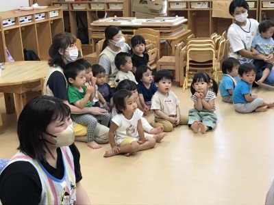 また、先生が絵描きさんになり絵描き歌もありましたが、完成するのを夢中で見ていた子ども達です。