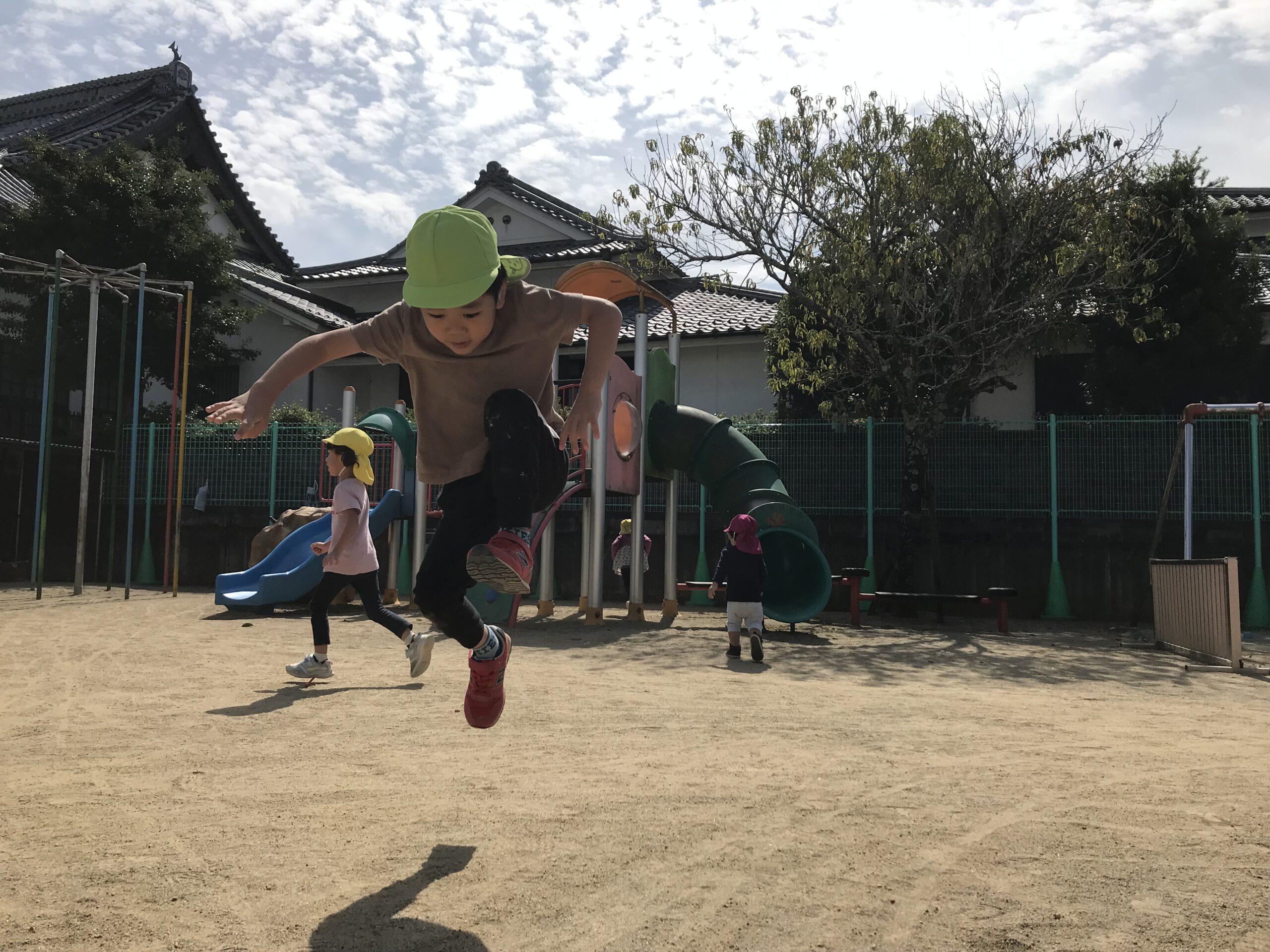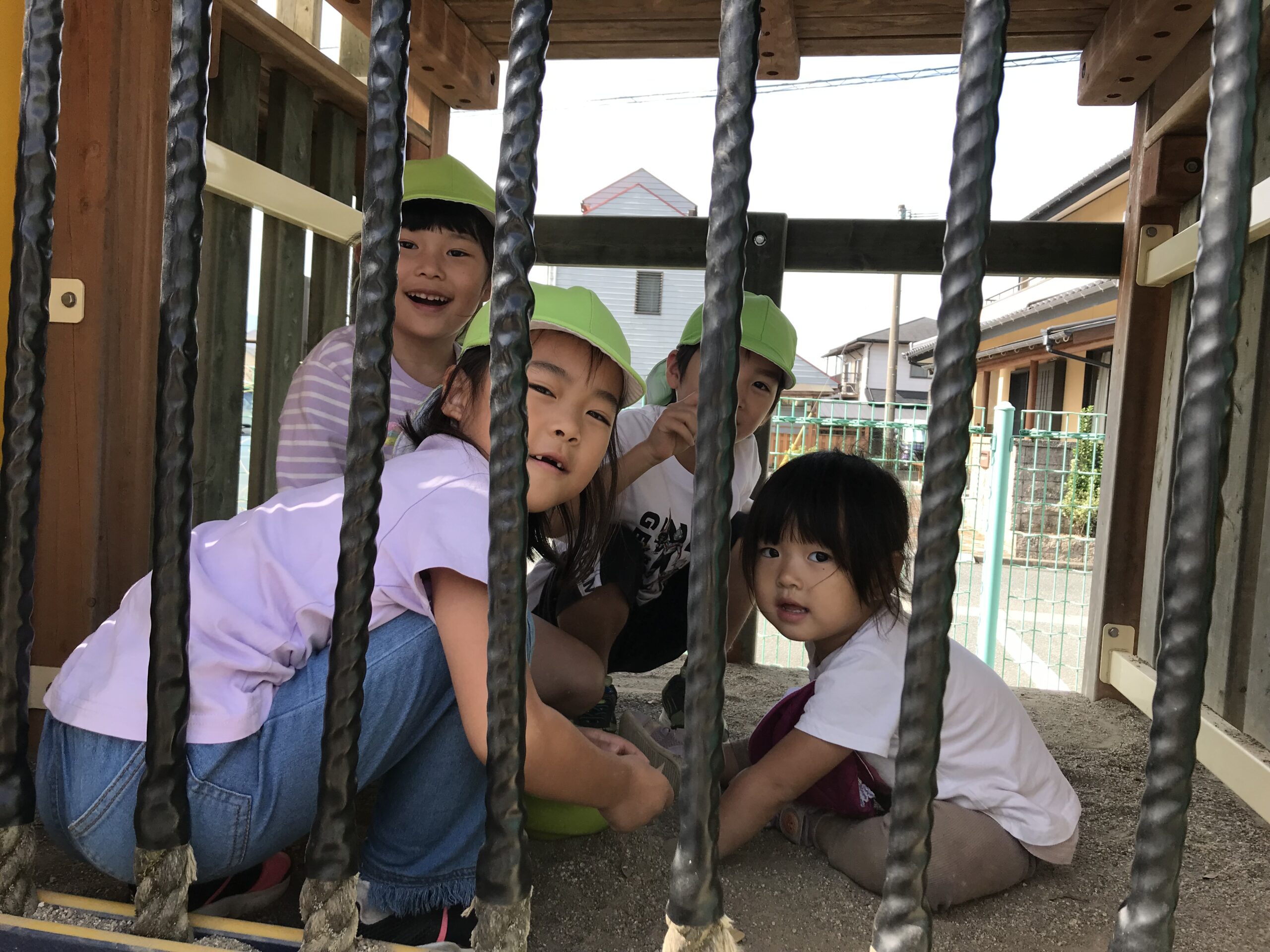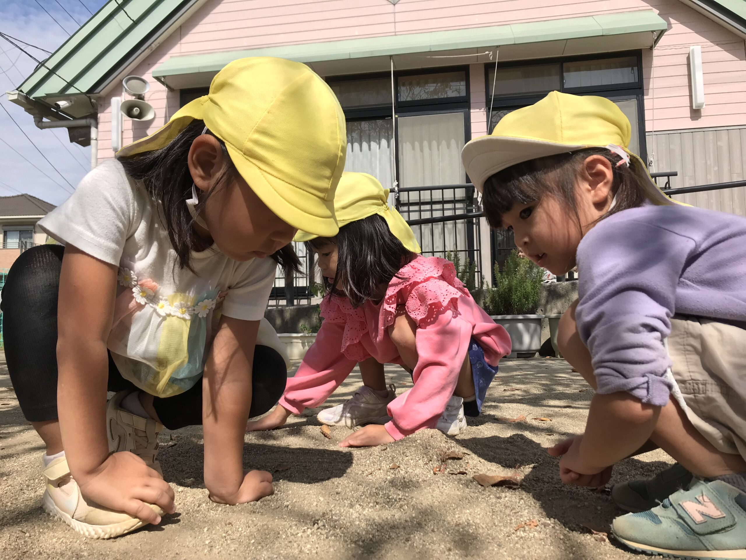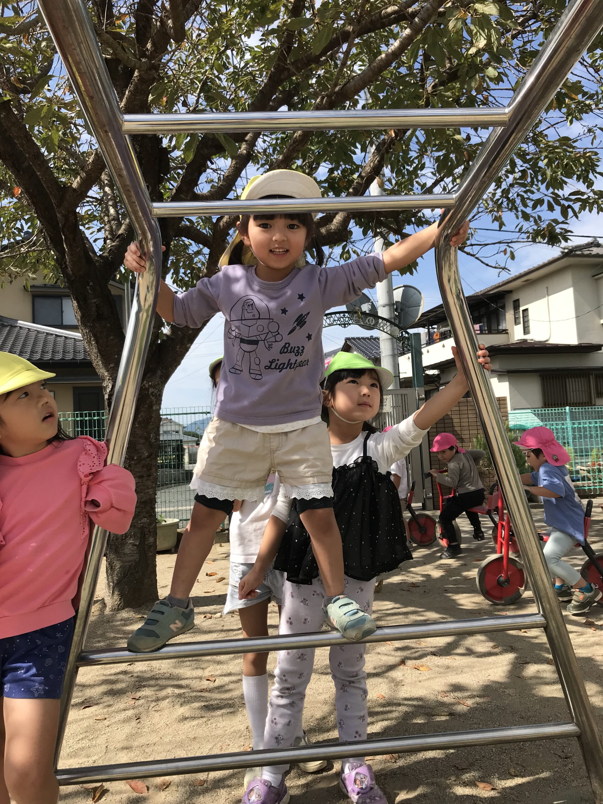 練習が終わると戸外遊び!お外で遊ぶことが大好きな子ども達は、追いかけっこで思い切り走ったり、秋の自然を見つけたりと戸外遊びを満喫していました。気持ちのいい風が吹き「先生!風が涼しくて気持ちいいね」と季節の移り変わりを肌で感じることができました。