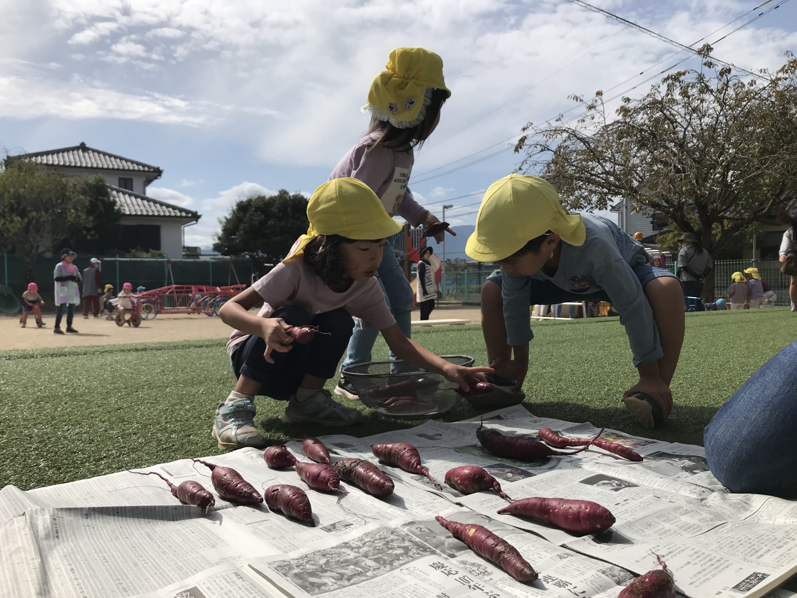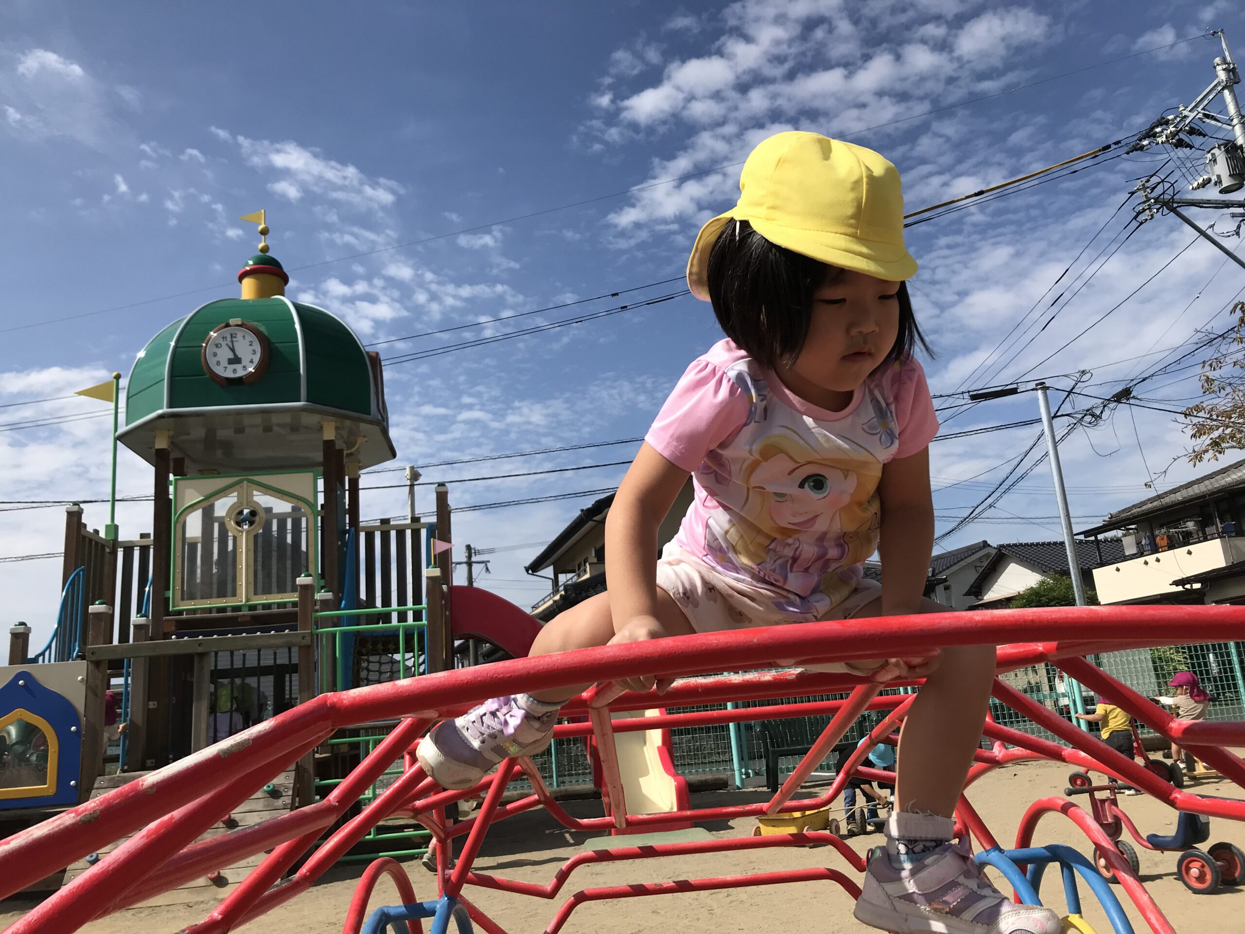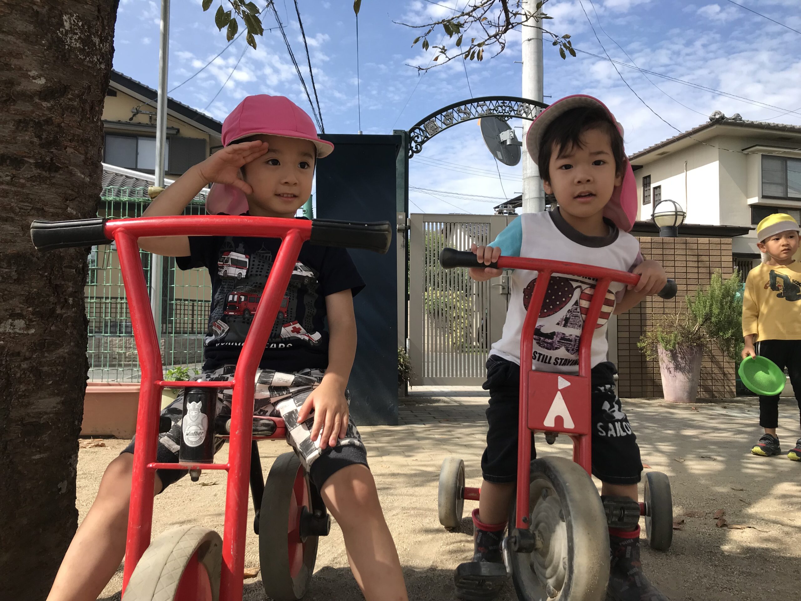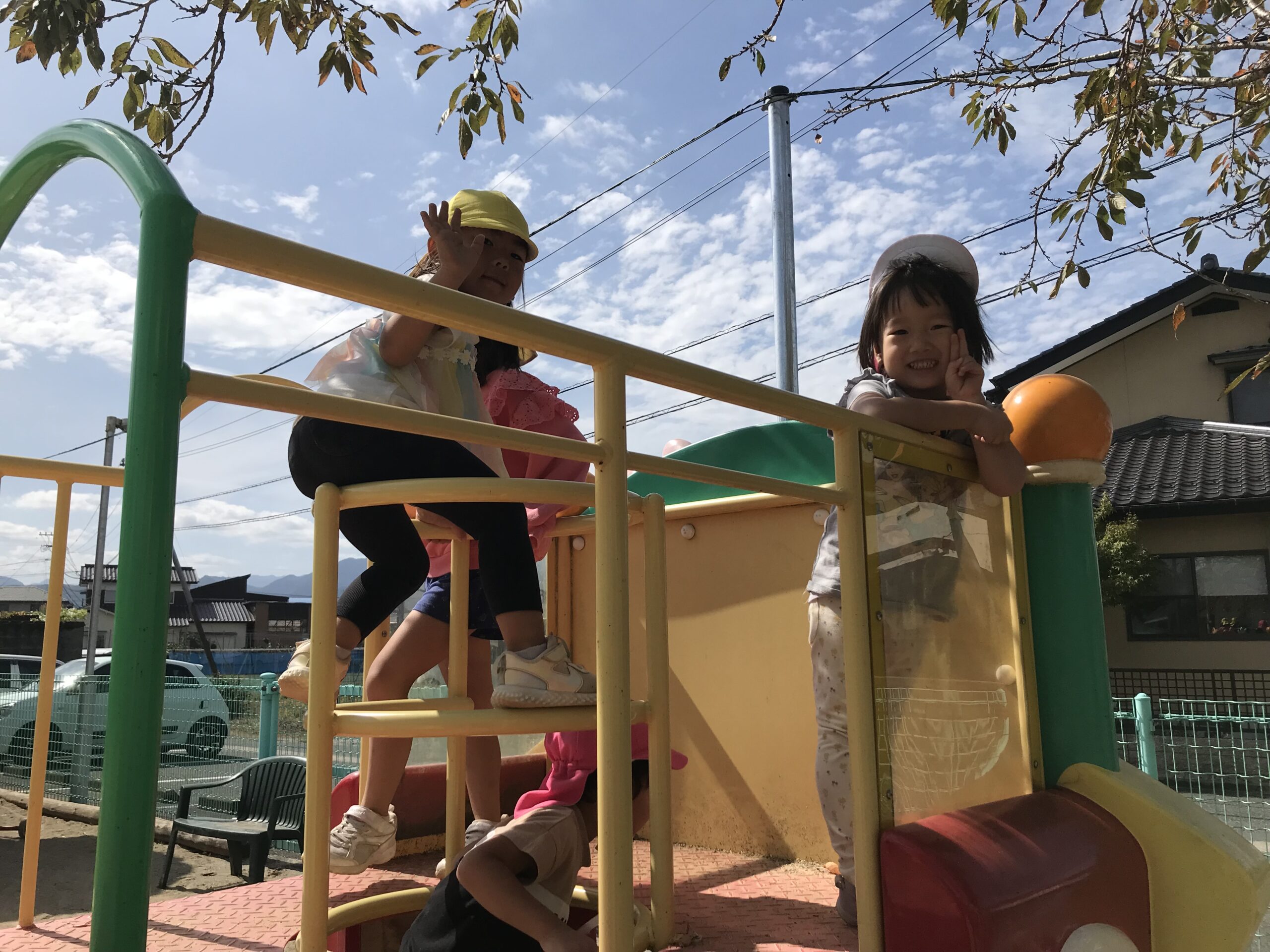 練習が終わると戸外遊び!お外で遊ぶことが大好きな子ども達は、追いかけっこで思い切り走ったり、秋の自然を見つけたりと戸外遊びを満喫していました。気持ちのいい風が吹き「先生!風が涼しくて気持ちいいね」と季節の移り変わりを肌で感じることができました。