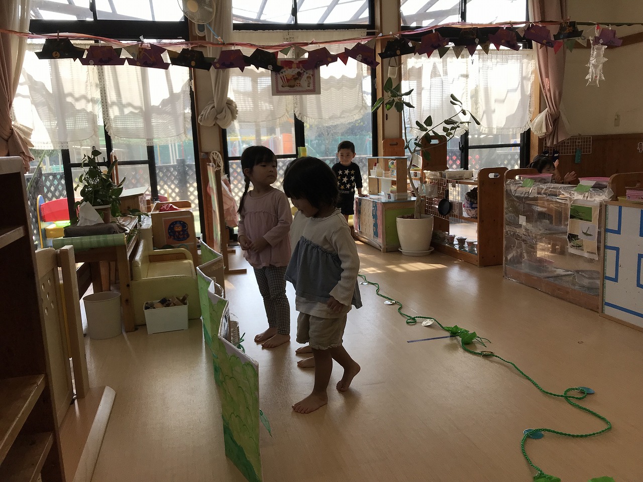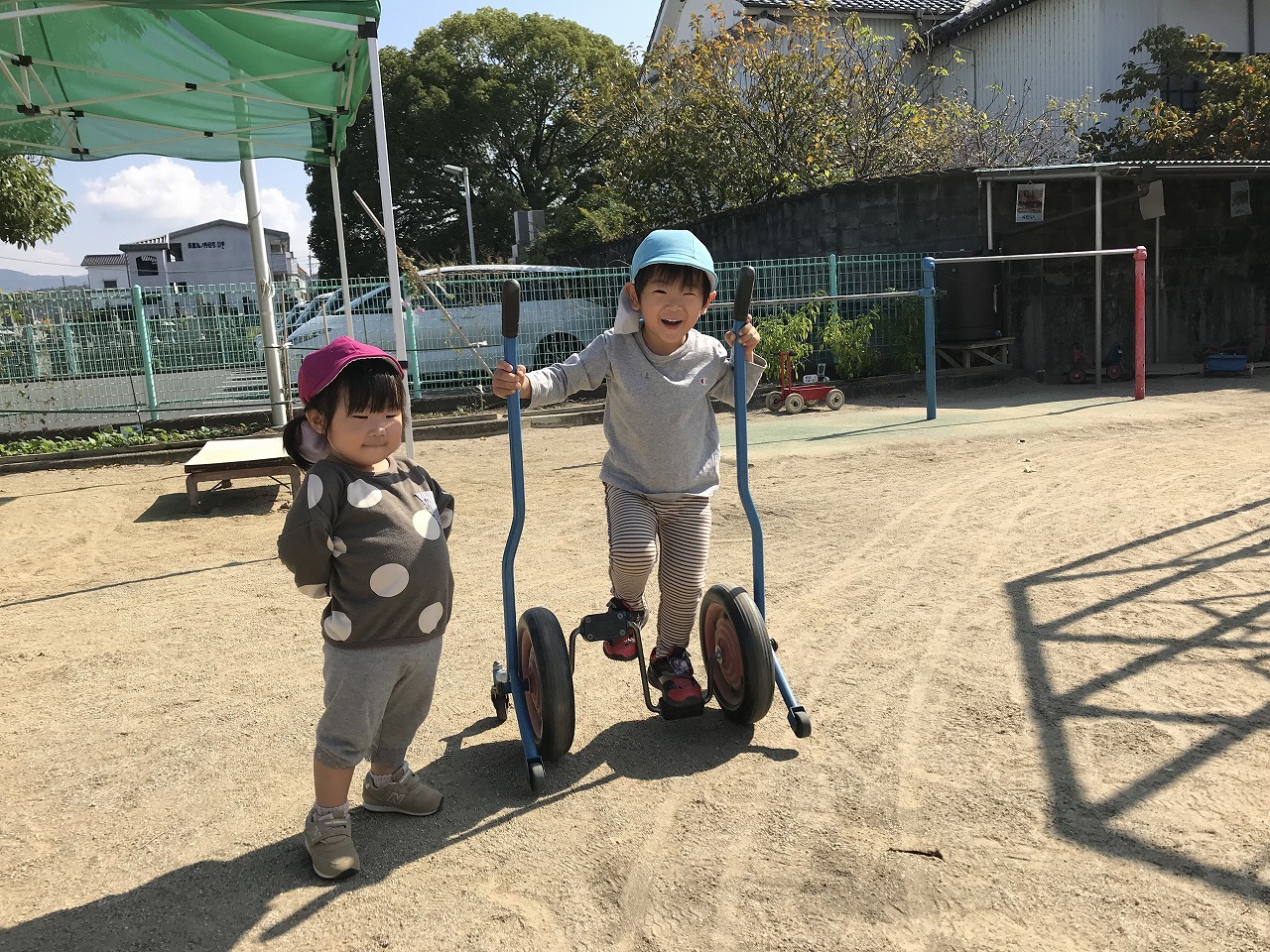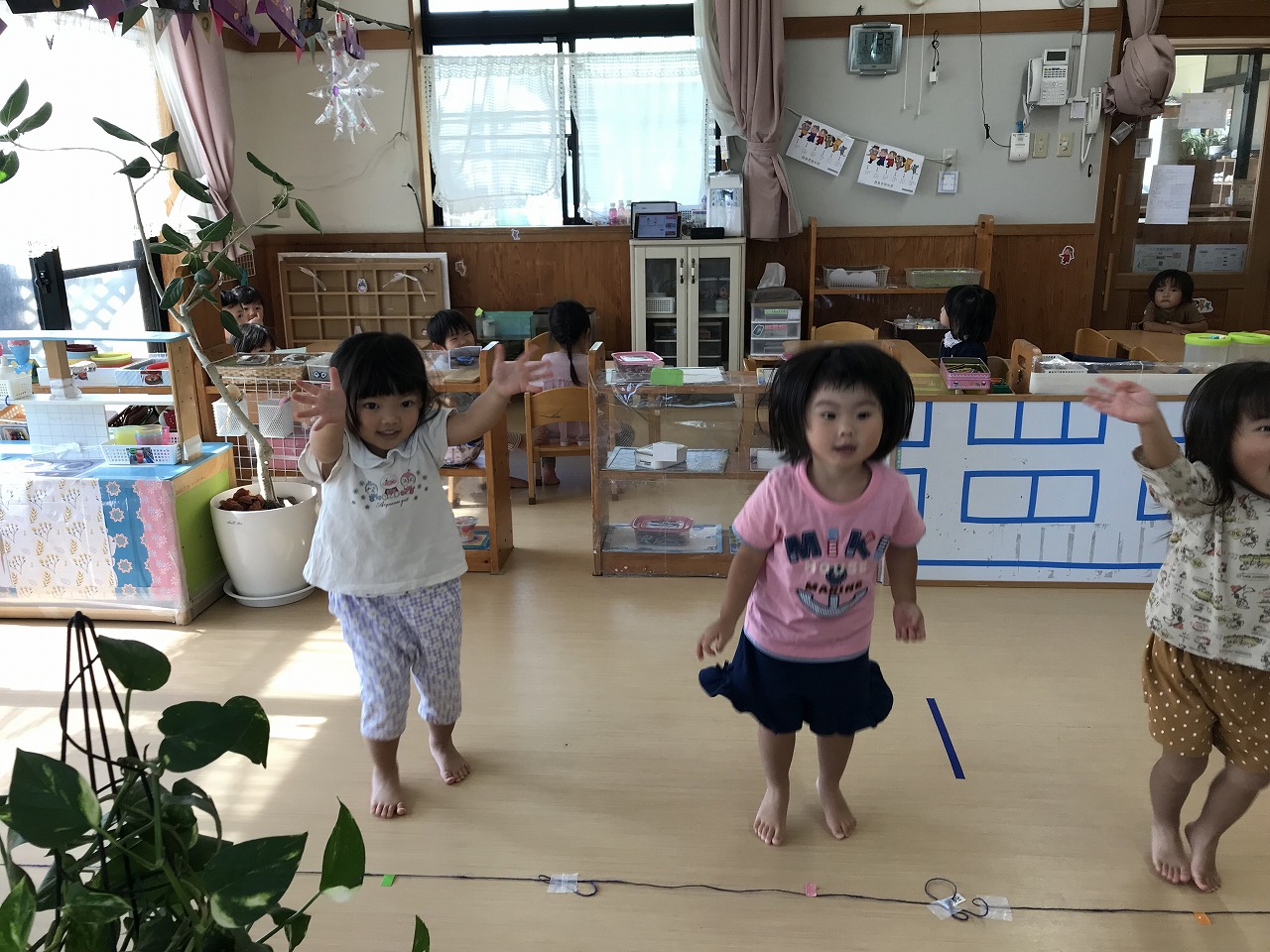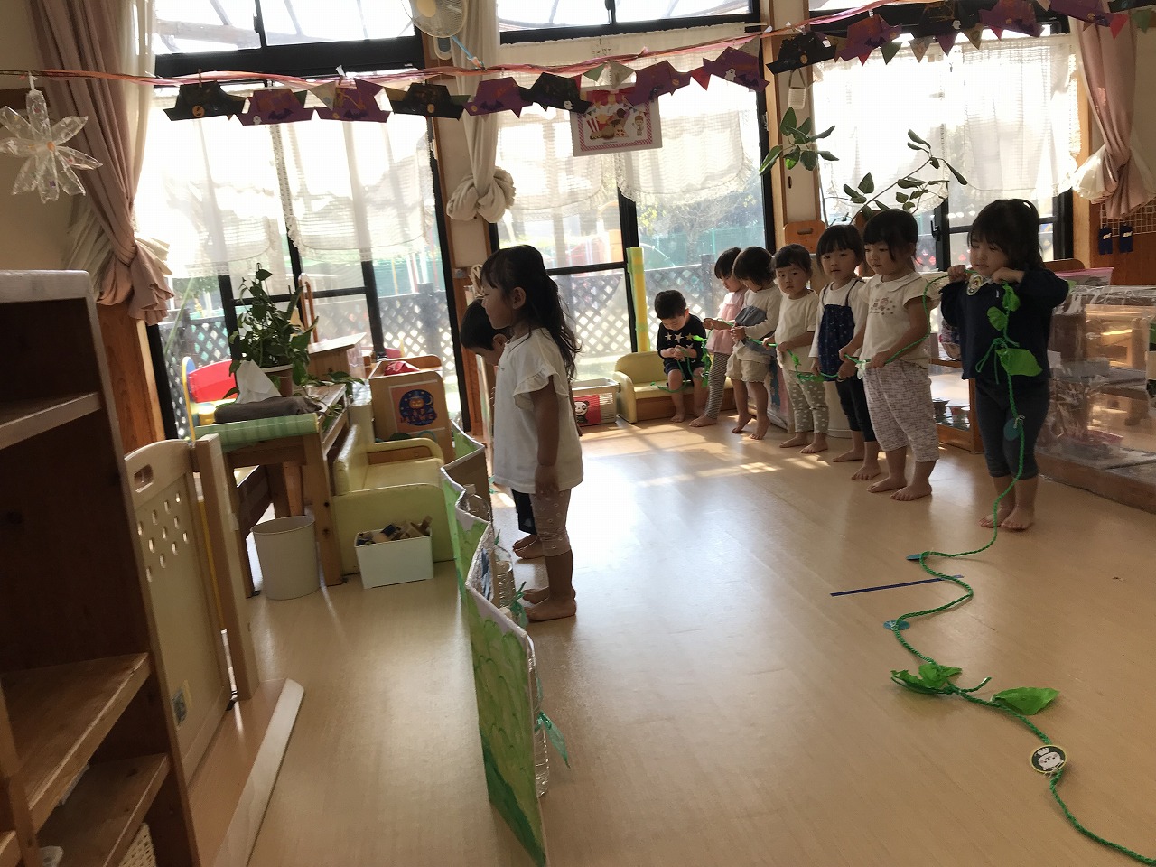 発表会の練習を頑張っているたんぽぽ組(2歳児)の子ども達。今年は言葉遊びと踊りをします。言葉遊びでは【おおきなかぶ】をします。練習を何度かしていくうちに、「うんとこしょ!どっこいしょ!」と大きな声で言えるようになってきました。保育士等との掛け合いの場面も、しっかりとセリフを覚えてきて、楽しそうに取り組んでいます。当日を楽しみにしていて下さい♪練習の前は、戸外でたくさん遊びました。友だちと一緒に三輪車に乗って遊んだり、砂場で遊んだりと、それぞれに好きな遊びを楽しんでいましたよ。たんぽぽ組(2歳児)さんが以前から育てている二十日大根もぐんぐんと大きくなり、今日初めて収穫をしました。「ちいさーい!あかいね~!」と子ども達の感想も聞かれました。なかには、「まだちいさいカブもあるから、もっとおおきくなるようにおみずをあげるね!」と言って、水やりをせっせと頑張ってくれました。次の収穫も楽しみにしている子ども達です。今日のお汁に二十日大根が入っていて、「あった!!」と嬉しそうに食べていました☆