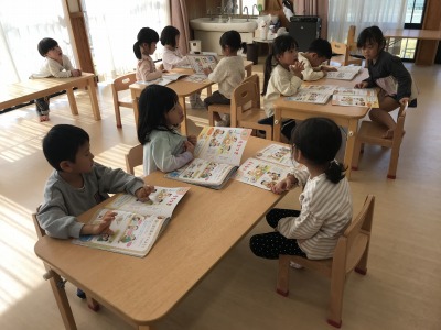 2023年11月15日 2023.11.15 絵本の時間~さくら組~ 今日は月間絵本を読んださくら組。 色々なお仕事の様子が載っているのを見て「こんなお仕事があるんだね」と感心していました。 また食べ物クイズでは「おばあちゃんちにある」「食べたことあるよ」と絵本から想像が膨らんでいました。 ◎今日の献立◎ ★お昼ごはん★ ちゃんぽん ひじきジャポネサラダ ぎょうざ いりこ マンゴーゼリー ★おやつ★ クロレラ ロッククッキー Follow me! FacebookXBlueskyHatenaPocketCopy