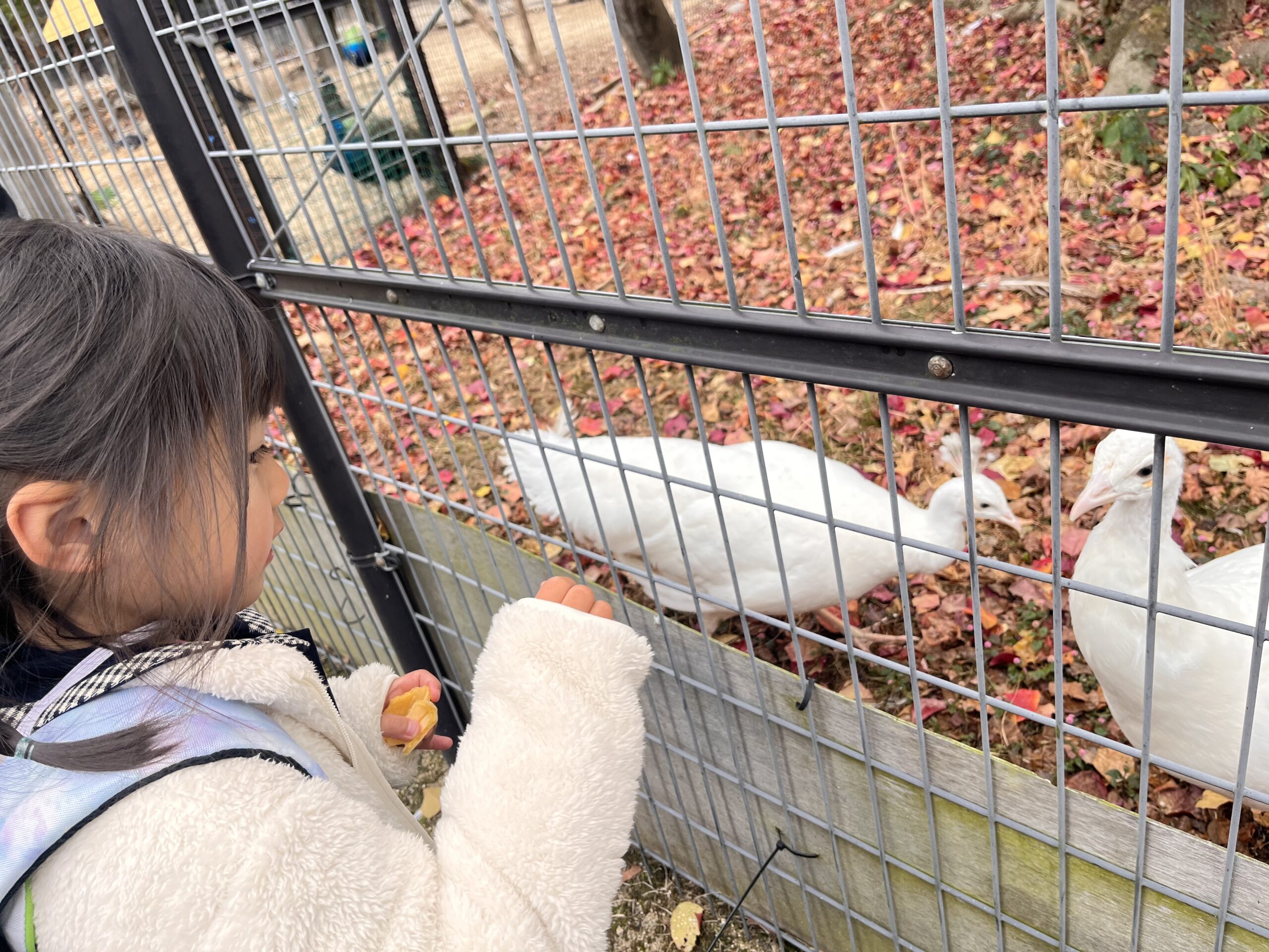 その後、少し時間があったので、お隣の鳥類センターにも遊びに行くことができました。沢山の種類の鳥や動物がいて、エサやり体験を楽しみました!お家の人と一緒に楽しい思い出ができました♪