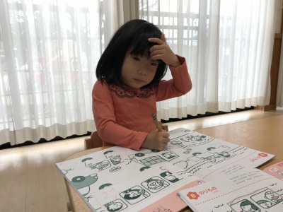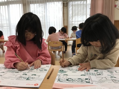 終わった後は色塗りです。友達と「どの色にする」と話しながら行っていました。