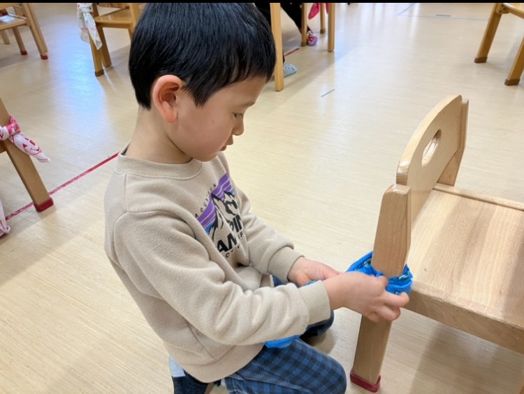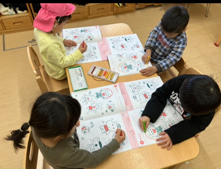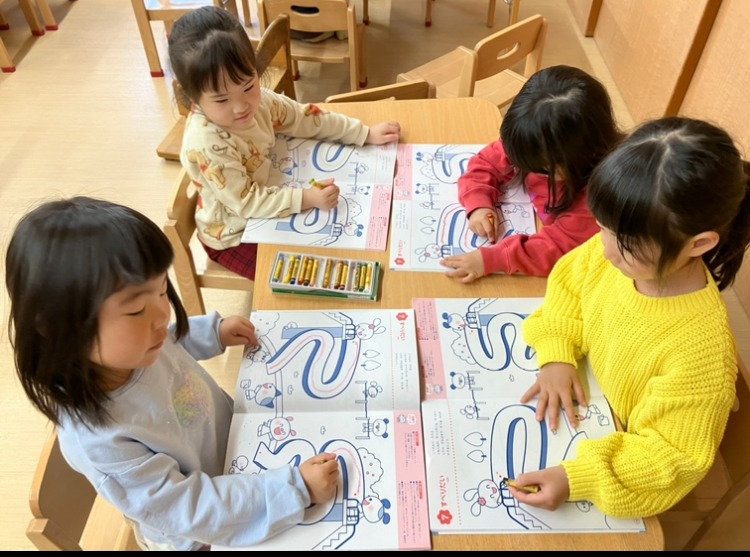 2024.01.9 お弁当の包みスタート☆線のワーク ~以上児・うめ組~