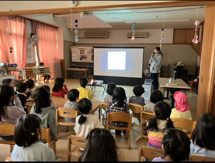 今日から以上児クラスは、お弁当包みのスタートです。まずは、4・5歳児(さくら・もも組)から始まりました。3歳児(うめ組)は、わくわくランドにハンカチ包みコーナーを設置し、練習を開始します。うめ組も、お弁当包みが始められるのを楽しみにしているようです。午前中に、以上児全体で集まり、スクリーンの映像で、お弁当包みの流れを見て覚えてました。昼食の時間になると、その手順を覚えていて、お弁当箱からハンカチを外し、細長くたたんで自分の椅子に結び付け、食後、張り切ってお弁当包みをする姿が見られました。初日だったので、まだまだ難しそうな子どももいましたが、保育士等と一緒に包んでいくうちに、できるようになり「上手にできたね!」と誉めて貰うと、とってもうれしそうでした。毎日お弁当箱を包むことによって、ハンカチ包みが出来るように、みんなで頑張っていきたいと思います。