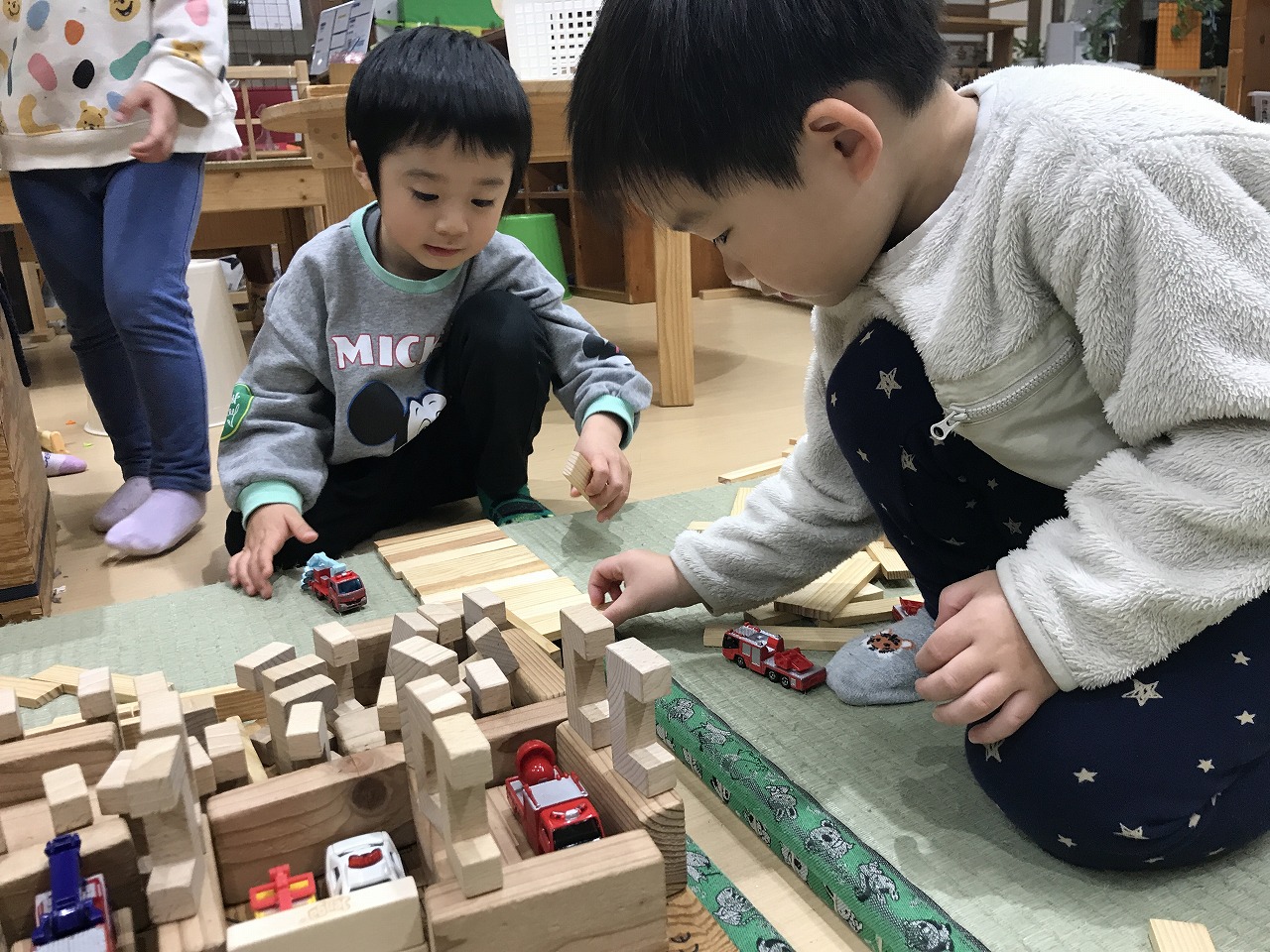 別のお部屋ではジュエリーづくり、積み木コーナーでは軍隊が訓練できる場所をイメージして作っていました。