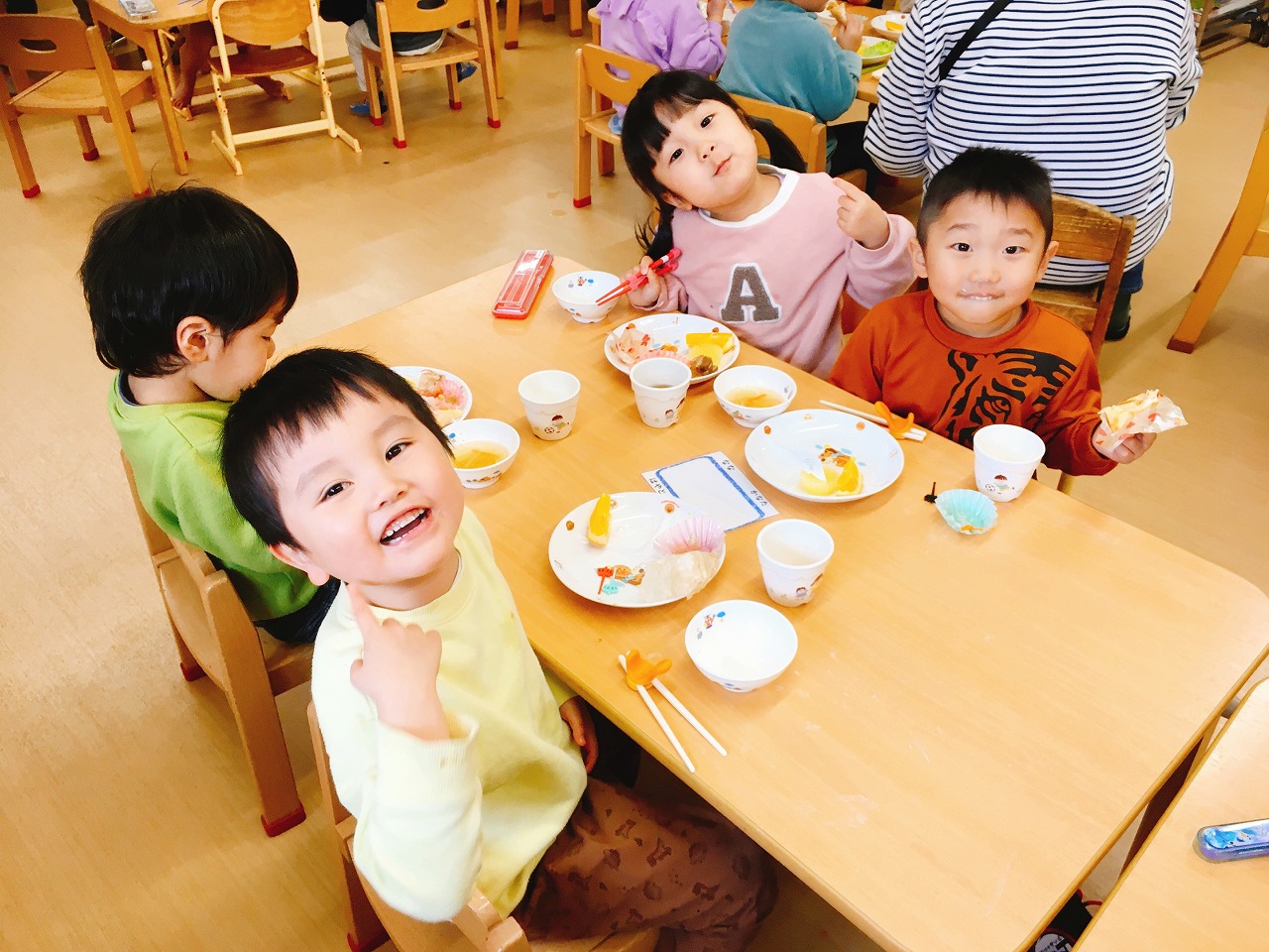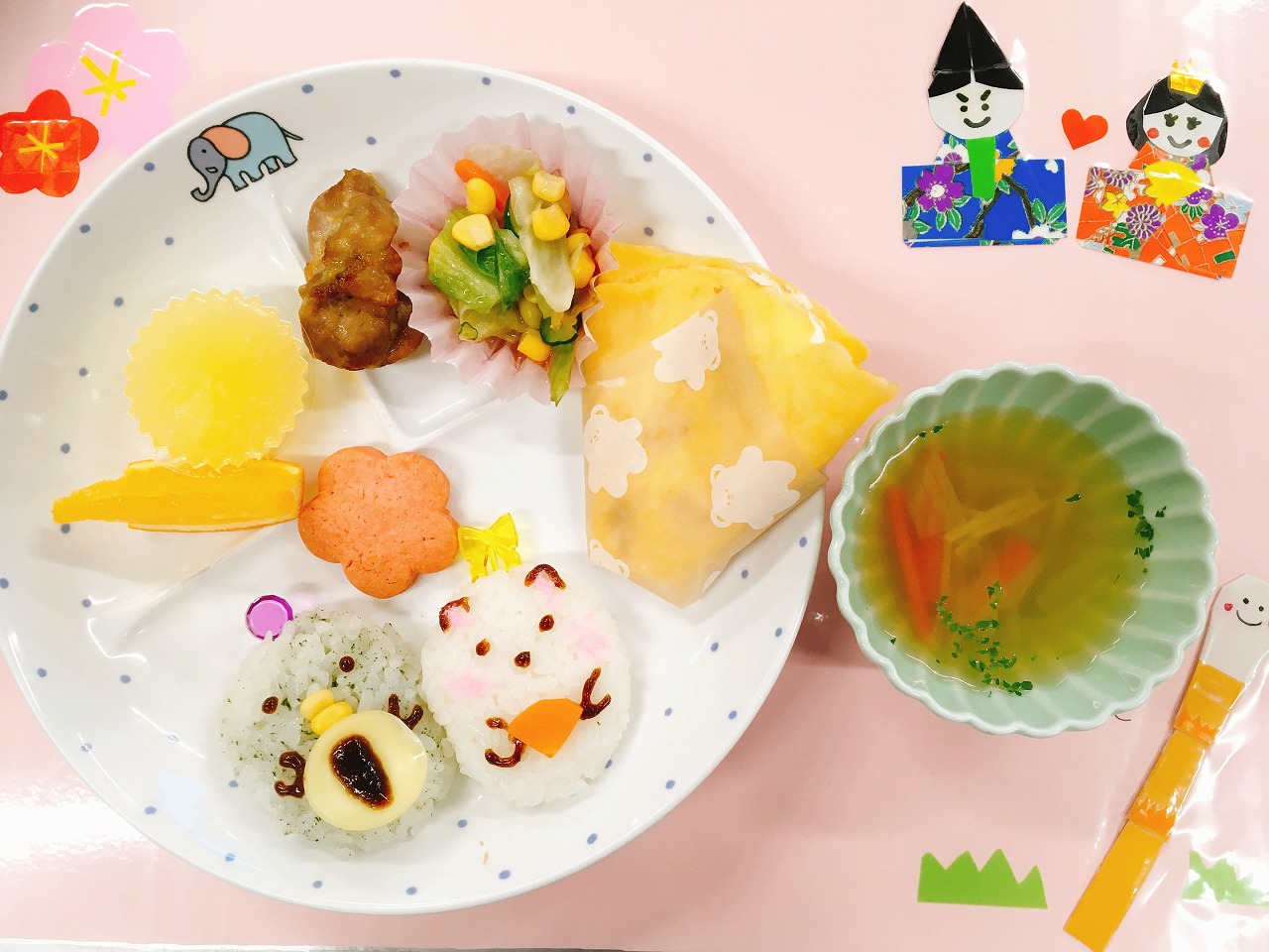 2024年3月1日 2024.03.01 お誕生日会~まんまるーむ~ ★お昼ごはん★ おひな様・おだいり様ごはん(しろくま・ぺんぎん) クレープ 桃の花クッキー 鶏肉のしょうゆマヨ焼き コーンサラダ オニオンスープ 果物(オレンジ) みかんカルピスゼリー ★おやつ★ プリン 今年度最後のお誕生日会です。 みんな一番に飛びついたのはクレープでした♡ かわいい~、おいしい~と声をかけてくれてとっても喜んで食べてくれました。 3月お誕生日のお友だち、おめでとう! Follow me! FacebookXBlueskyHatenaPocketCopy