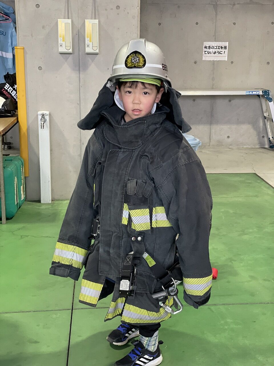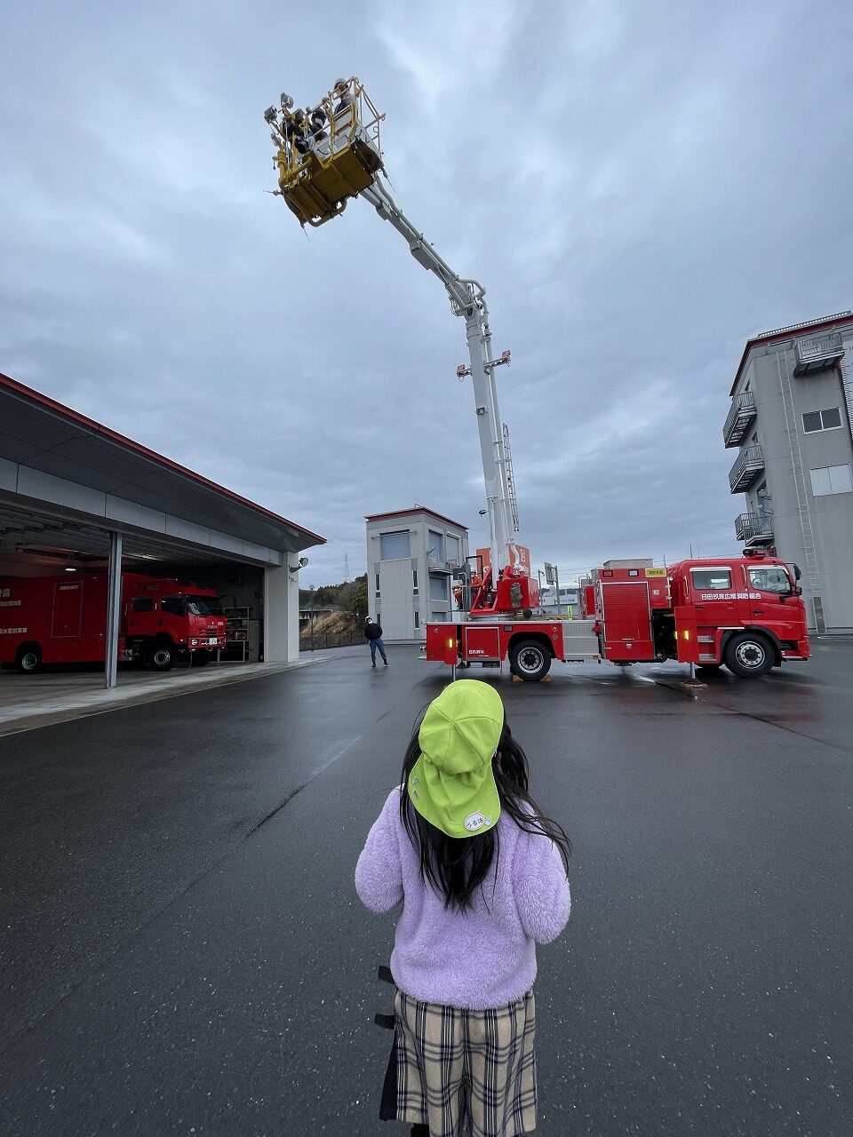 今日は日田消防署さんに見学に行かせていただきました。子ども達は、消防車やはしご車が大好き!憧れの消防士さんに会えることを楽しみにしていました♩