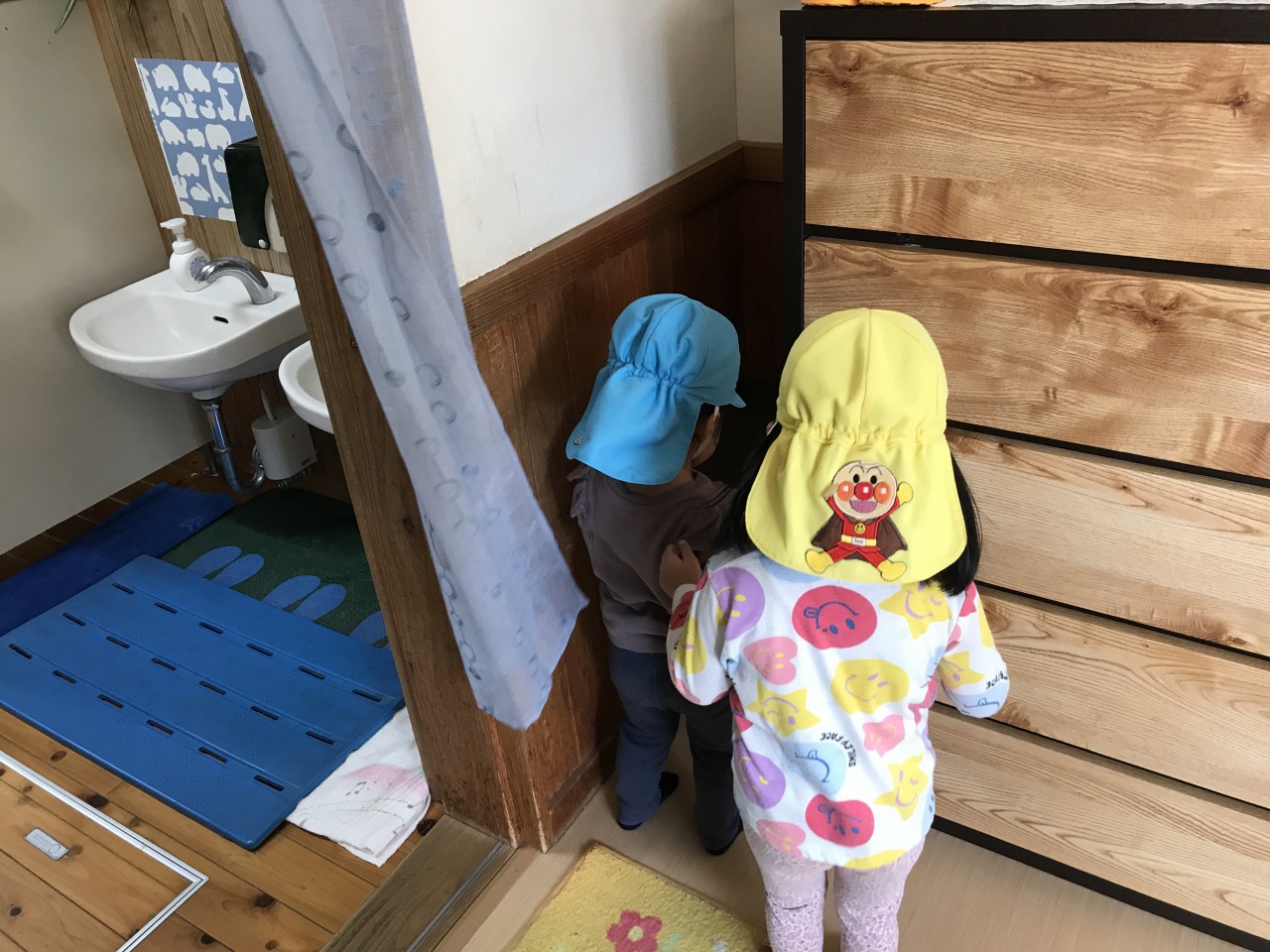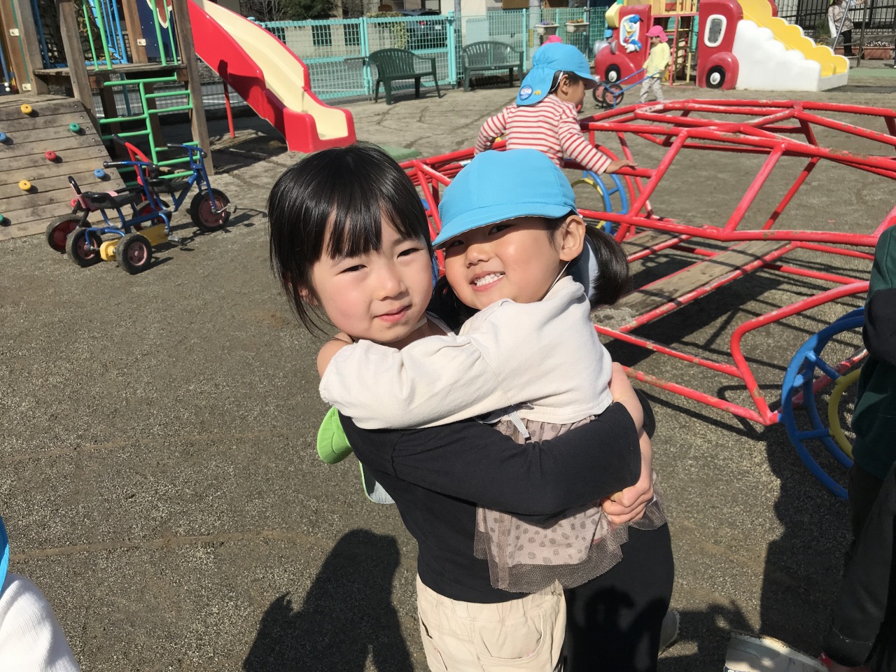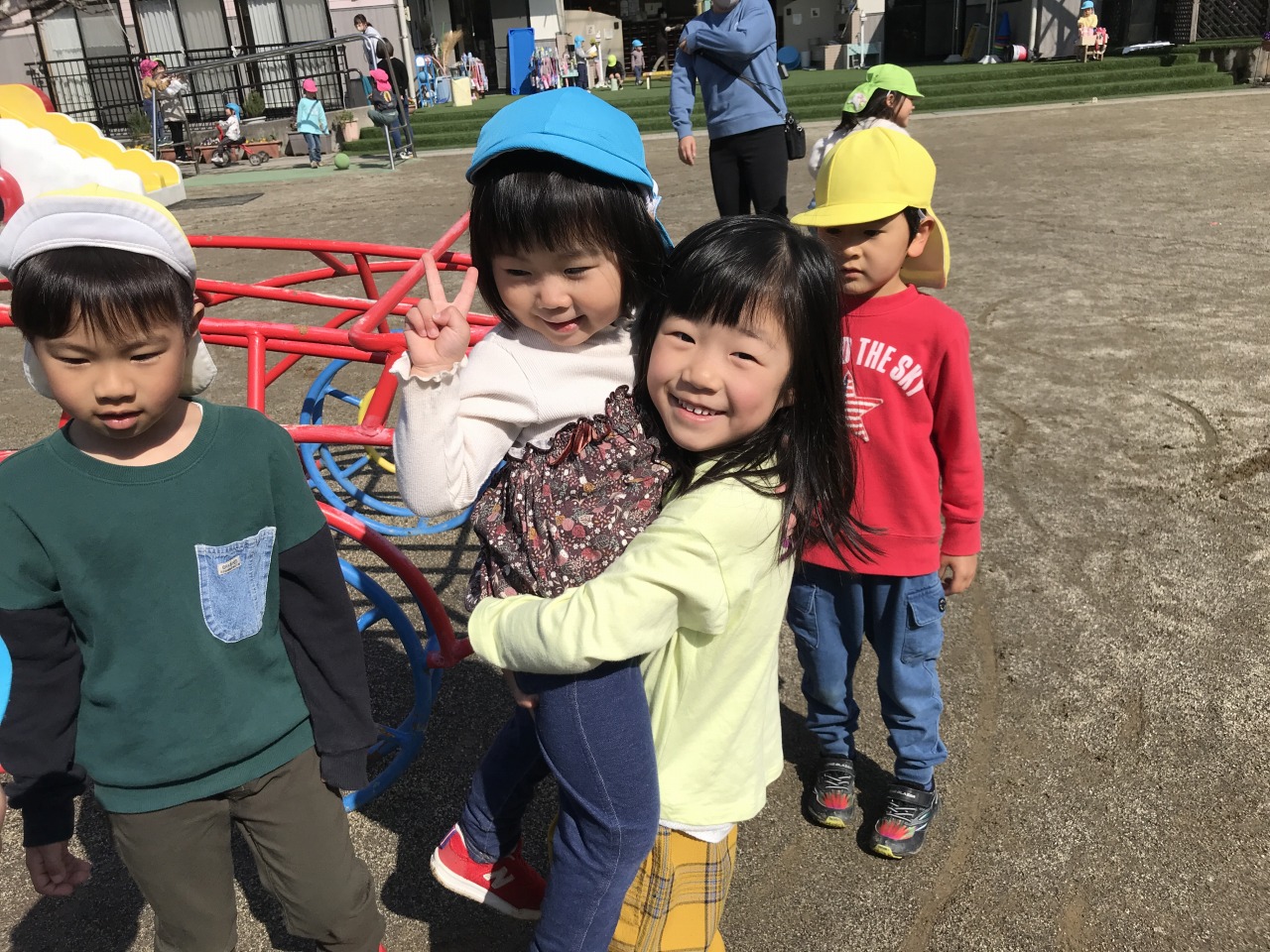 今日は少人数で以上児さん(3.4.5歳児)に移行に行きました。園庭で一緒に触れ合って遊んだり、たんぽぽ組(2歳児)が「トイレにいきたい」と言うとすぐにトイレに連れて行ってくれたりと、優しくお世話をしてくれました。食事も広いわくわくランドで一緒に食べました。バイキングの仕方を教えてくれたり、困った時は優しく声を掛けてくれるさくら組(4歳児)さんでした。たんぽぽ組(2歳児)の子も優しいお兄ちゃんお姉ちゃんにお世話をしてもらって安心して過ごしていました。来週もまた順番で移行に行きますので、たんぽぽ組(2歳児)の子ども達も楽しみのようです♪