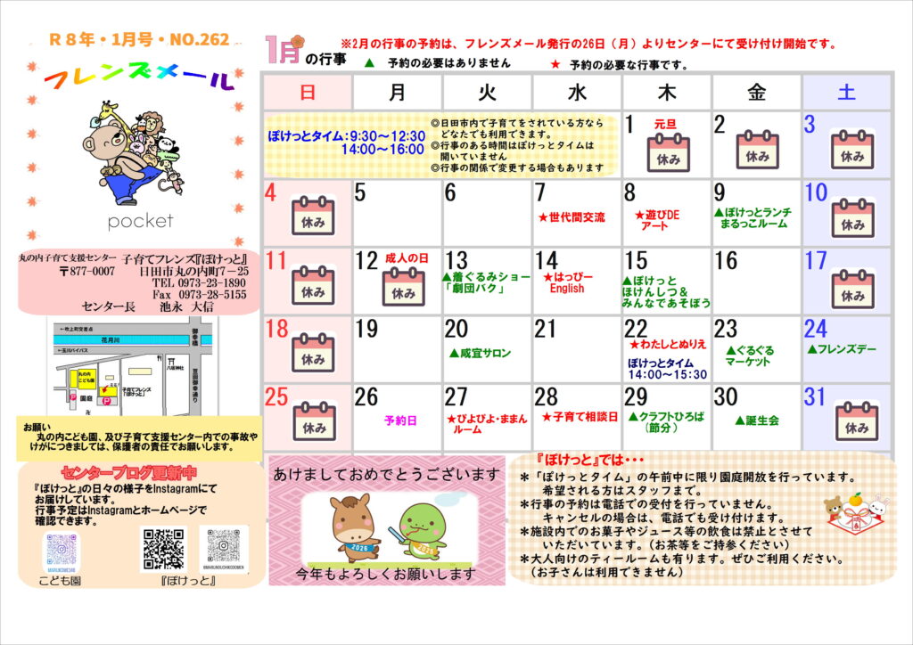 1月の行事予定 (あけましておめでとうございます)